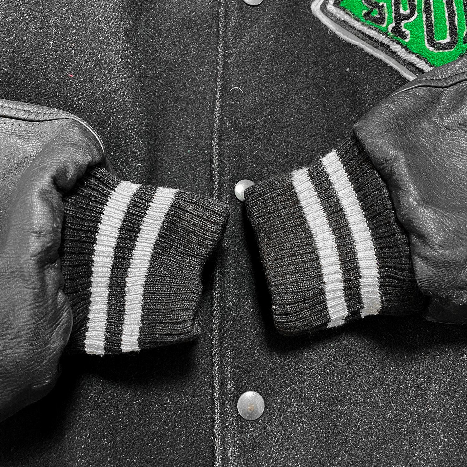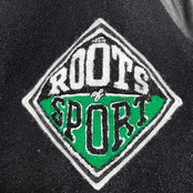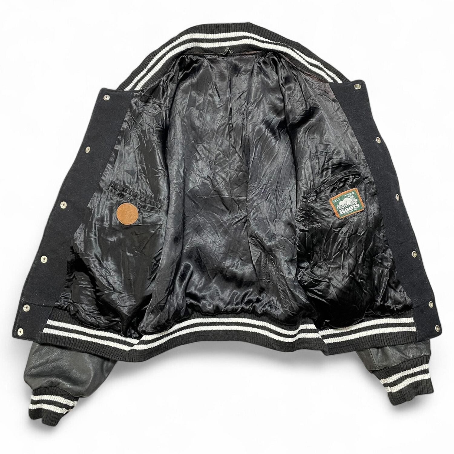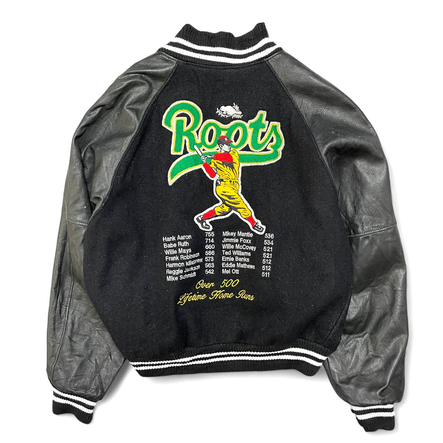 USA 古着 90S カナダ製 Roots MLB ヴィンテージ ベースボール 本塁打記録 袖革 スタジアムジャケット スタジャン メンズL相当 AK0321