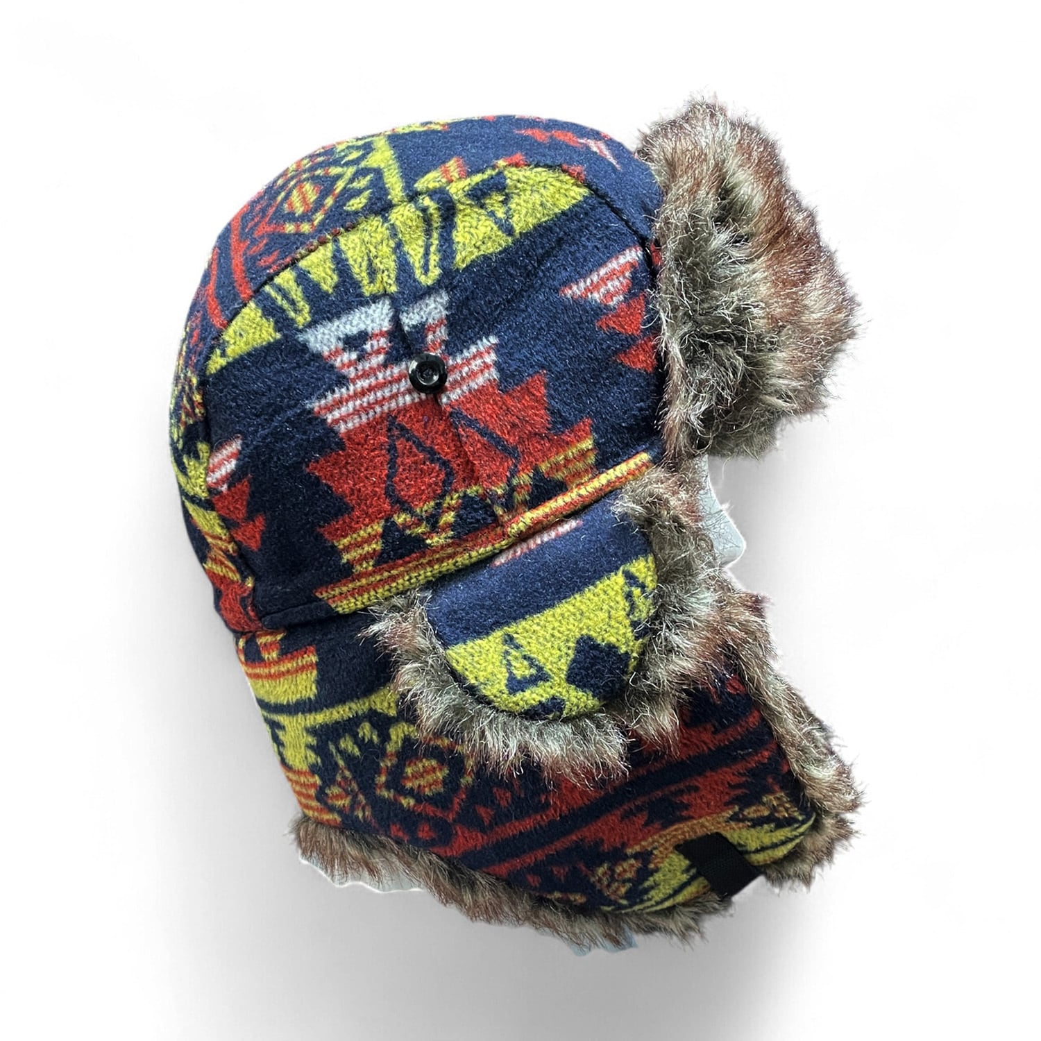 USA 古着 DAKOTA DAN フライトキャップ ボンバーキャップ ネイティブ柄 フリーサイズ 防寒帽子 ヴィンテージ MA0011