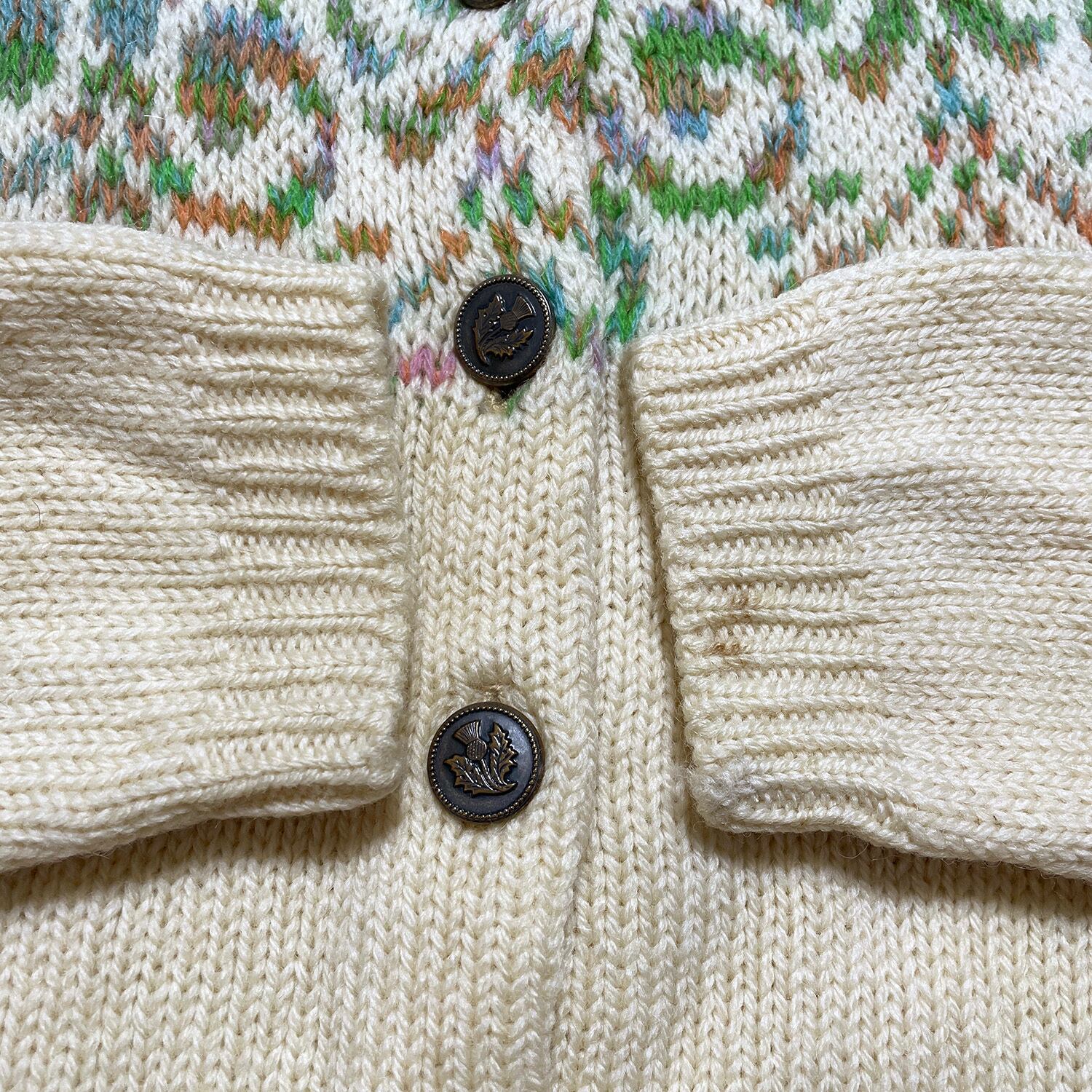 USA 古着 70S WONDAMERE ヴィンテージ ウールニット ノルディック カーディガン レディースS相当 BH0415