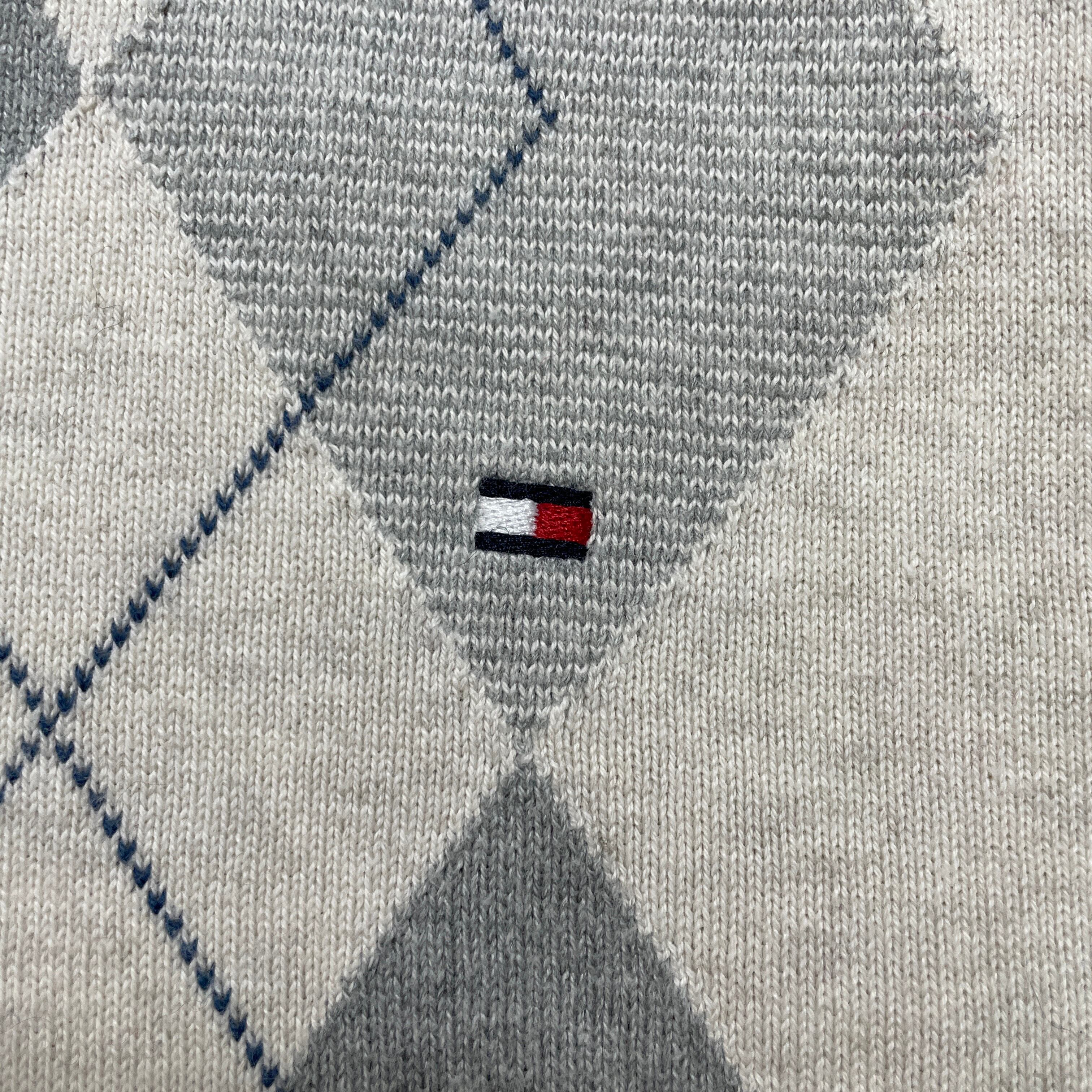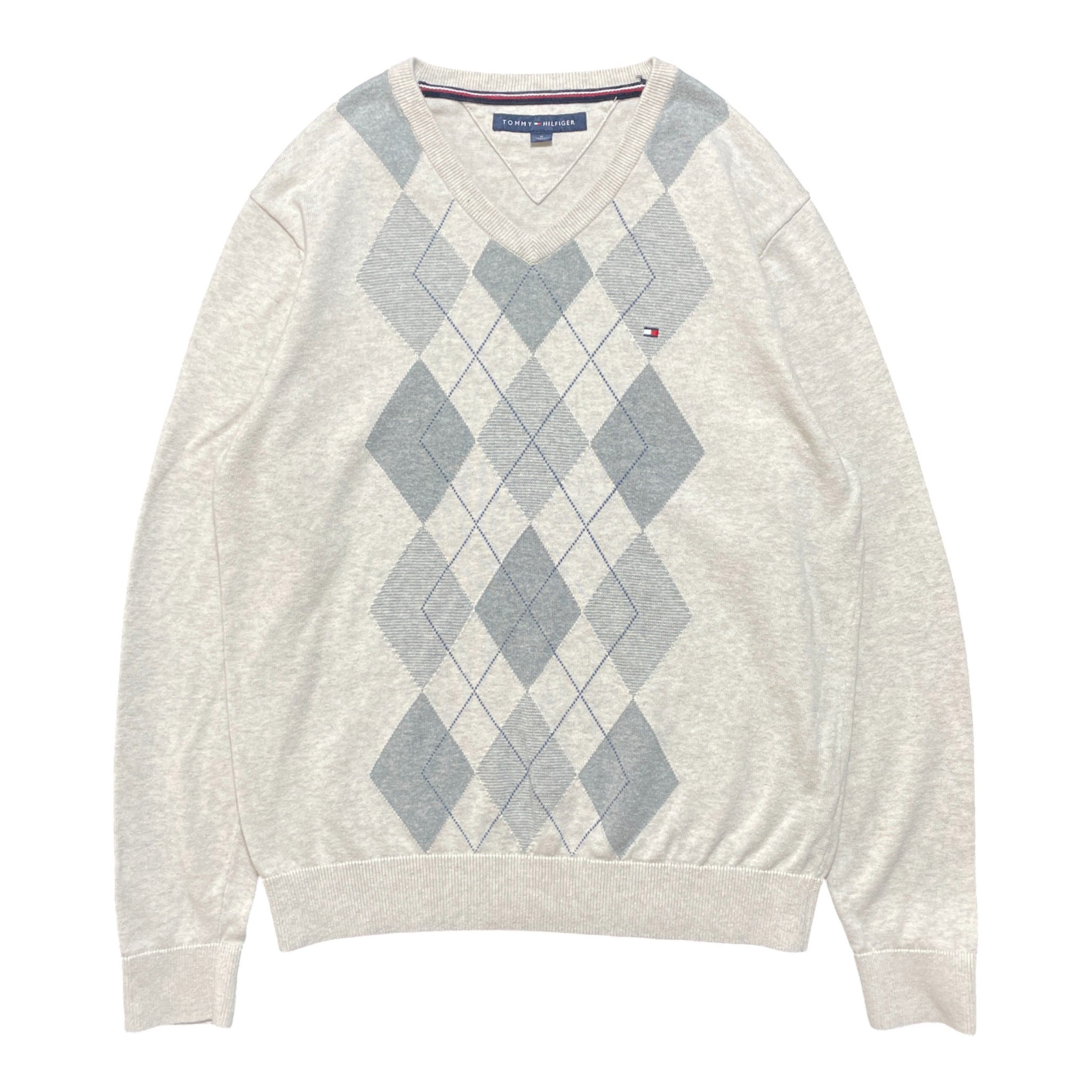 USA 古着 TOMMY HILFIGER トミーヒルフィガー コットンニット アーガイル柄 Vネック セーター メンズM BJ0968