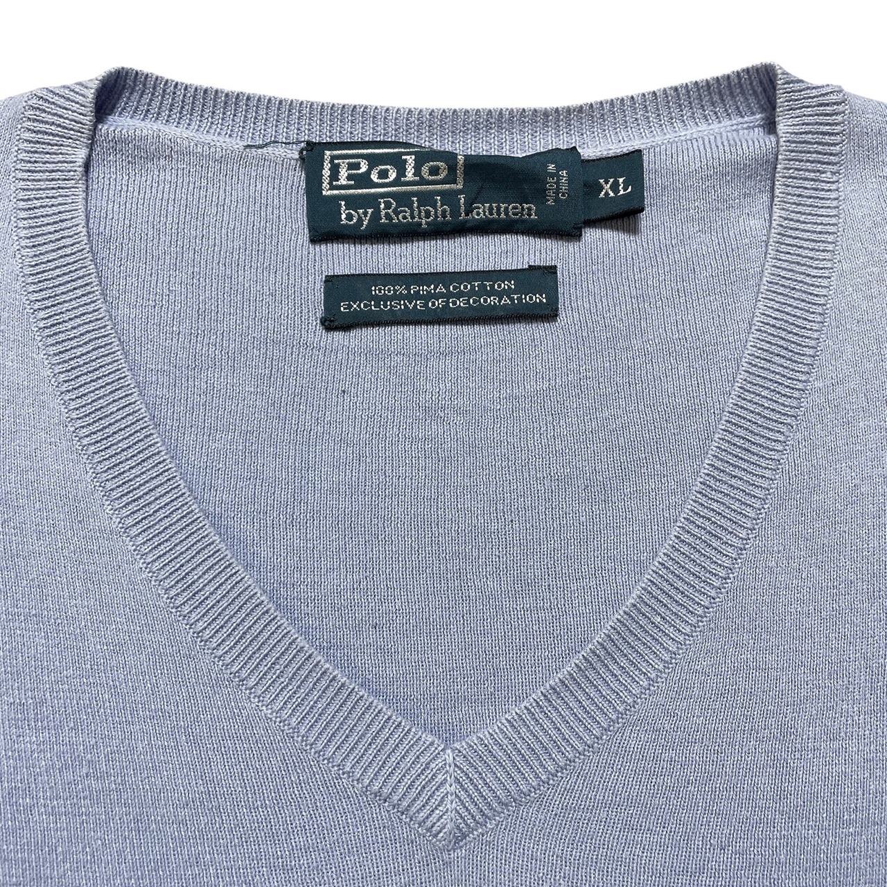 USA 古着 Polo by Ralph Lauren ポロ バイ ラルフローレン ピマコットン Vネック セーター メンズXL サックスブルー BJ0975