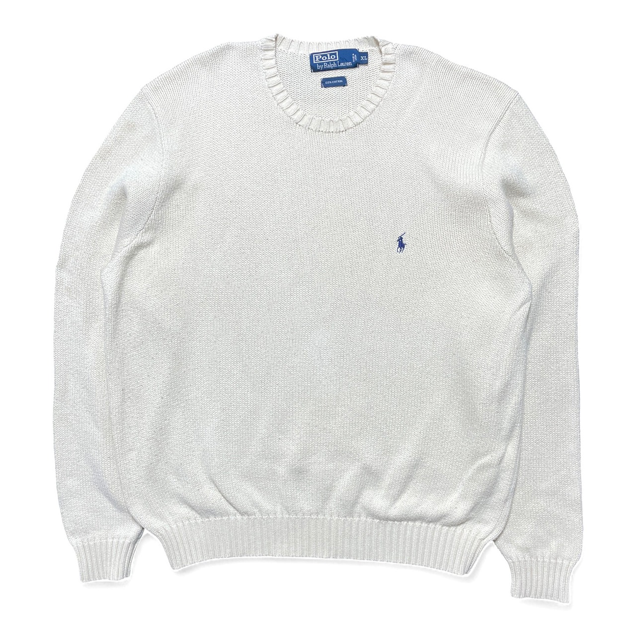 USA 古着 Polo by Ralph Lauren ポロ バイ ラルフローレン コットンニット クルーネック セーター メンズXL ホワイト BJ0977