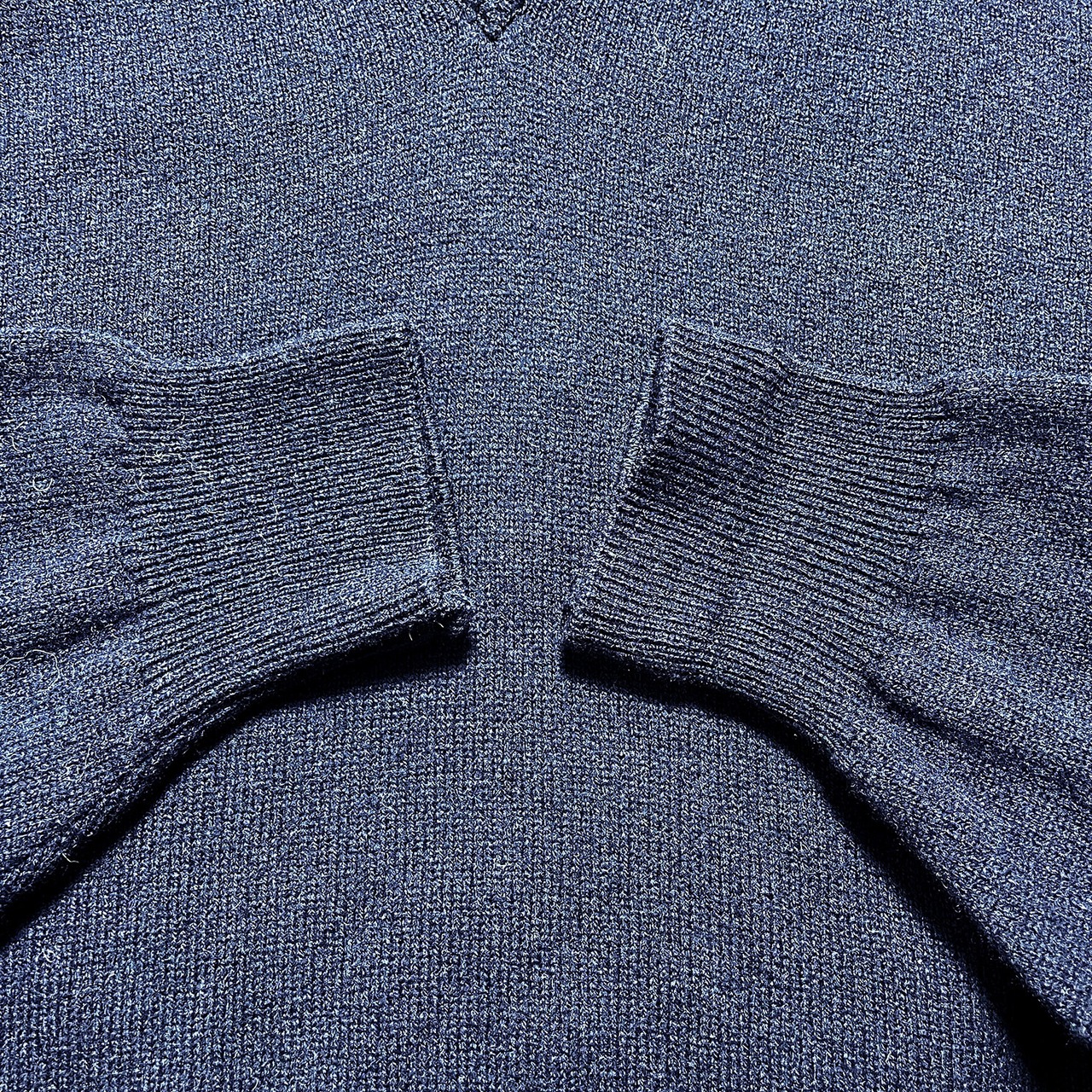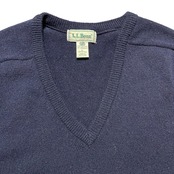USA 古着 スコットランド製 L.L.Bean ヴィンテージ エルエルビーン ラムウール Vネック セーター メンズL ネイビー 紺色 アウトドア BJ0984