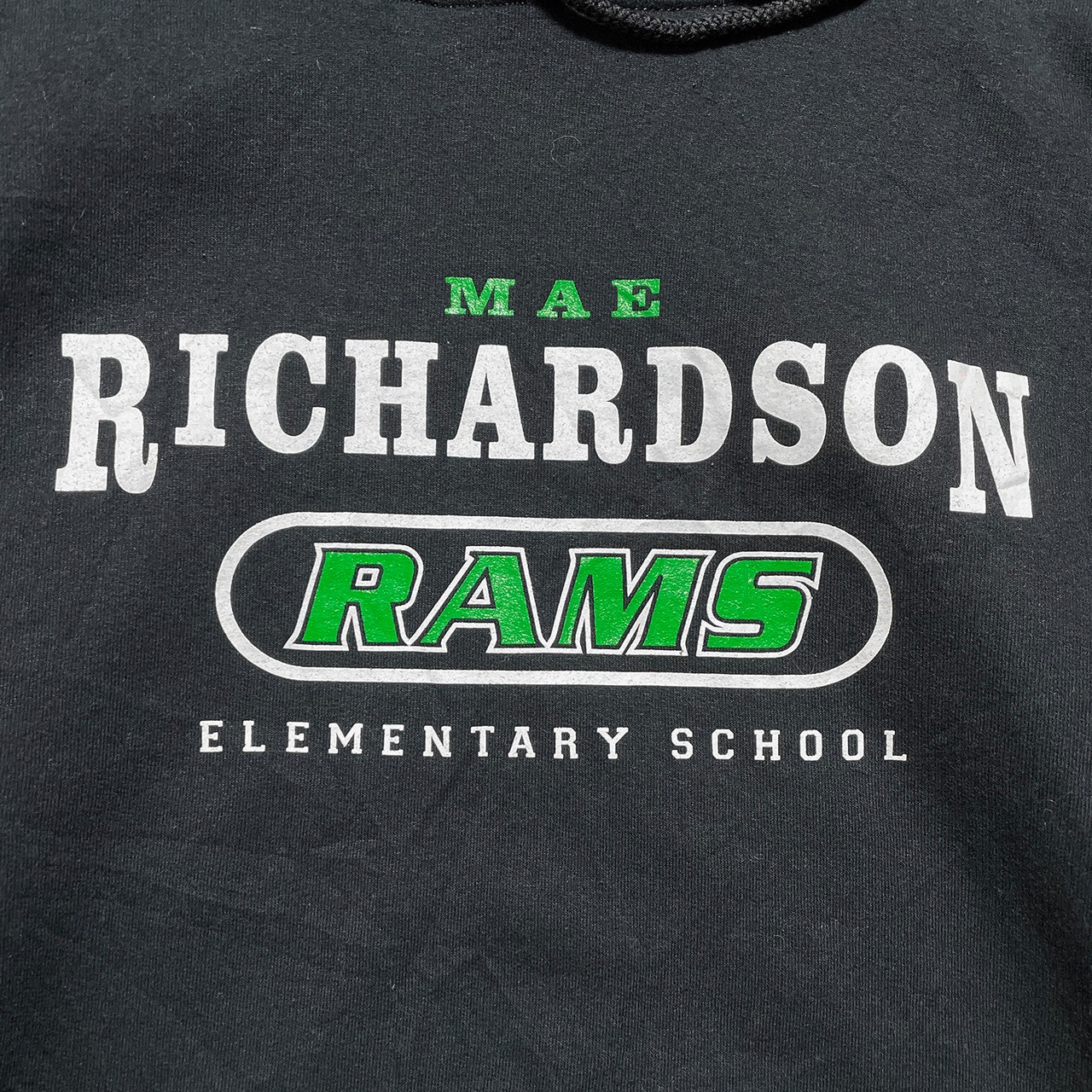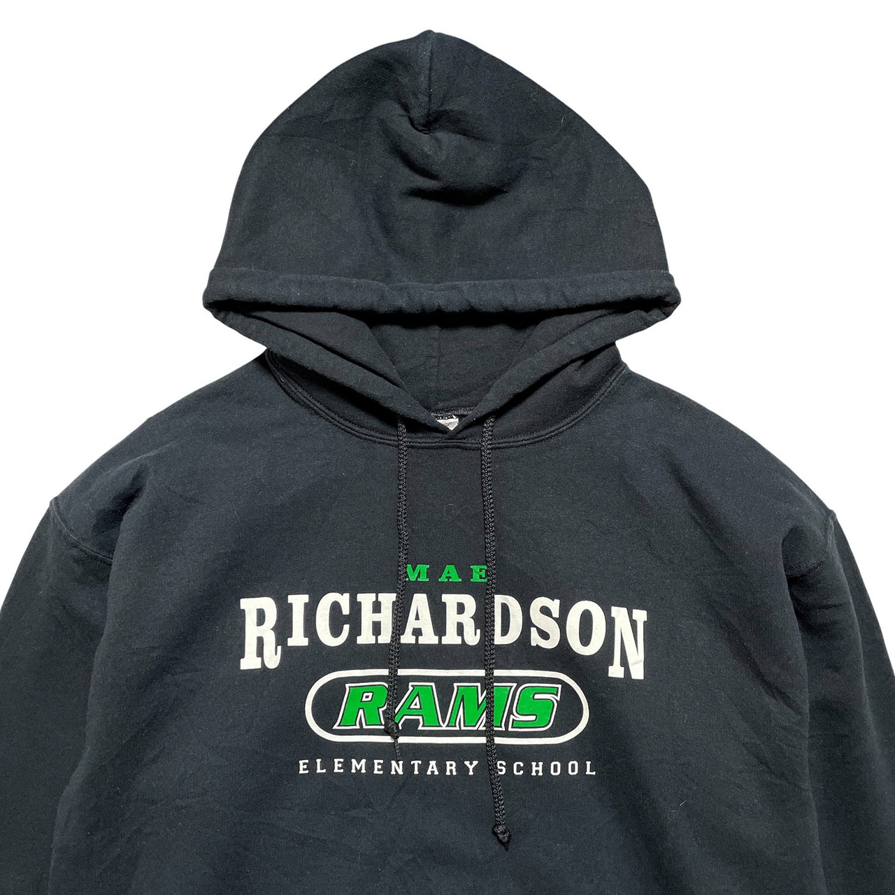 USA 古着 マエリチャードソン小学校 プルオーバー スウェット パーカー ロゴ プリント ブラック メンズM 裏起毛 BE0862