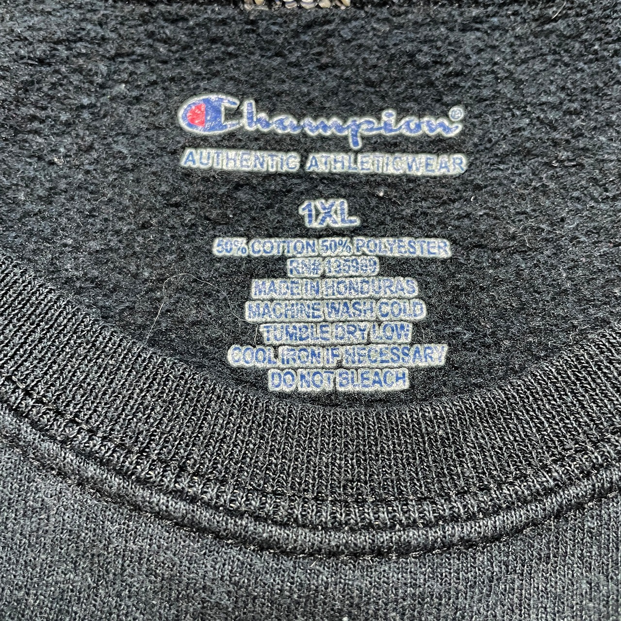 USA 古着 Champion チャンピオン クルーネック スウェット トレーナー Cマーク ロゴ プリント ブラック メンズ1XL BD2885