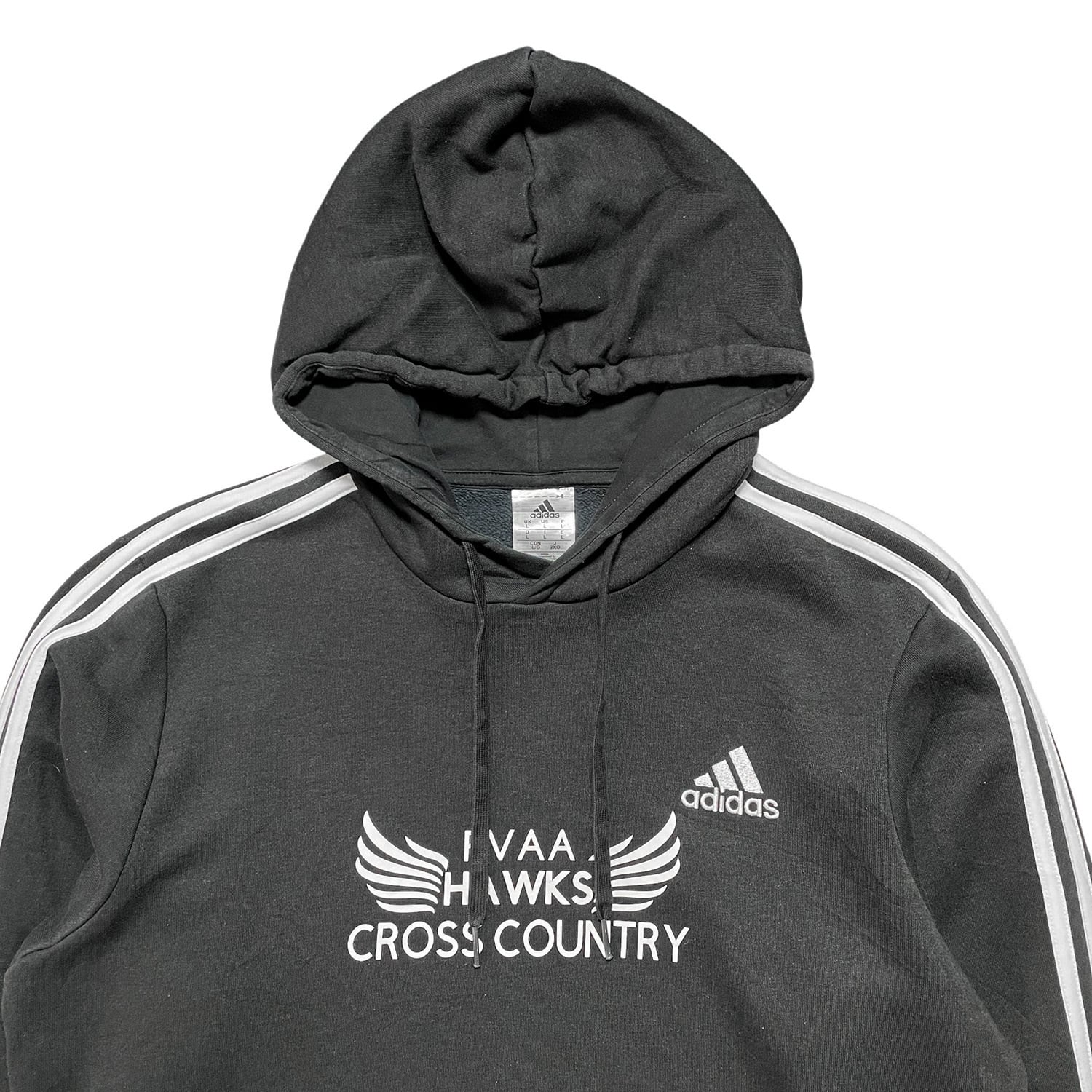 USA 古着 adidas アディダス クロスカントリー ロゴ 3本ライン スウェットパーカ トレーナー ブラック メンズL 黒色 BE0869
