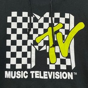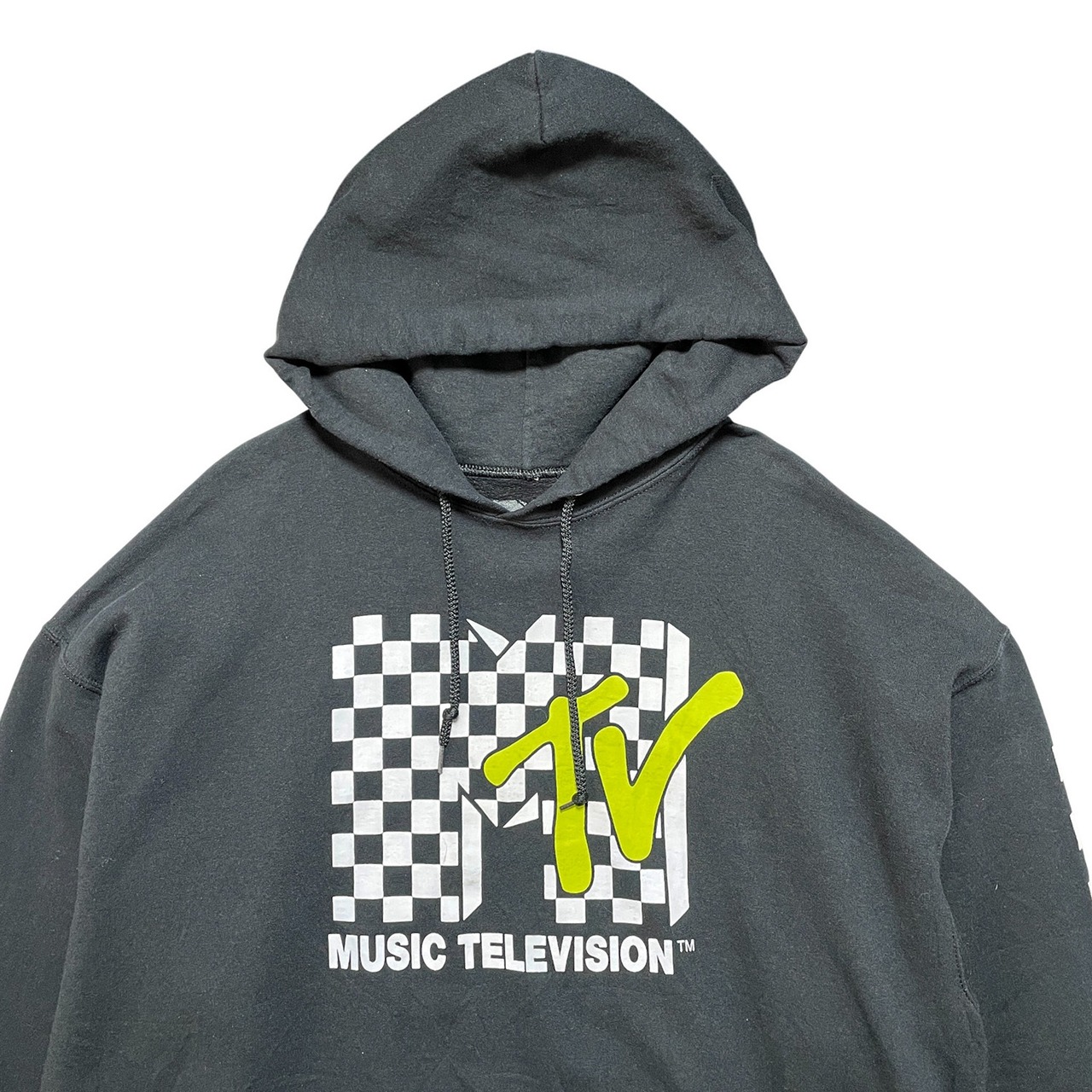 USA 古着 オフィシャル MTV ミュージックテレビジョン スウェットパーカ トレーナー メンズXL ブラック BE0870
