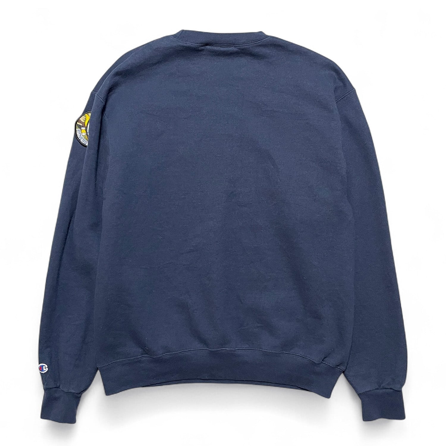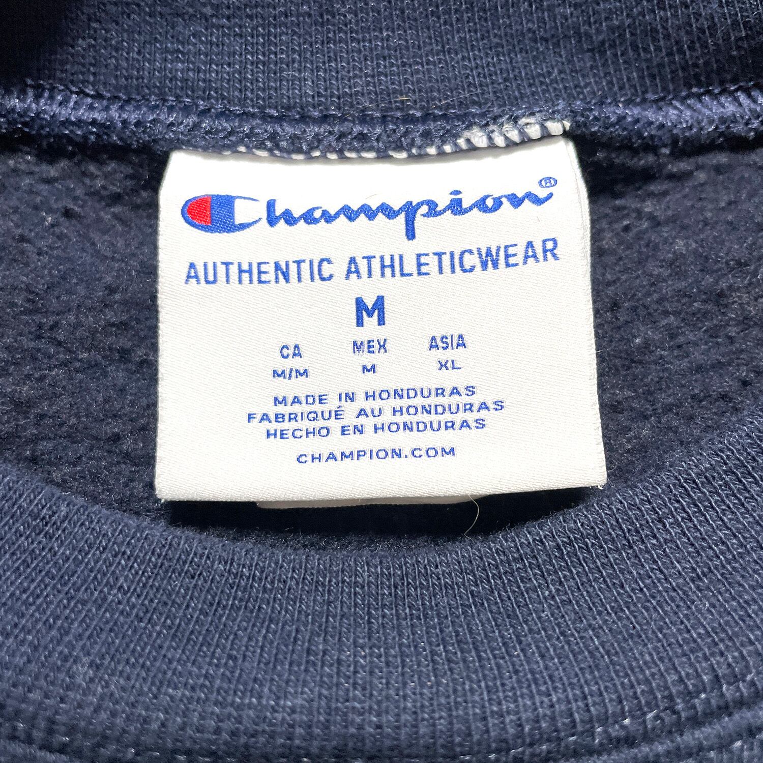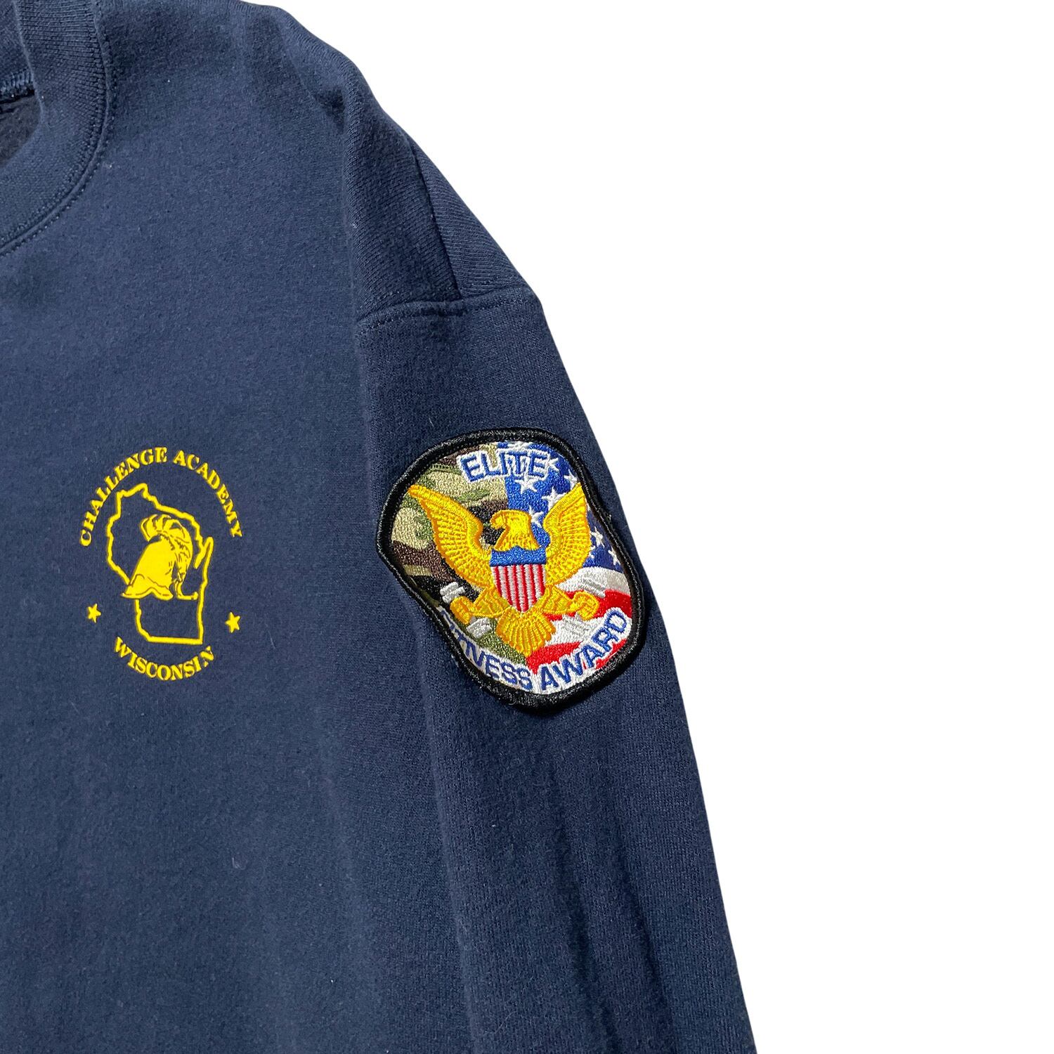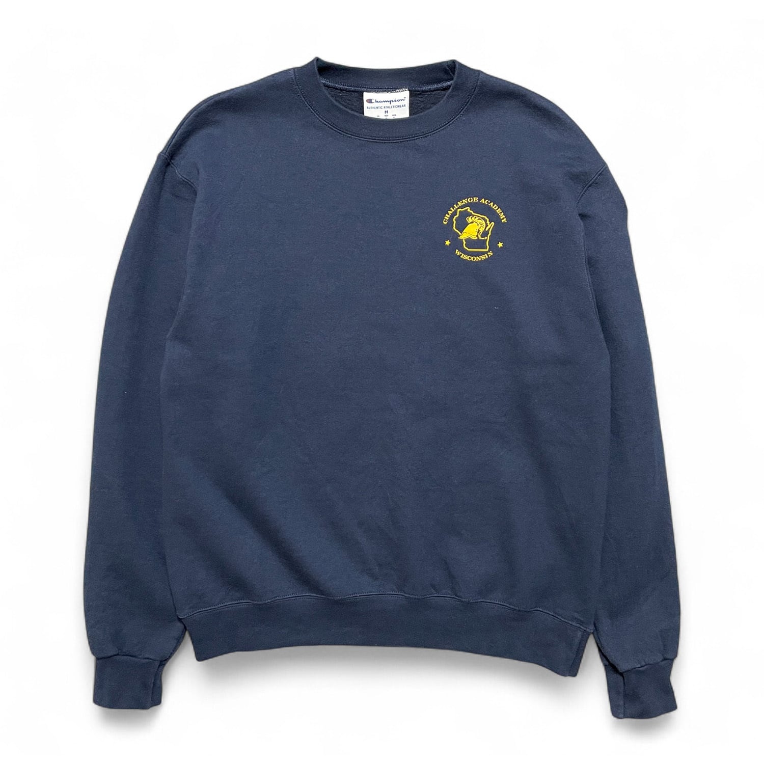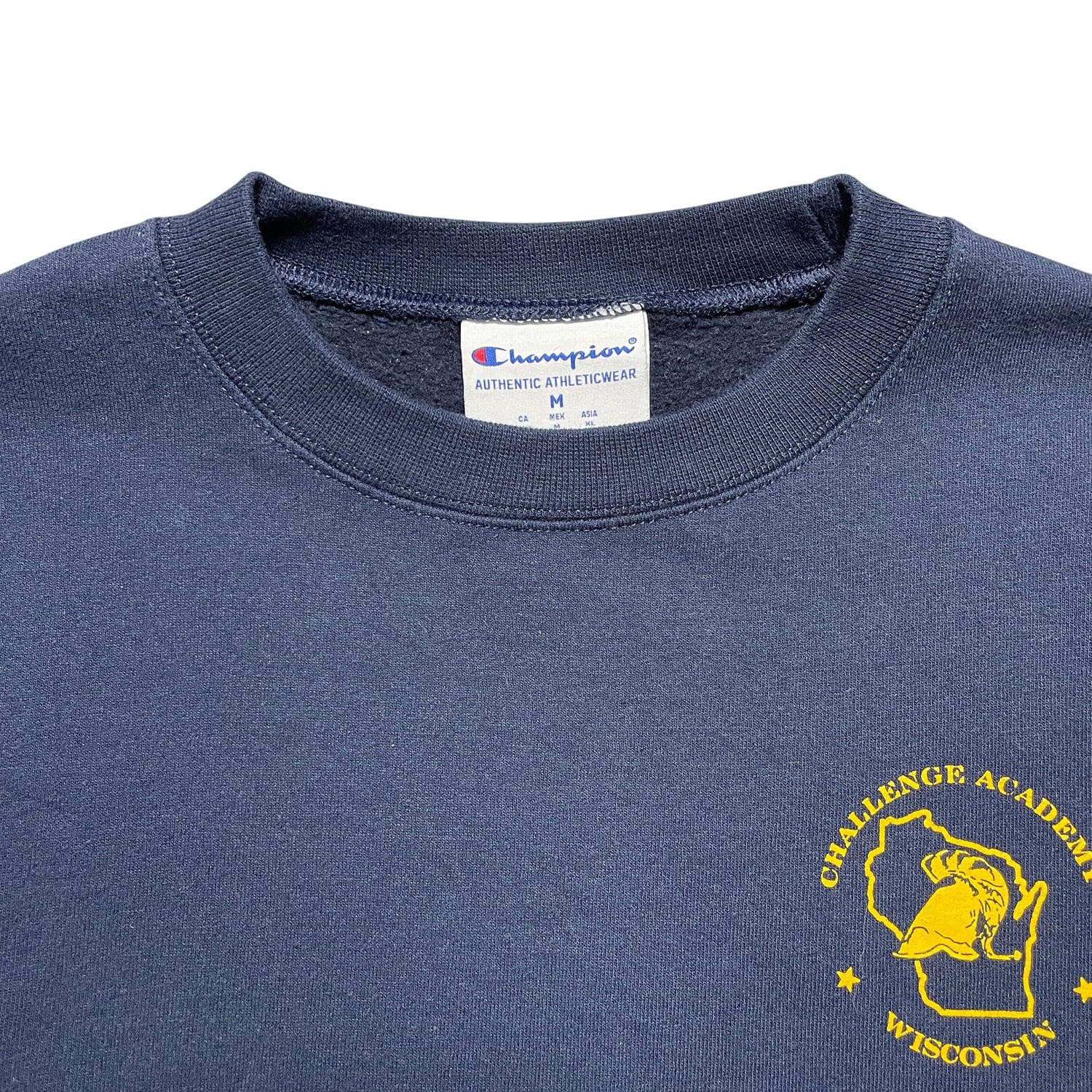USA 古着 Champion チャンピオン チャレンジアカデミー クルーネック スウェット トレーナー ロゴ プリント ネイビー メンズM BD2889