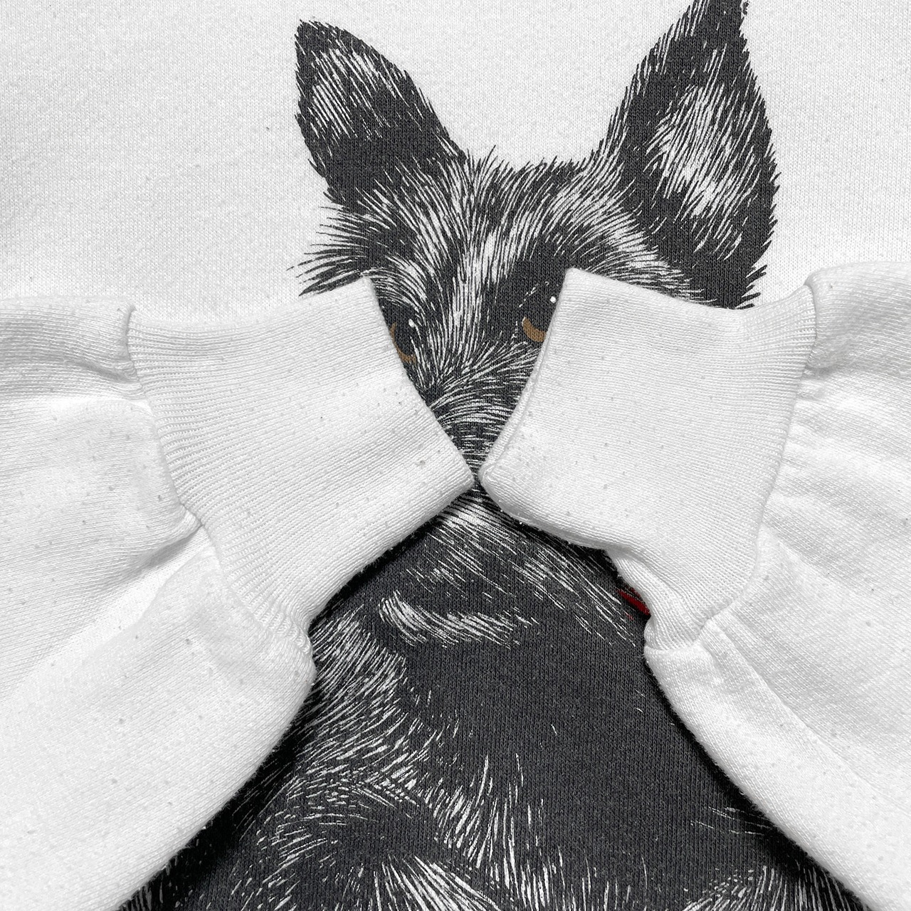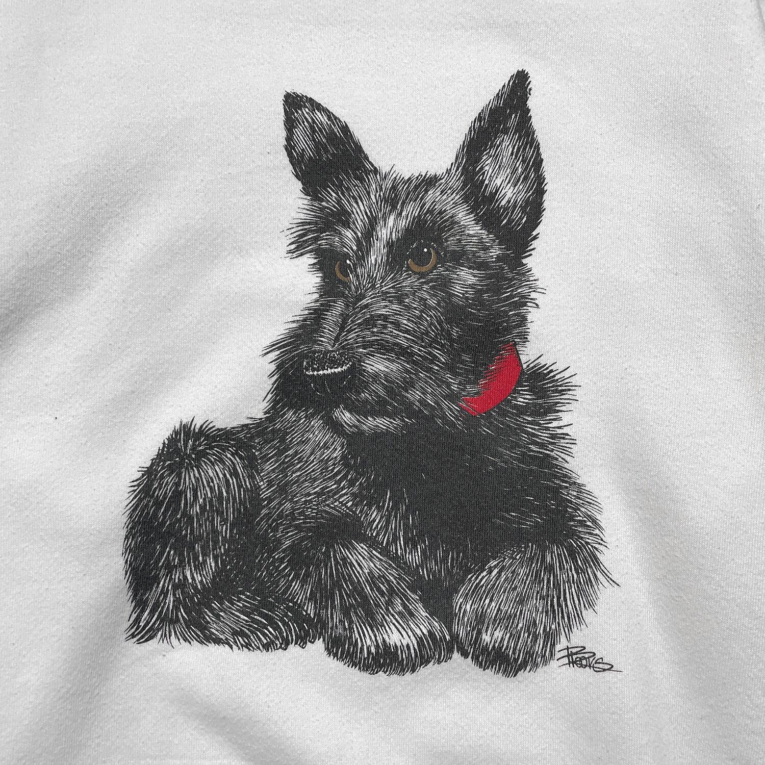 古着 USA製 90S スコティッシュテリア クルーネック スウェット トレーナー アニマルプリント ドッグ 犬 メンズM ホワイト BD2900