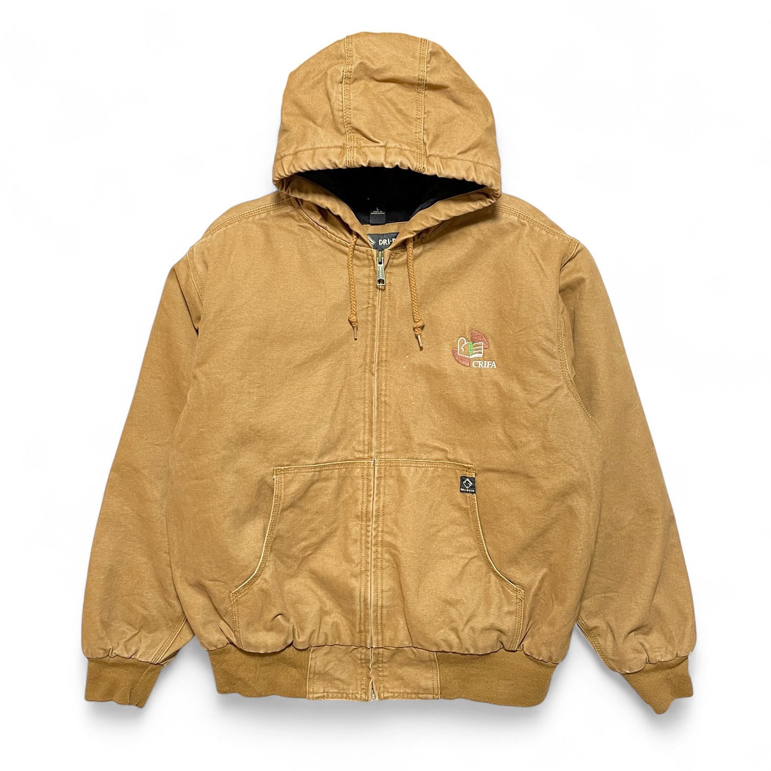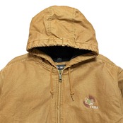 USA 古着 DRI DUCK ヴィンテージ ダックコットン アクティブジャケット ワークジャケット ダックパーカ 刺しゅう ブラウン メンズL AK0333