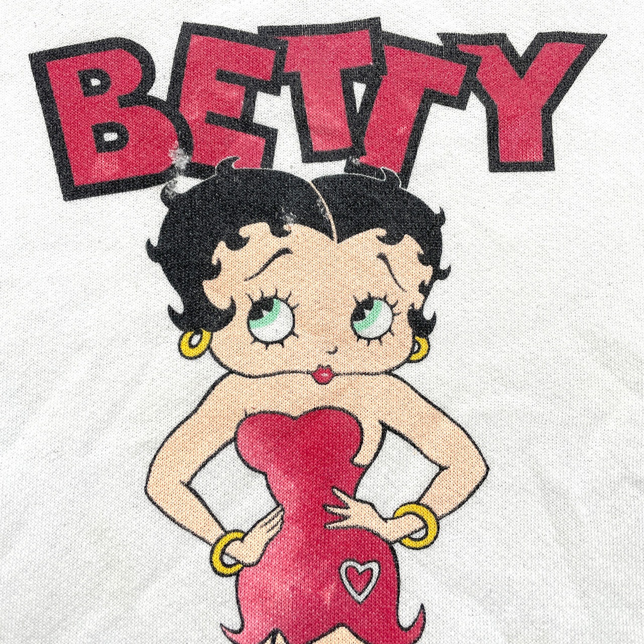 USA 古着 90S メキシコ製 ベティブープ ベティちゃん クルーネック ヴィンテージ スウェット トレーナー プリント メンズL ホワイト BD2904