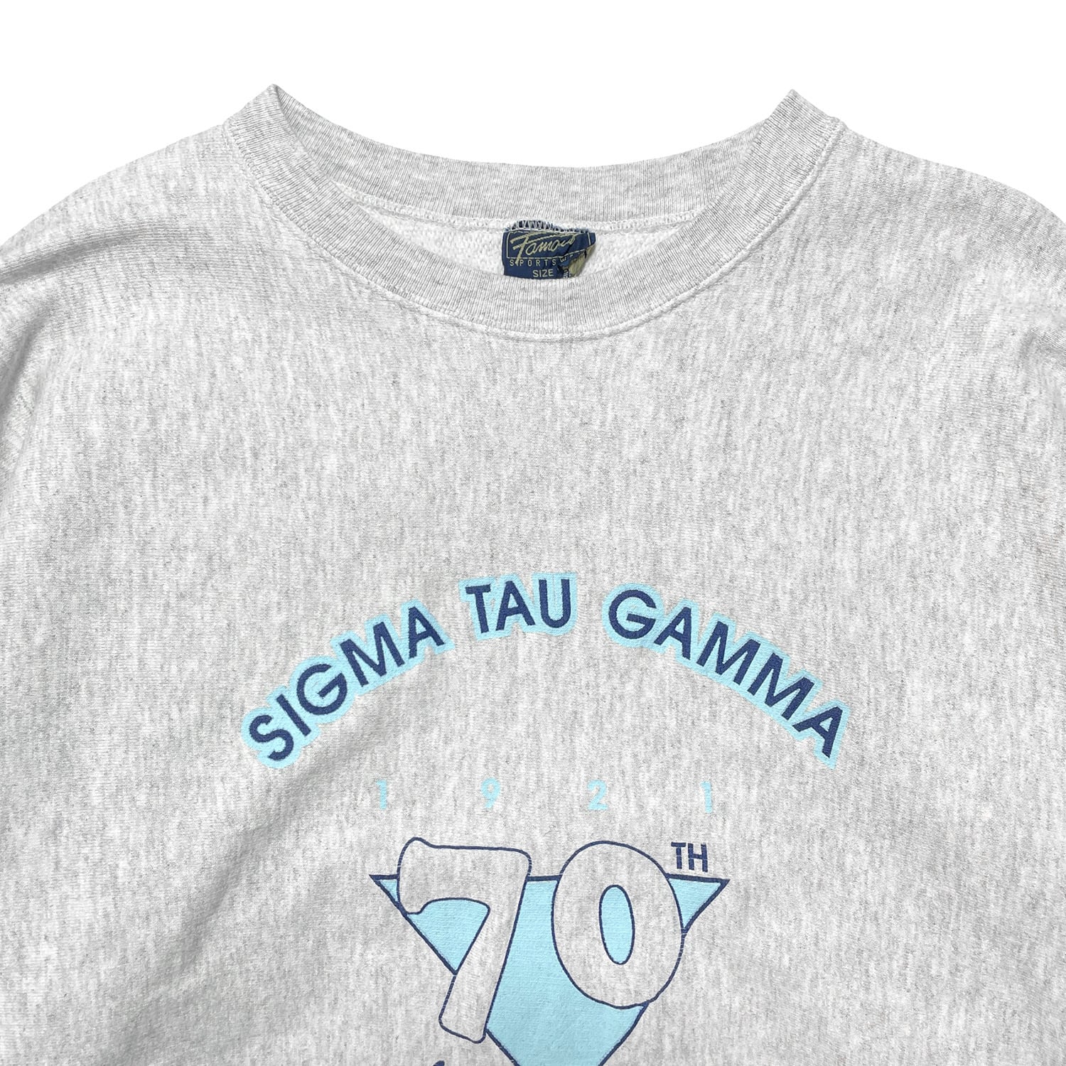 古着 USA製 90S シグマタウガンマ ギリシャ文字 リバースウィーブタイプ クルーネック スウェット トレーナー プリント メンズXL グレー BD2909