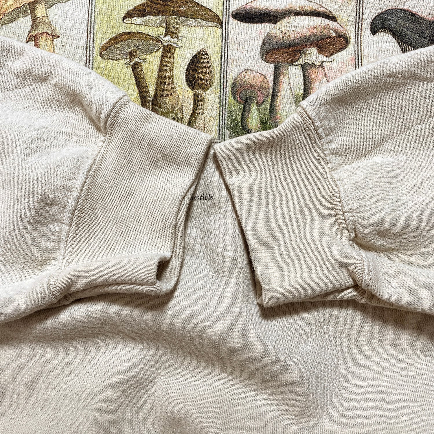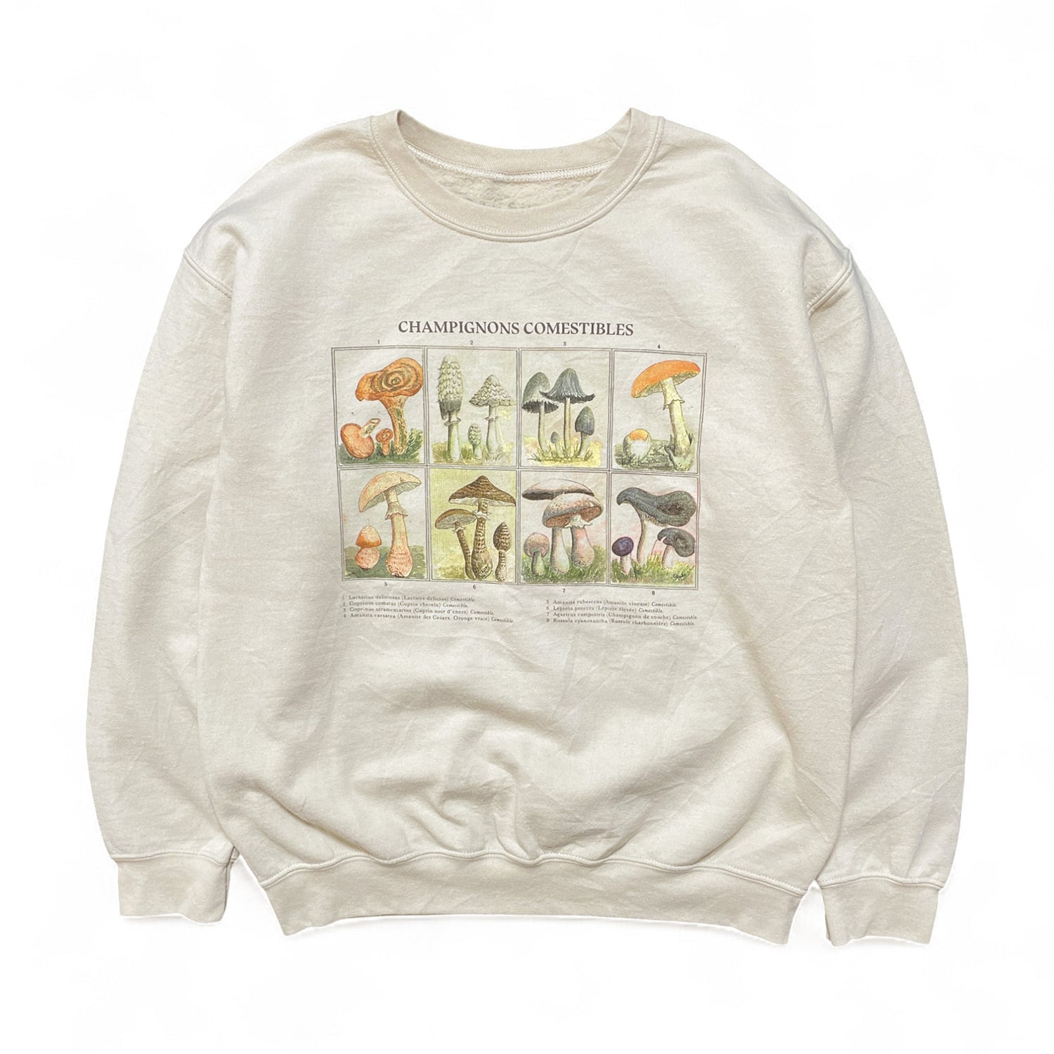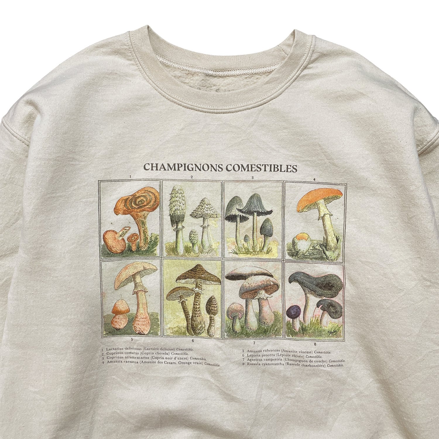 USA 古着 クルーネック 食用キノコ一覧 スウェット トレーナー マッシュルーム プリント メンズXL ベージュ BD2910