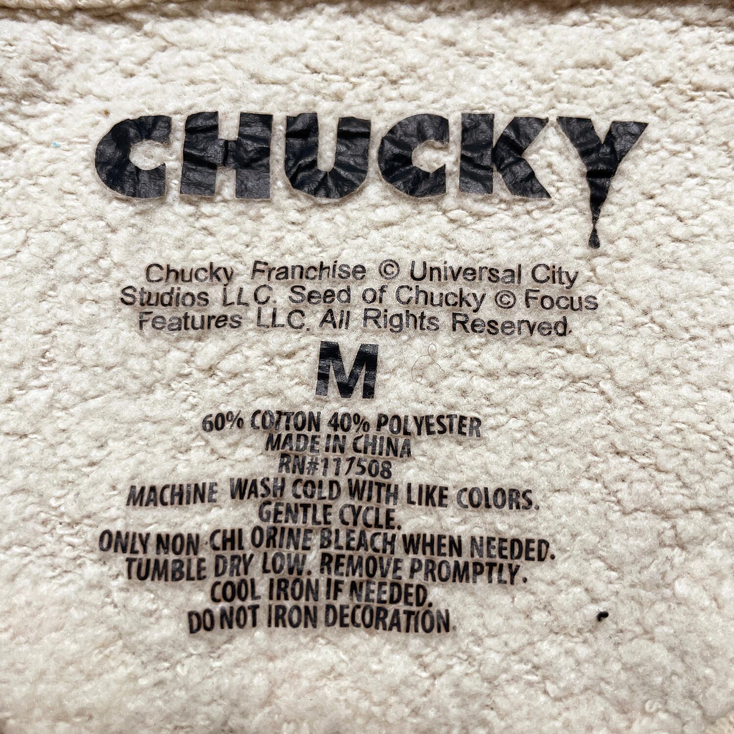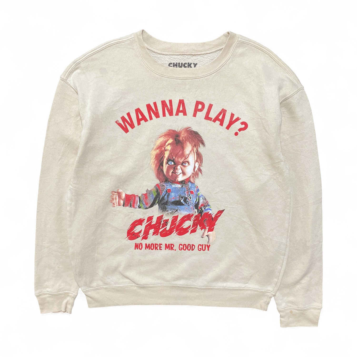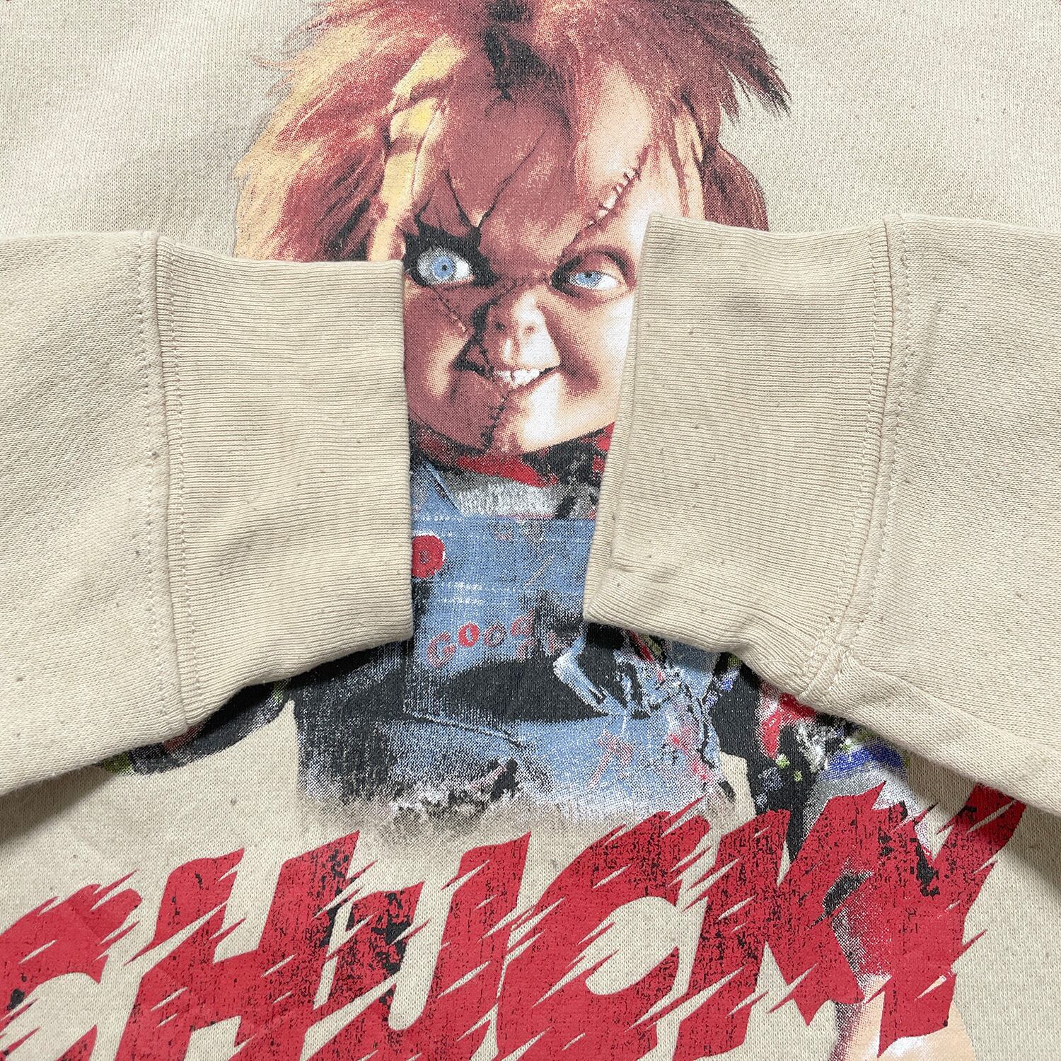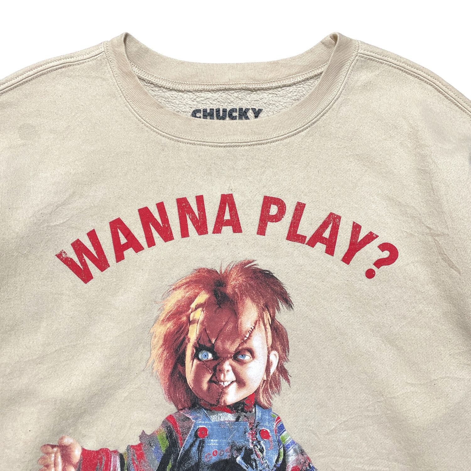 USA 古着 映画 チャイルドプレイ チャッキー クルーネック スウェット トレーナー プリント メンズM ベージュ BD2918