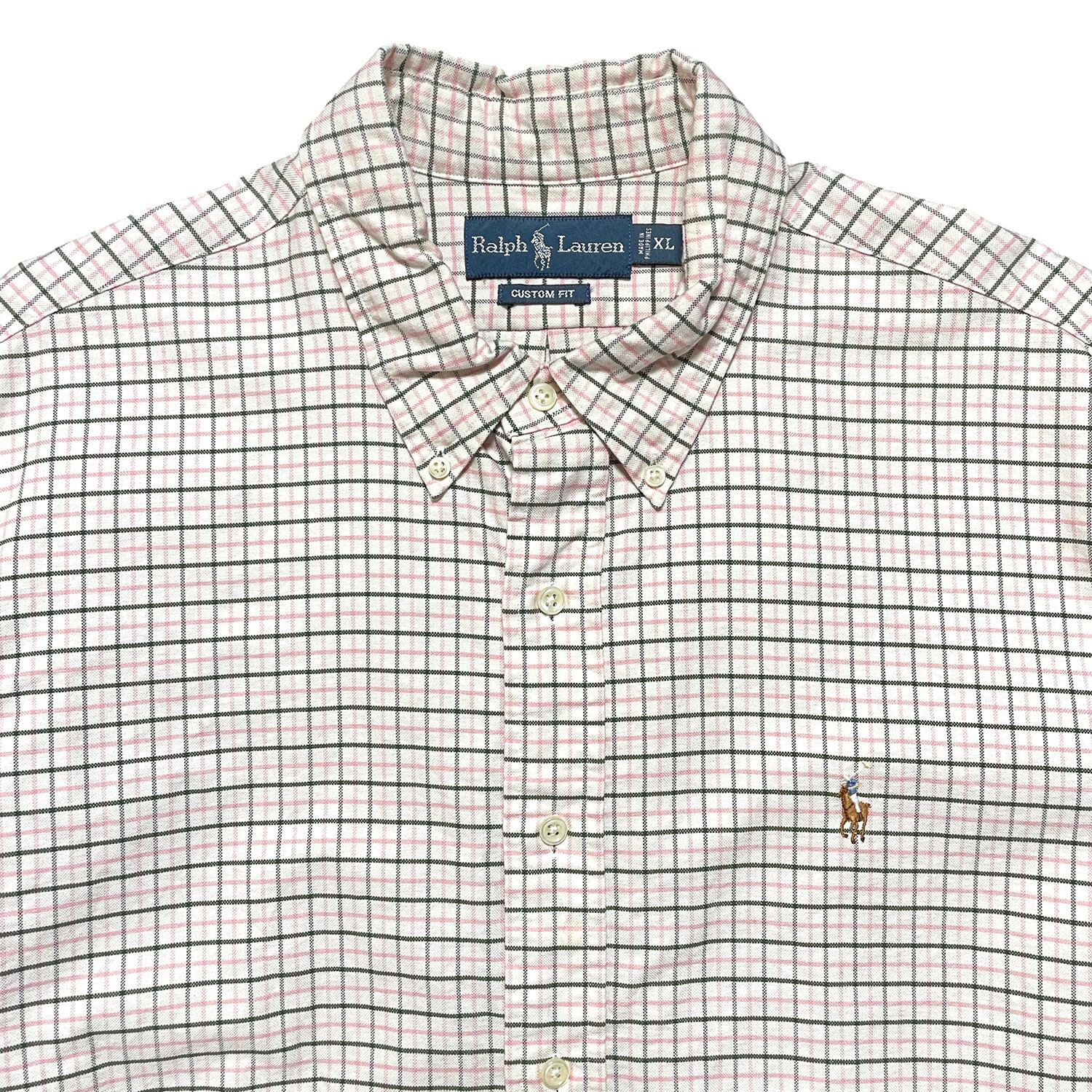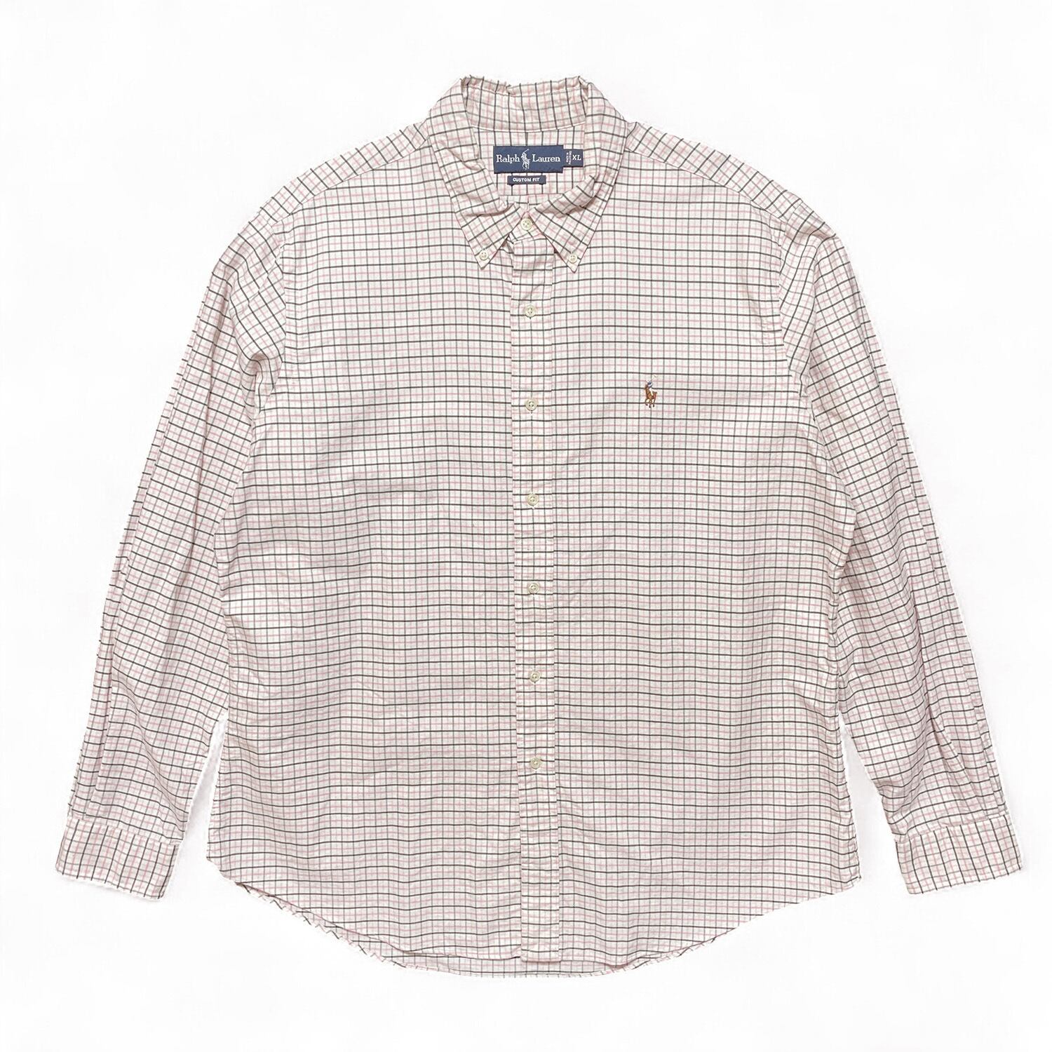 USA 古着 Ralph Lauren ラルフローレン オックスフォード コットン チェック柄 長袖シャツ メンズXL カジュアルシャツ BG1108