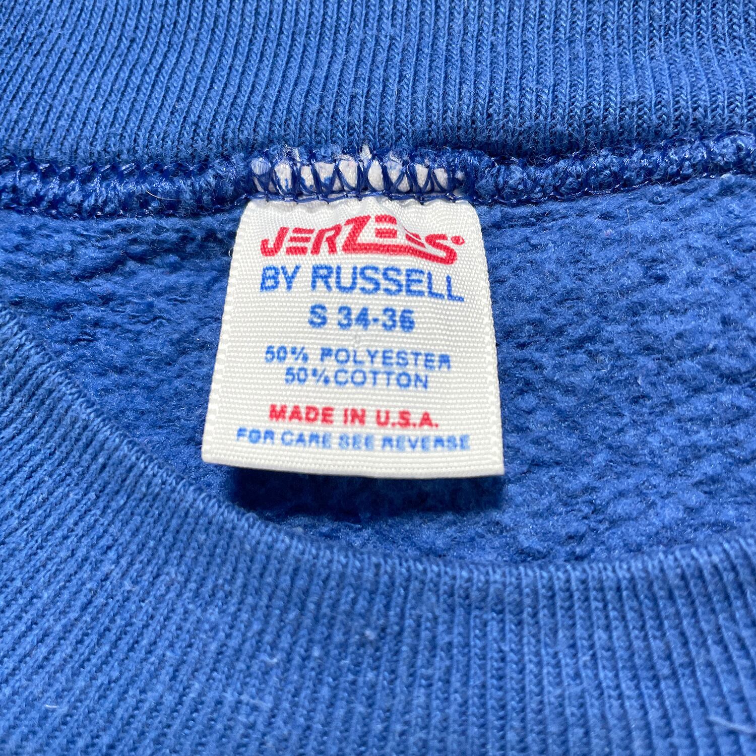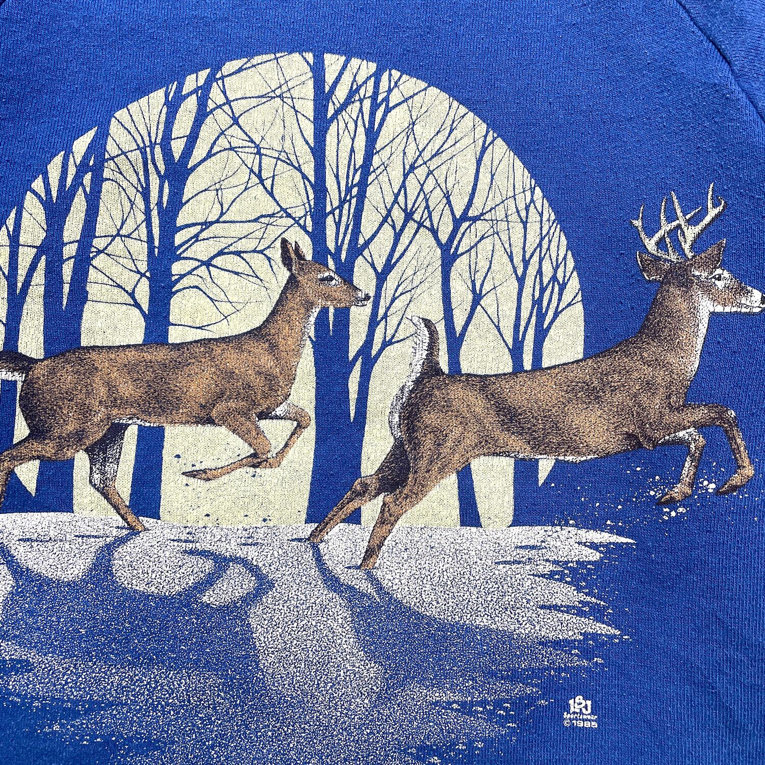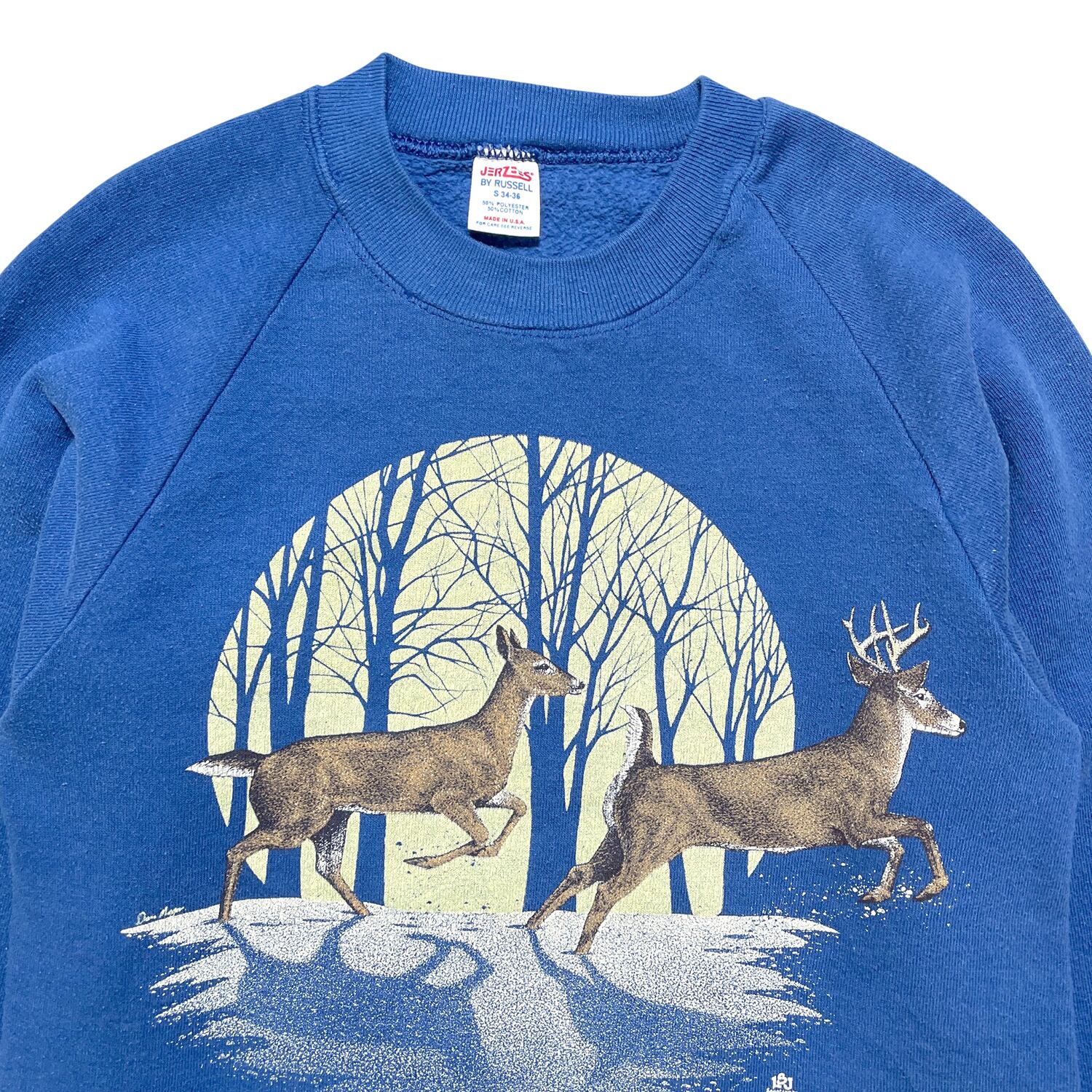 USA 古着 80S USA製 JERZEES BY RUSSELL ラッセル ヴィンテージ エルク 鹿 アニマル クルーネック スウェット トレーナー メンズS ブルー BD2921