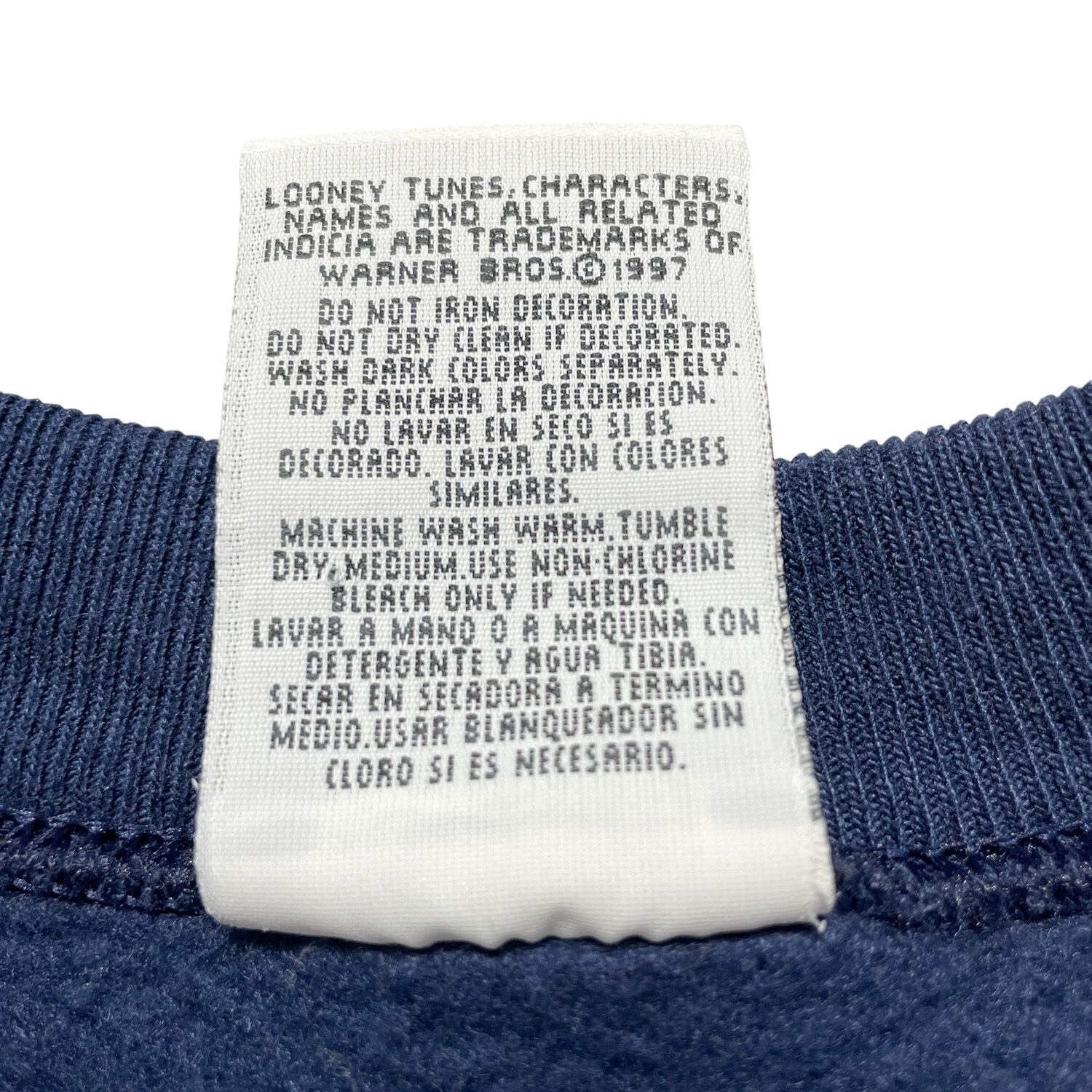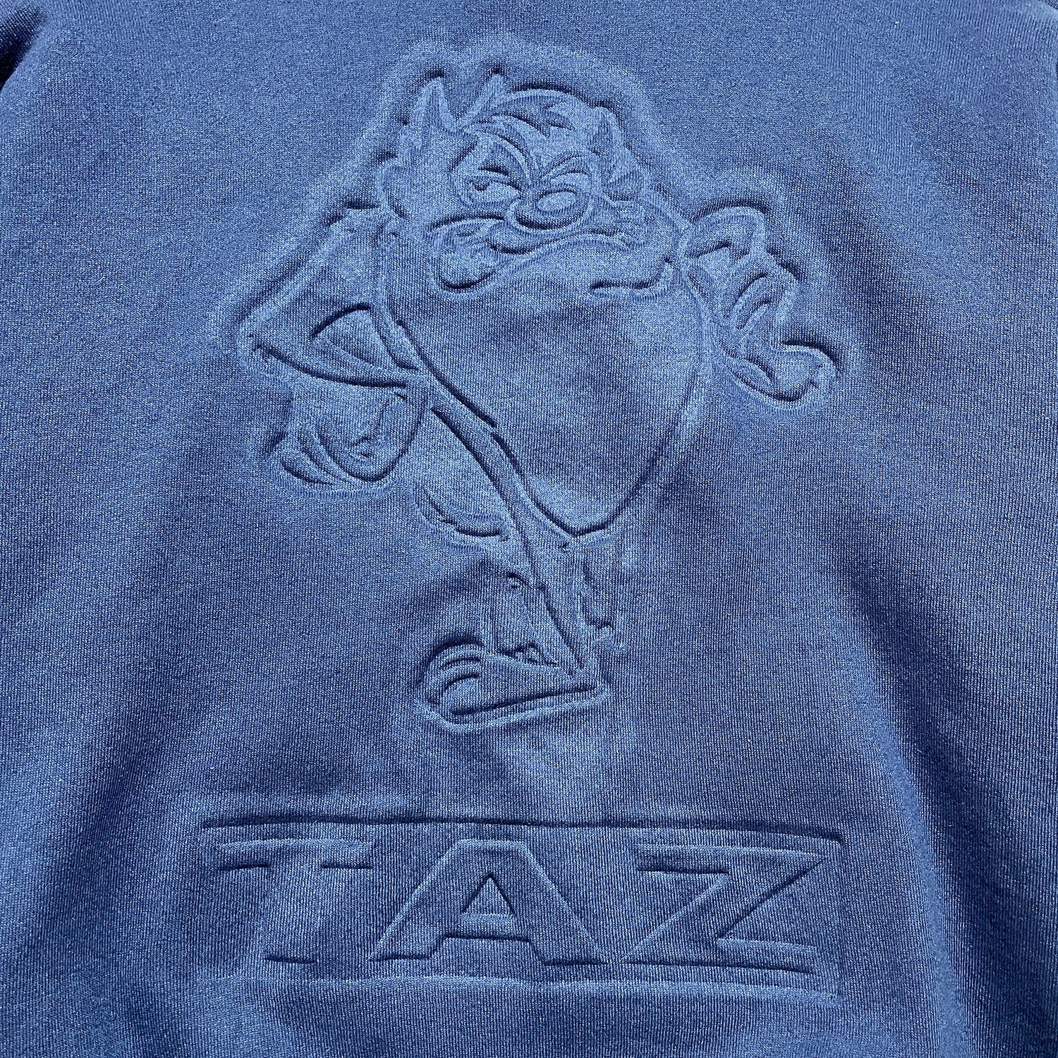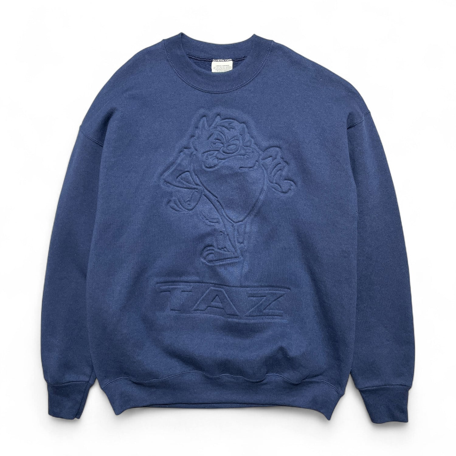 古着 USA製 90S ルーニーテューンズ タズマニアンデビル エンボス加工 ヴィンテージ スウェット トレーナー ネイビー メンズL BD2944