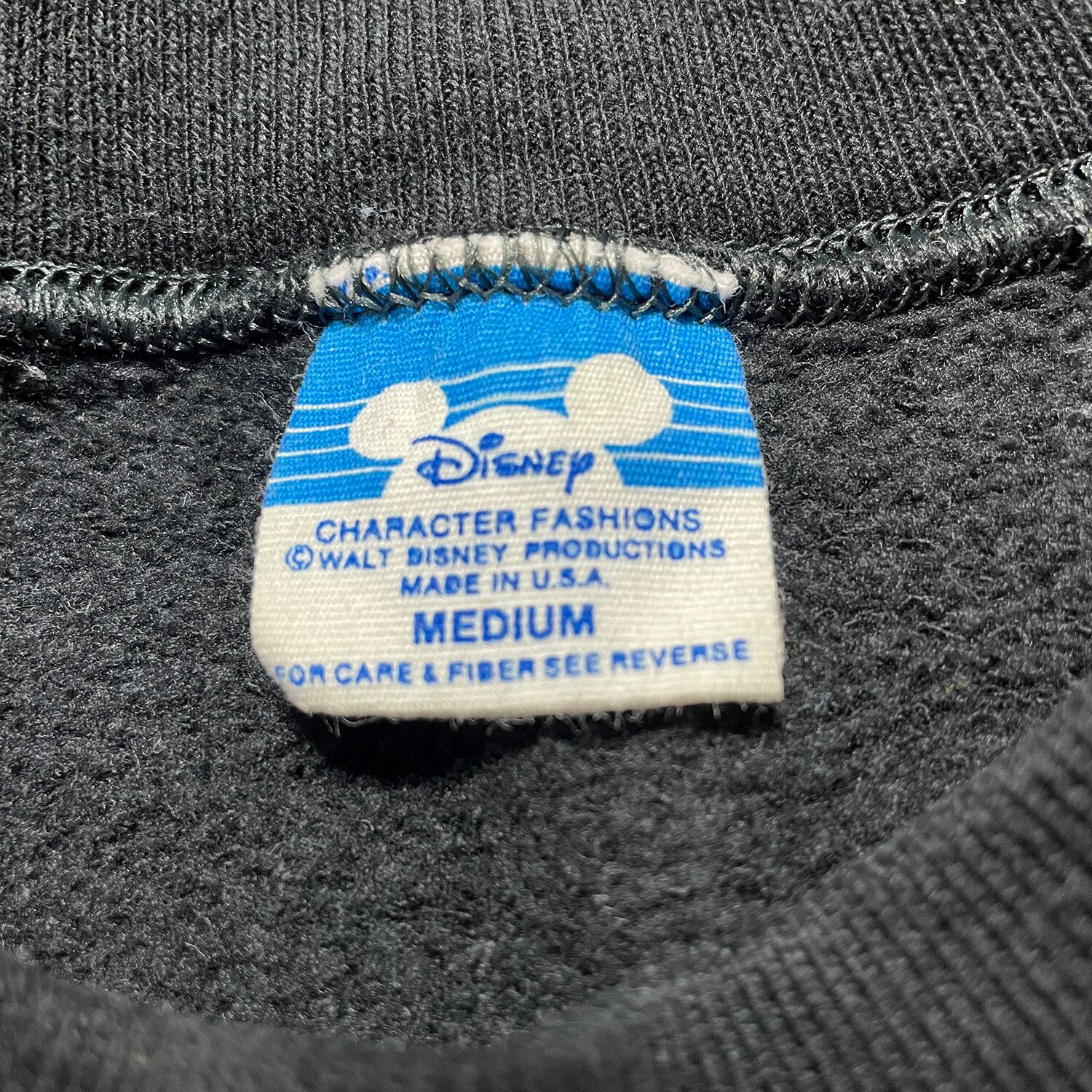 古着 USA製 80S ディズニー ミッキーマウス フロッキープリント ヴィンテージ クルーネック スウェット トレーナー ブラック メンズM BD2943
