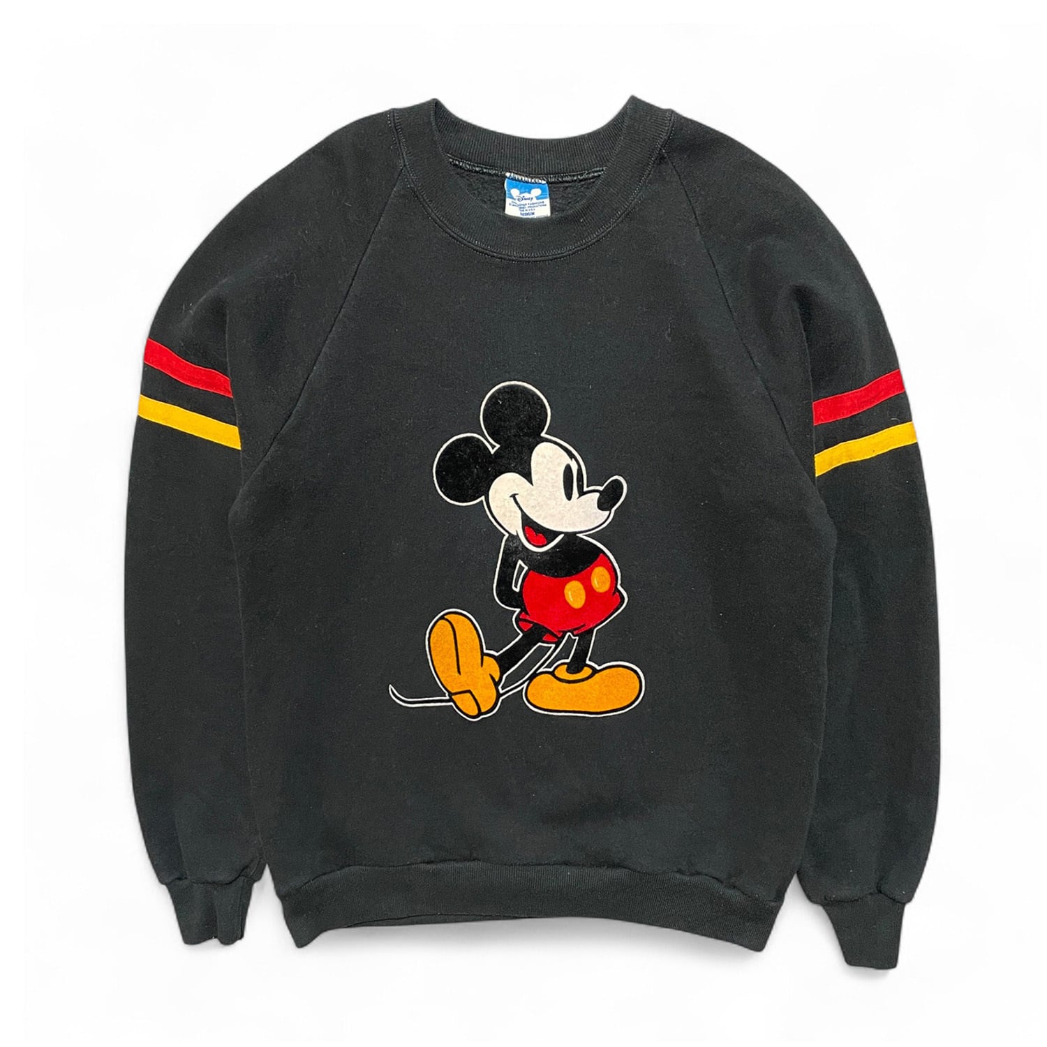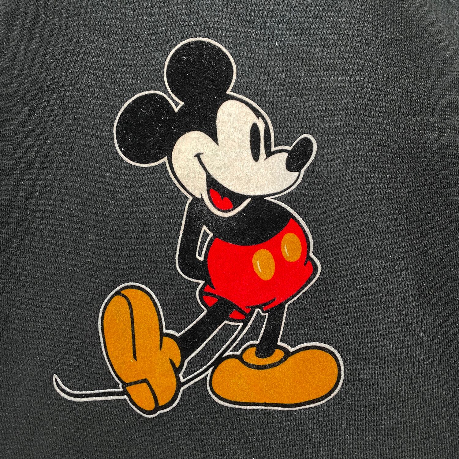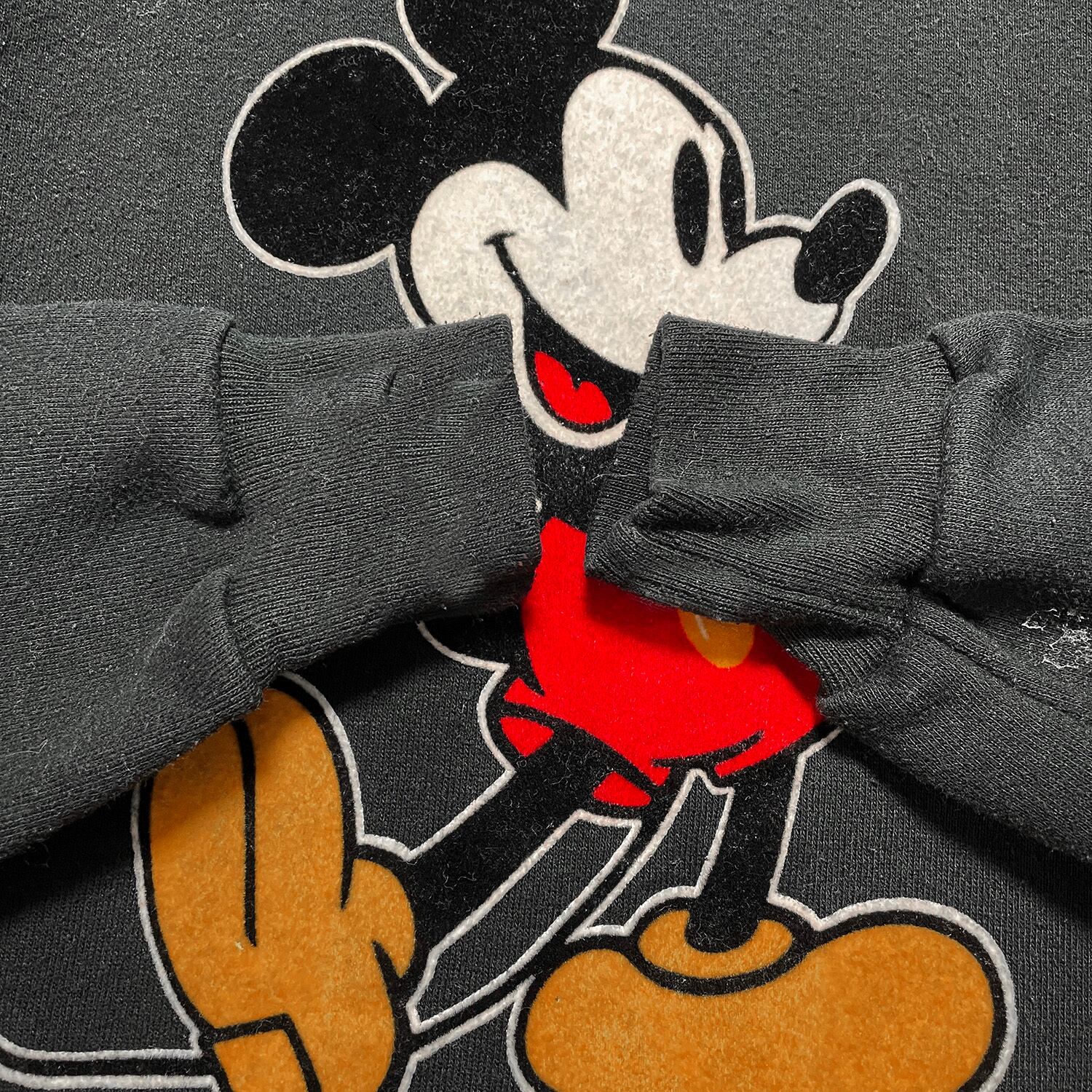 古着 USA製 80S ディズニー ミッキーマウス フロッキープリント ヴィンテージ クルーネック スウェット トレーナー ブラック メンズM BD2942