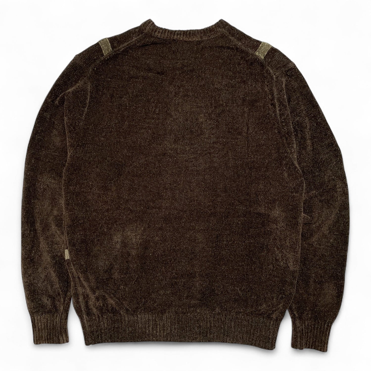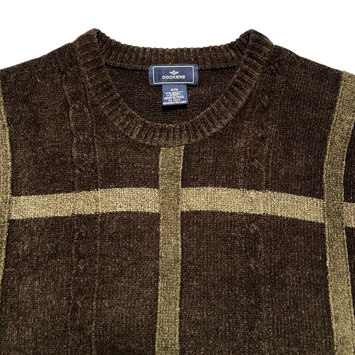 USA 古着 DOCKERS ドッカーズ クルーネック アクリル/レーヨン ベロア スウェット セーター チェック メンズM ブラウン BD2908