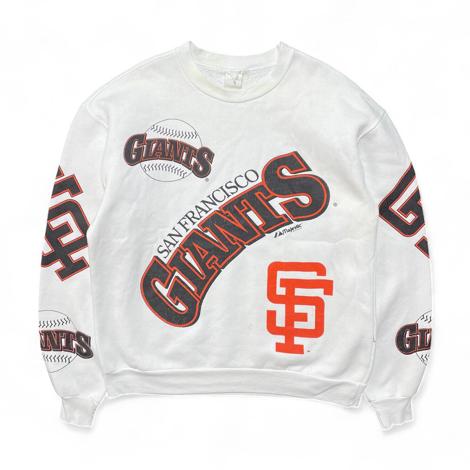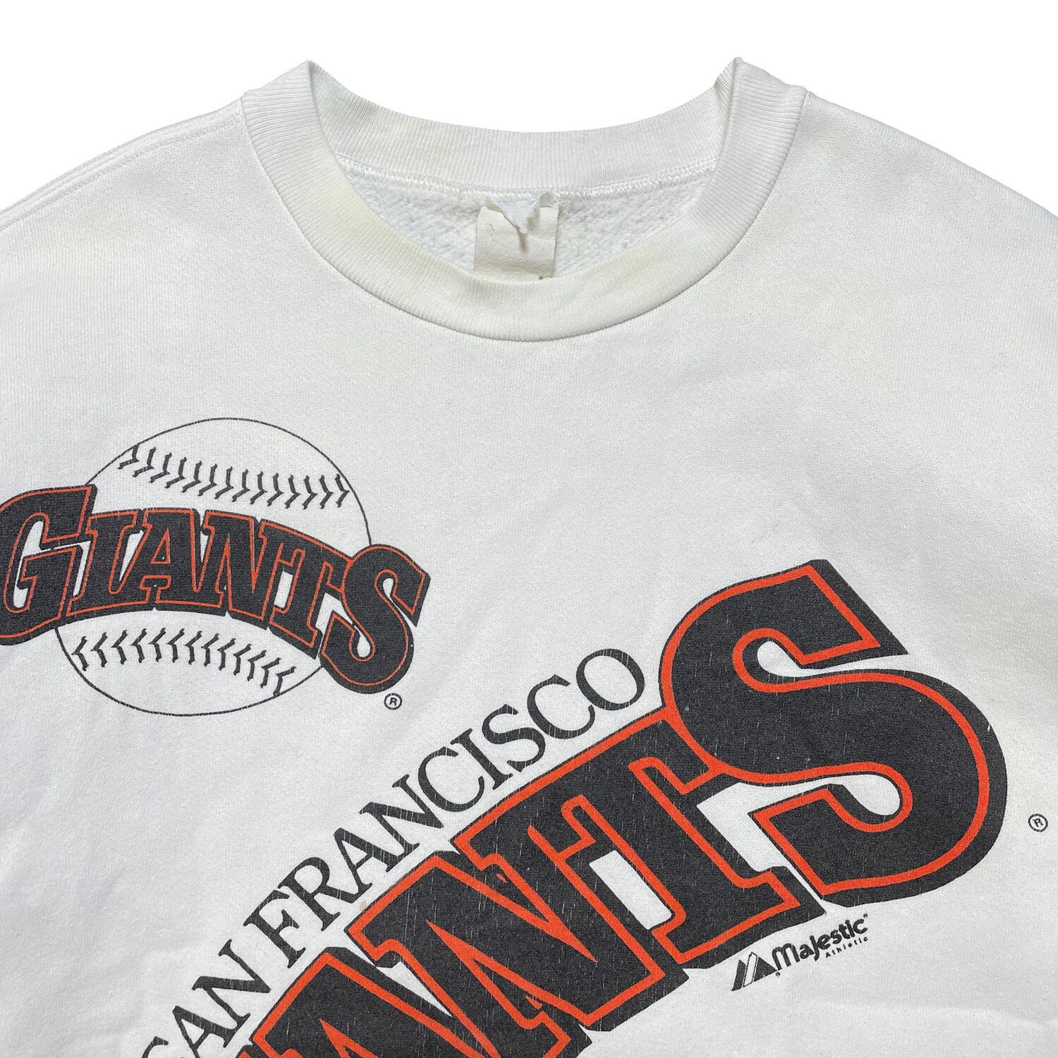 USA 古着 90S マジェスティック MLB サンフランシスコジャイアンツ ヴィンテージ クルーネック スウェット トレーナー プリント ホワイト BD2934