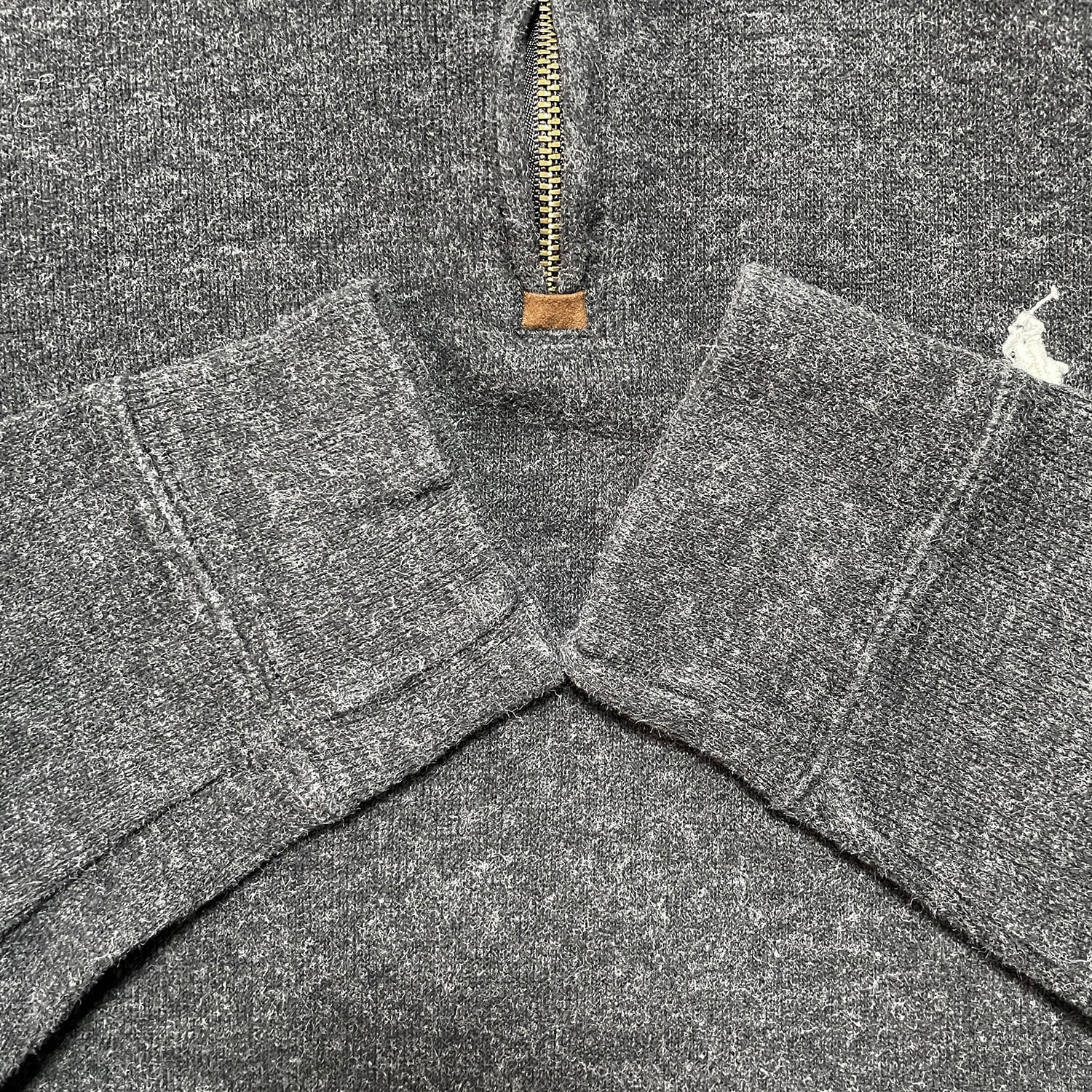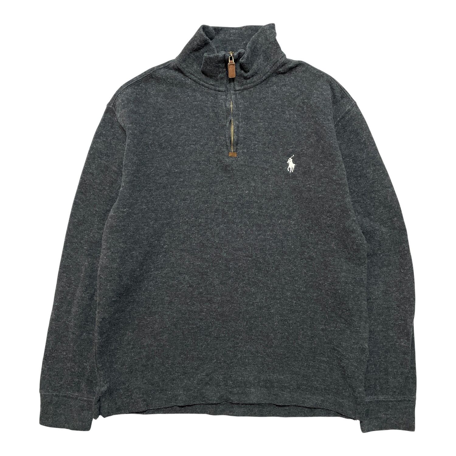 USA 古着 Polo Ralph Lauren ポロラルフローレン ハーフジップ コットン ニット スウェット 刺繍 ロゴ チャコール メンズS BD2935