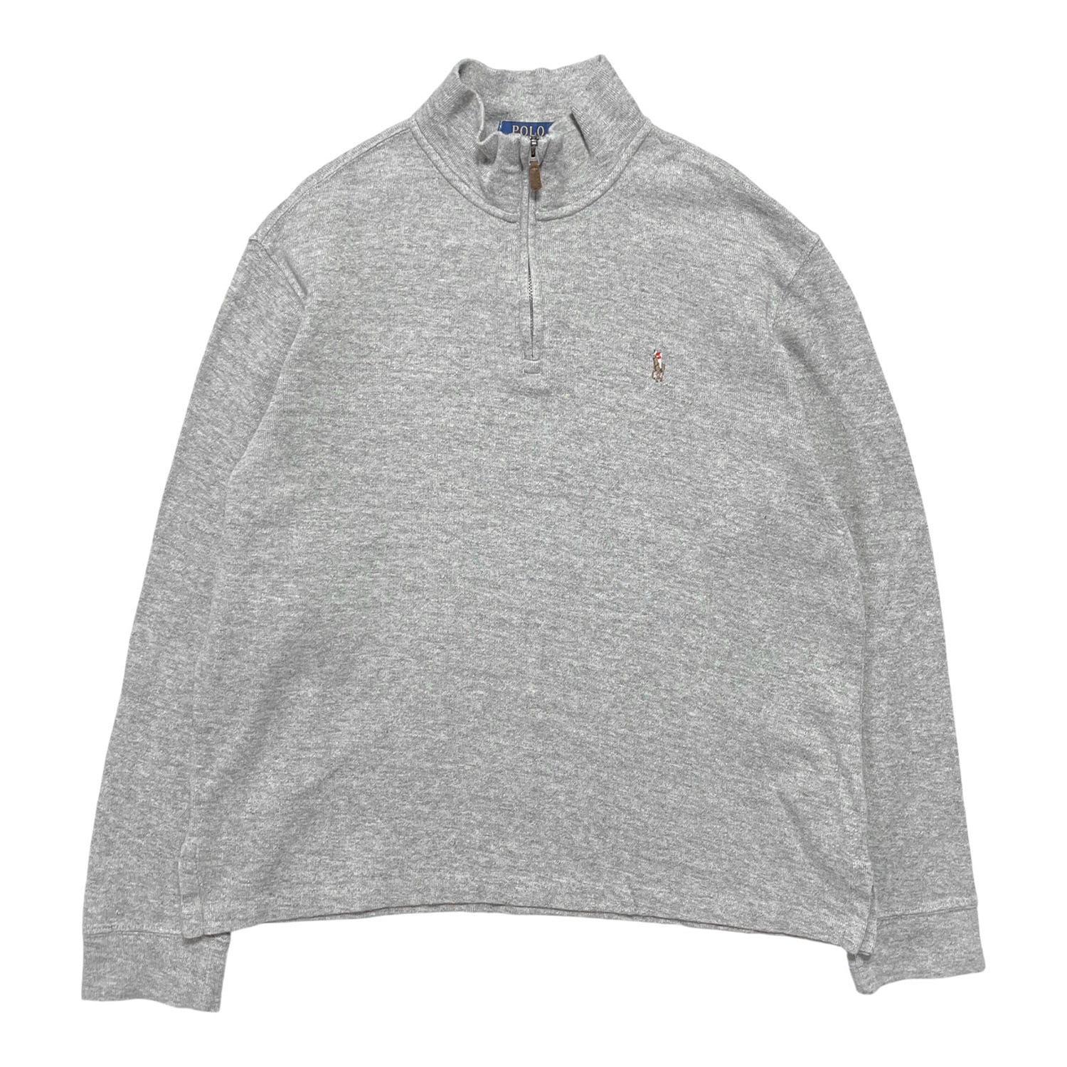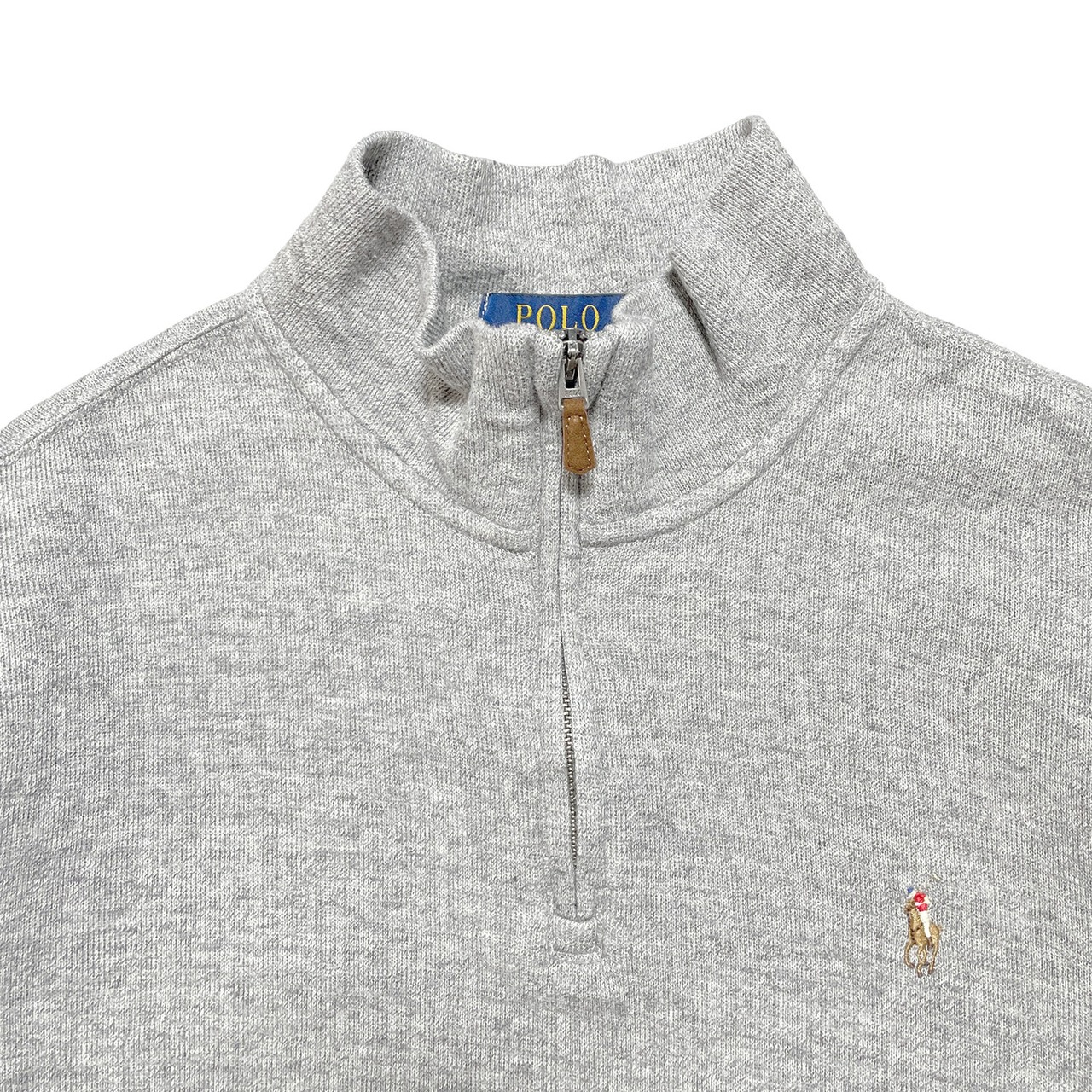 USA 古着 Polo Ralph Lauren ポロラルフローレン ハーフジップ コットン ニット スウェット 刺繍 ロゴ グレー メンズM BD2936