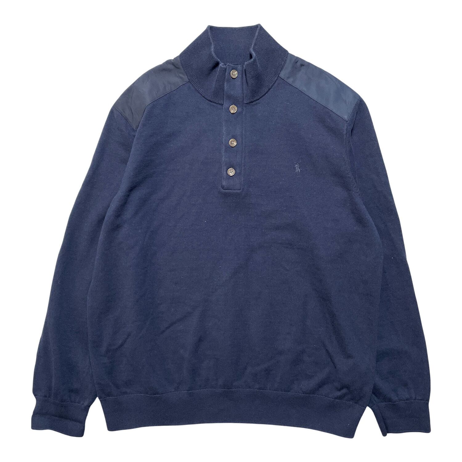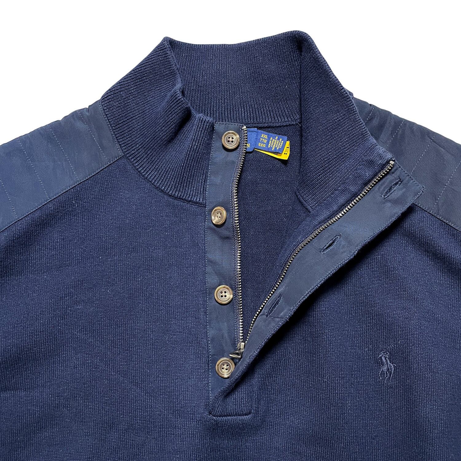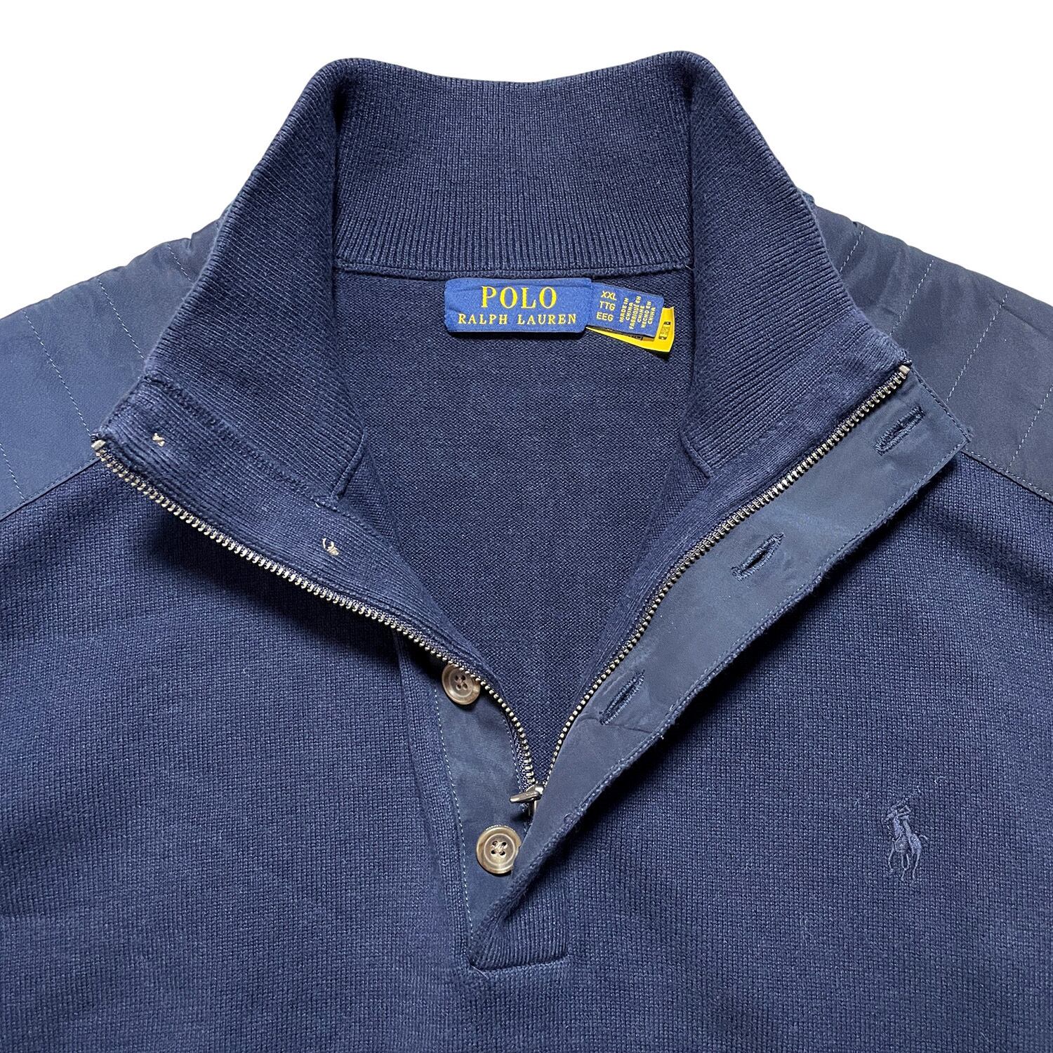 USA 古着 Polo Ralph Lauren ポロラルフローレン モックネック コットン ニット スウェット ネイビー メンズXXL 大きいサイズ BD2940