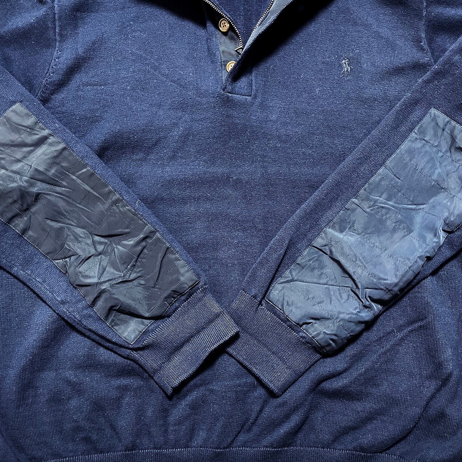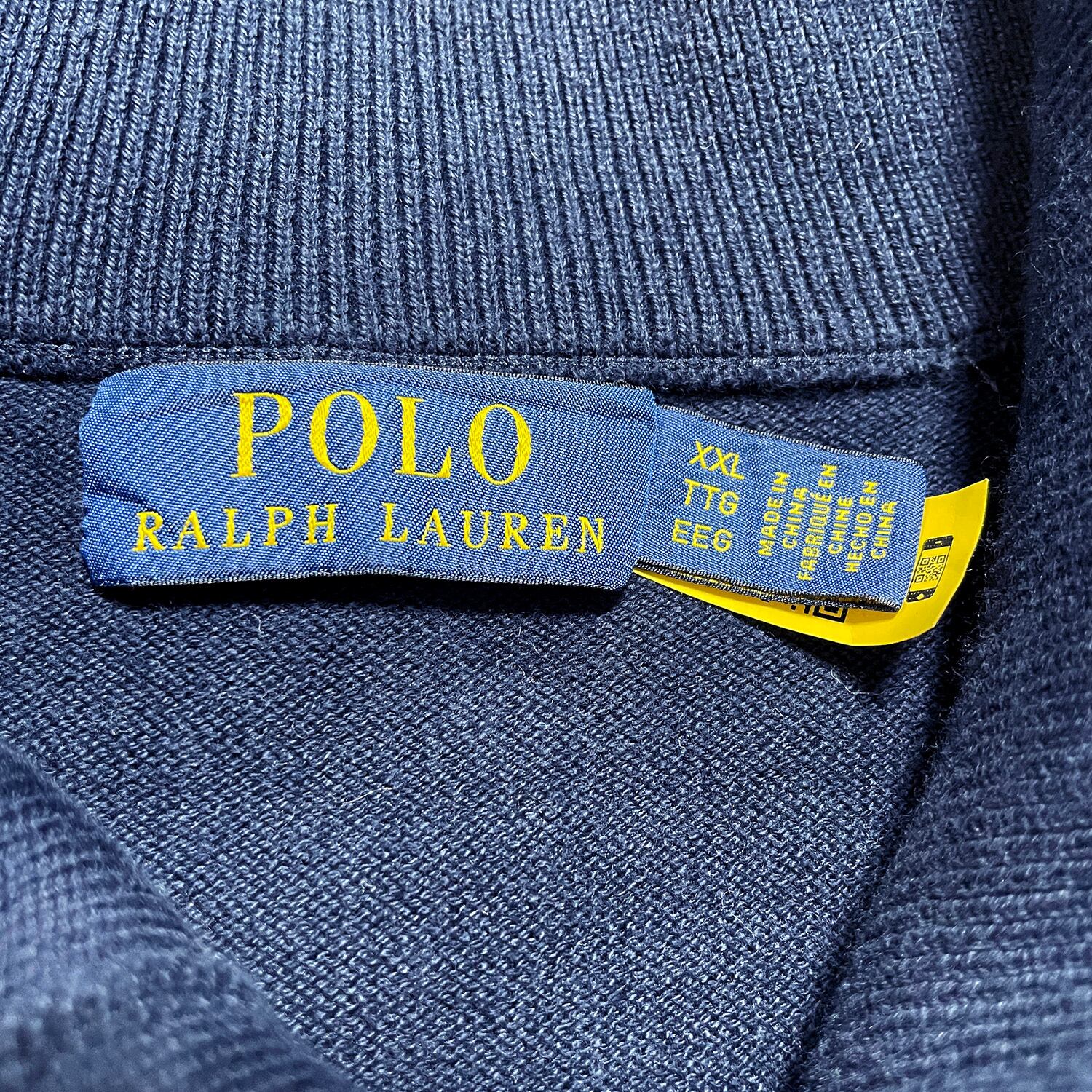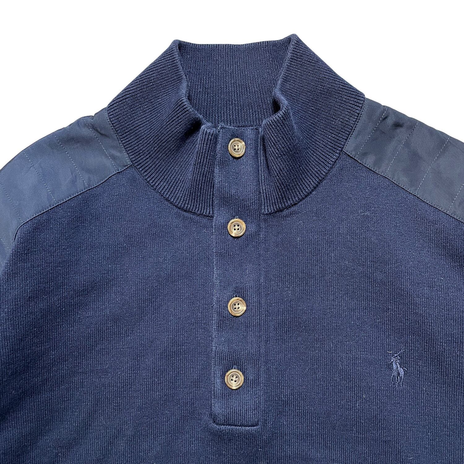 USA 古着 Polo Ralph Lauren ポロラルフローレン モックネック コットン ニット スウェット ネイビー メンズXXL 大きいサイズ BD2940