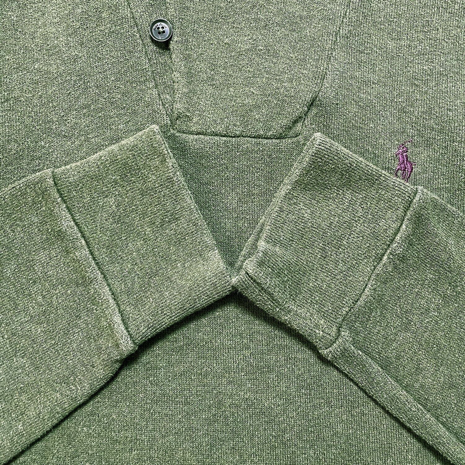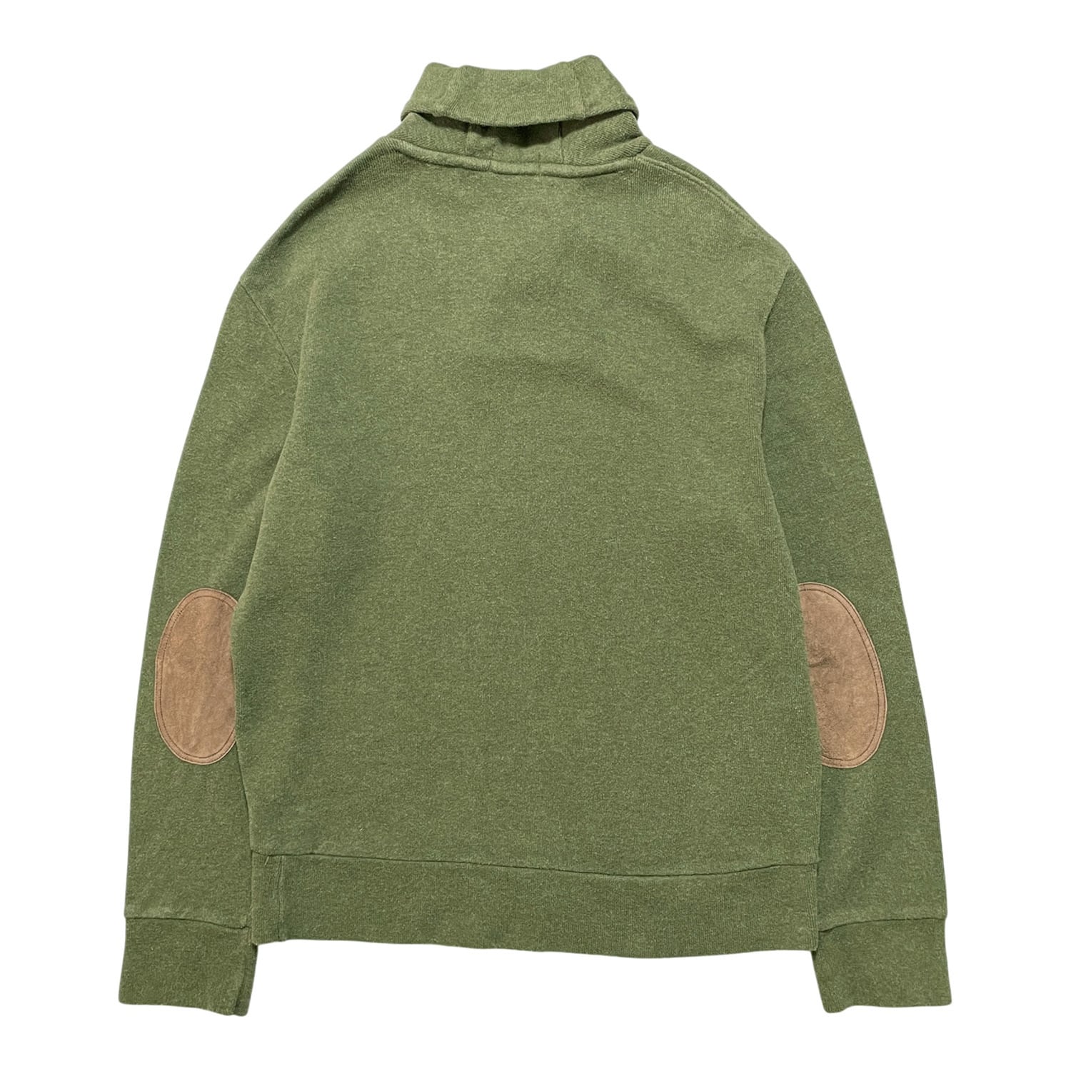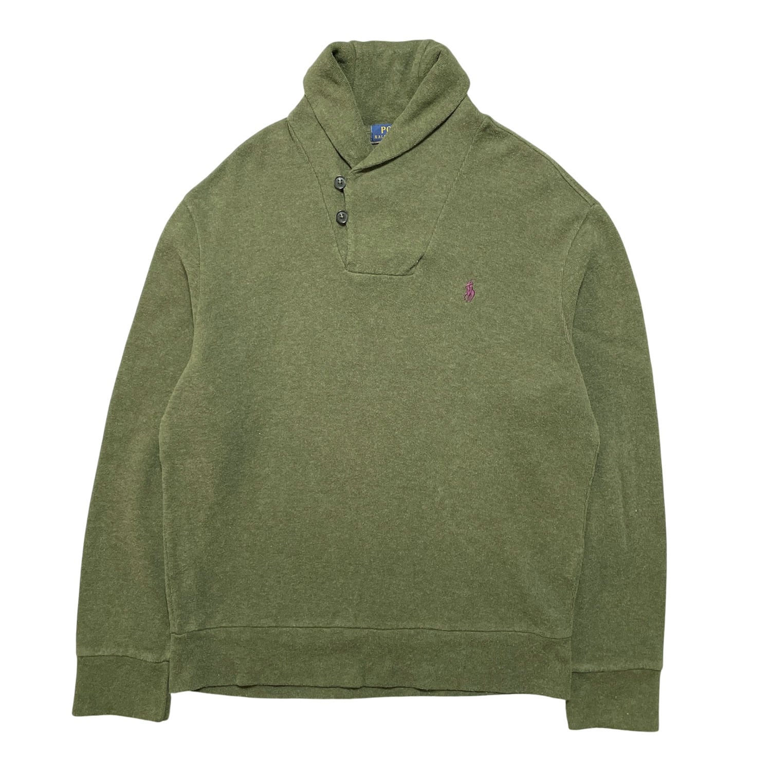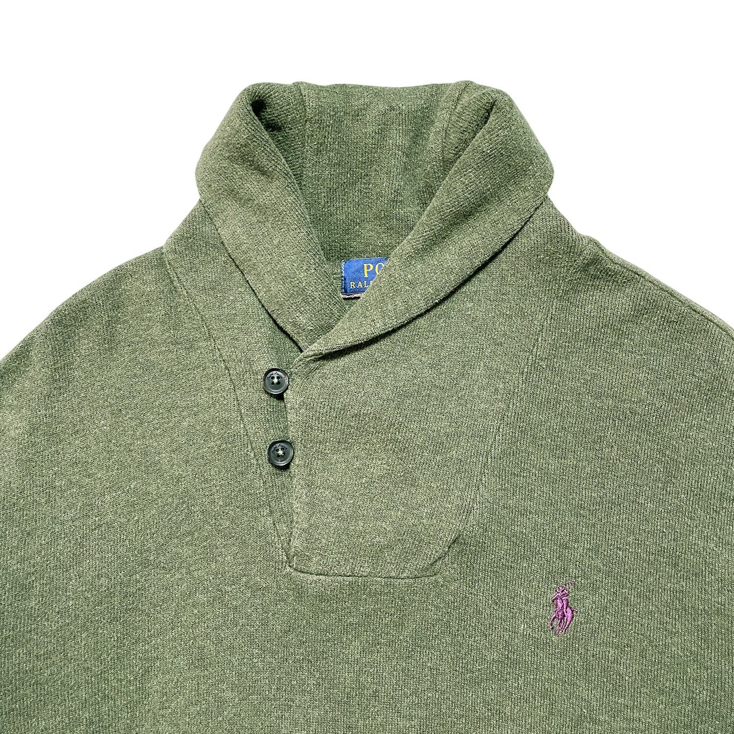 USA 古着 Polo Ralph Lauren ポロラルフローレン ショールカラー コットン ニット スウェット 刺繍 ロゴ オリーブ メンズL BD2939