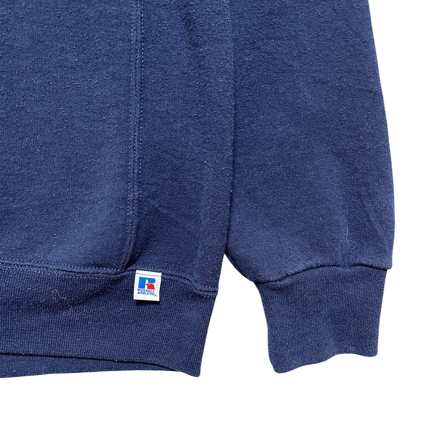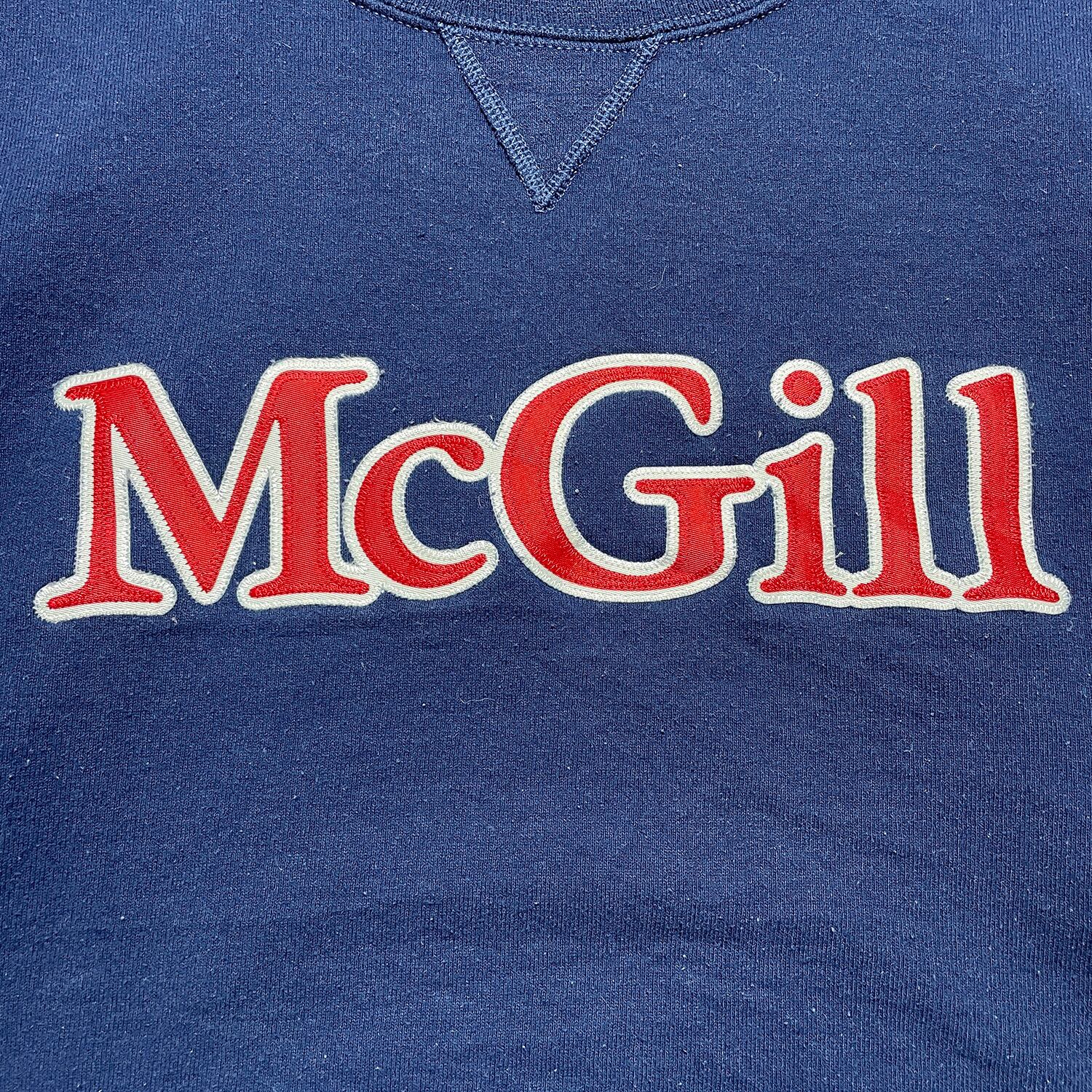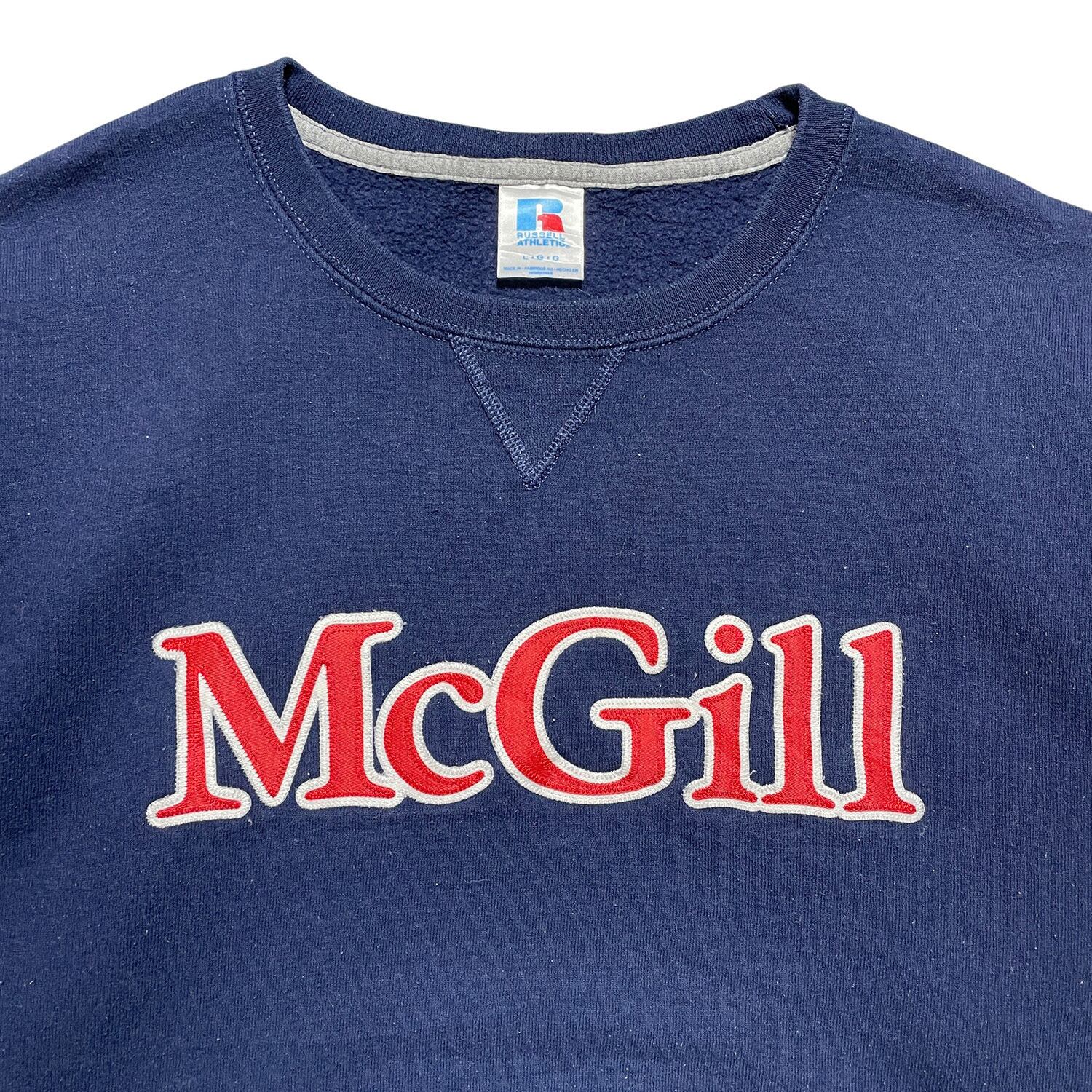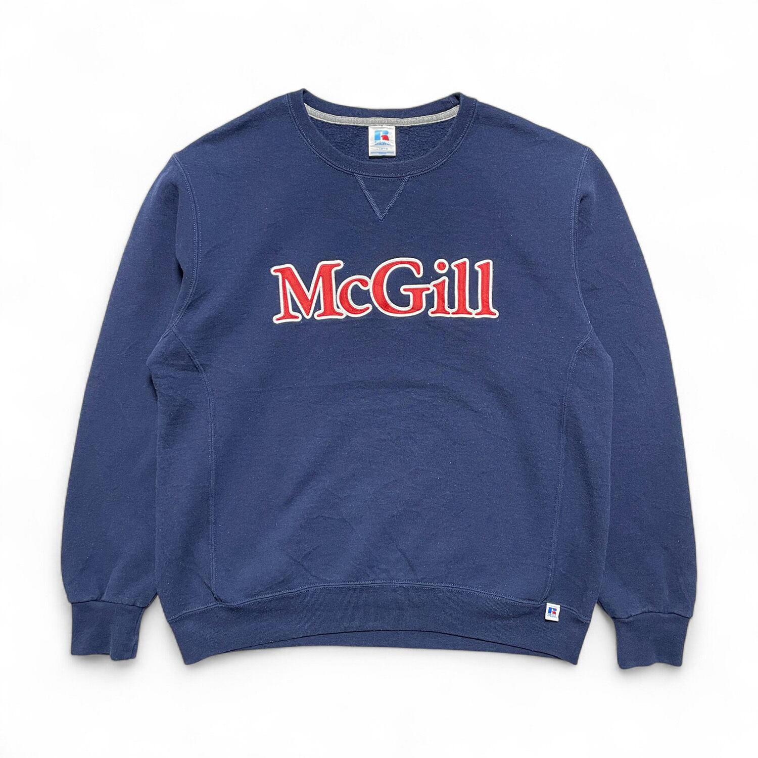 USA 古着 Russell ラッセル マギル大学 カレッジ クルーネック 前V スウェット トレーナー プリント ネイビー メンズL BD2929