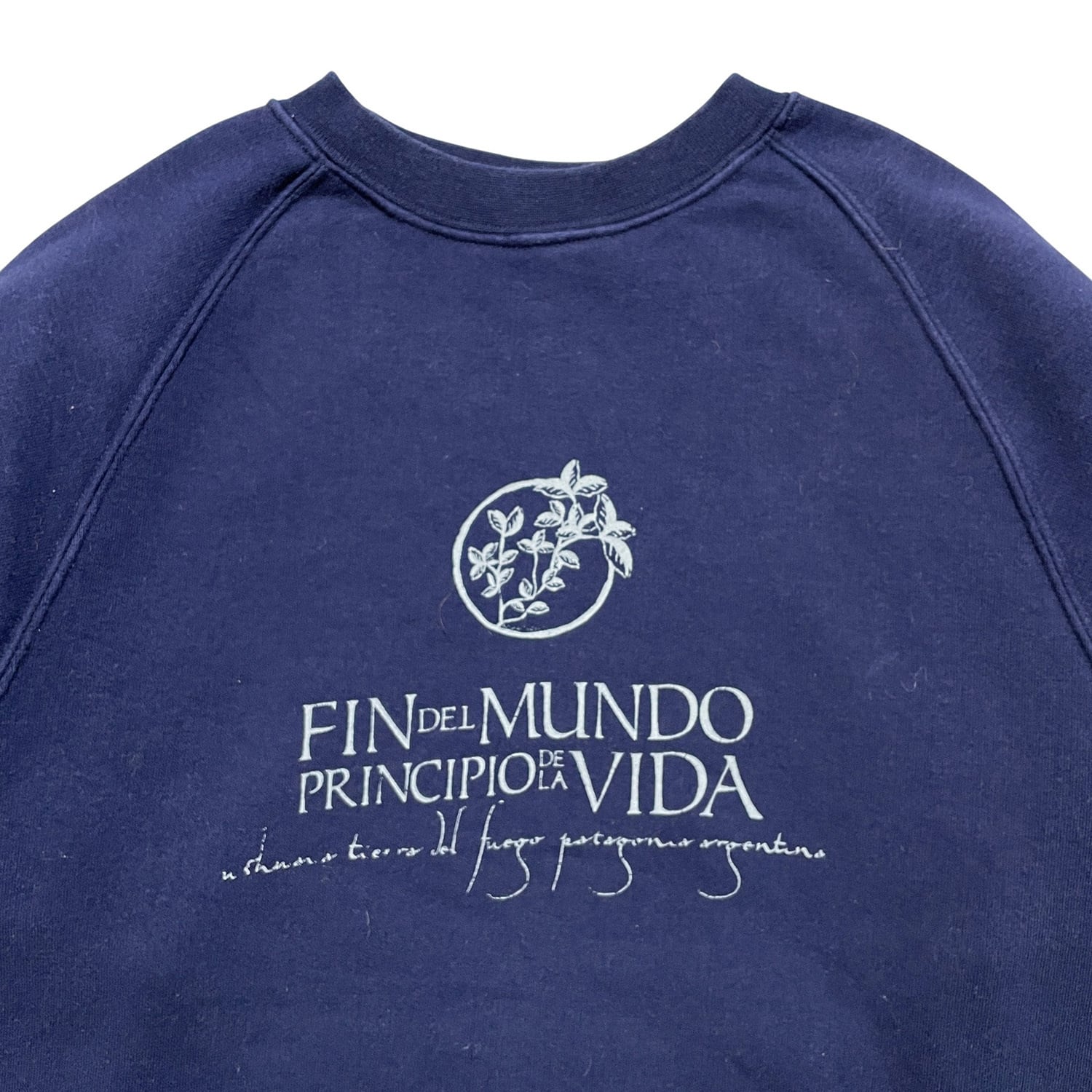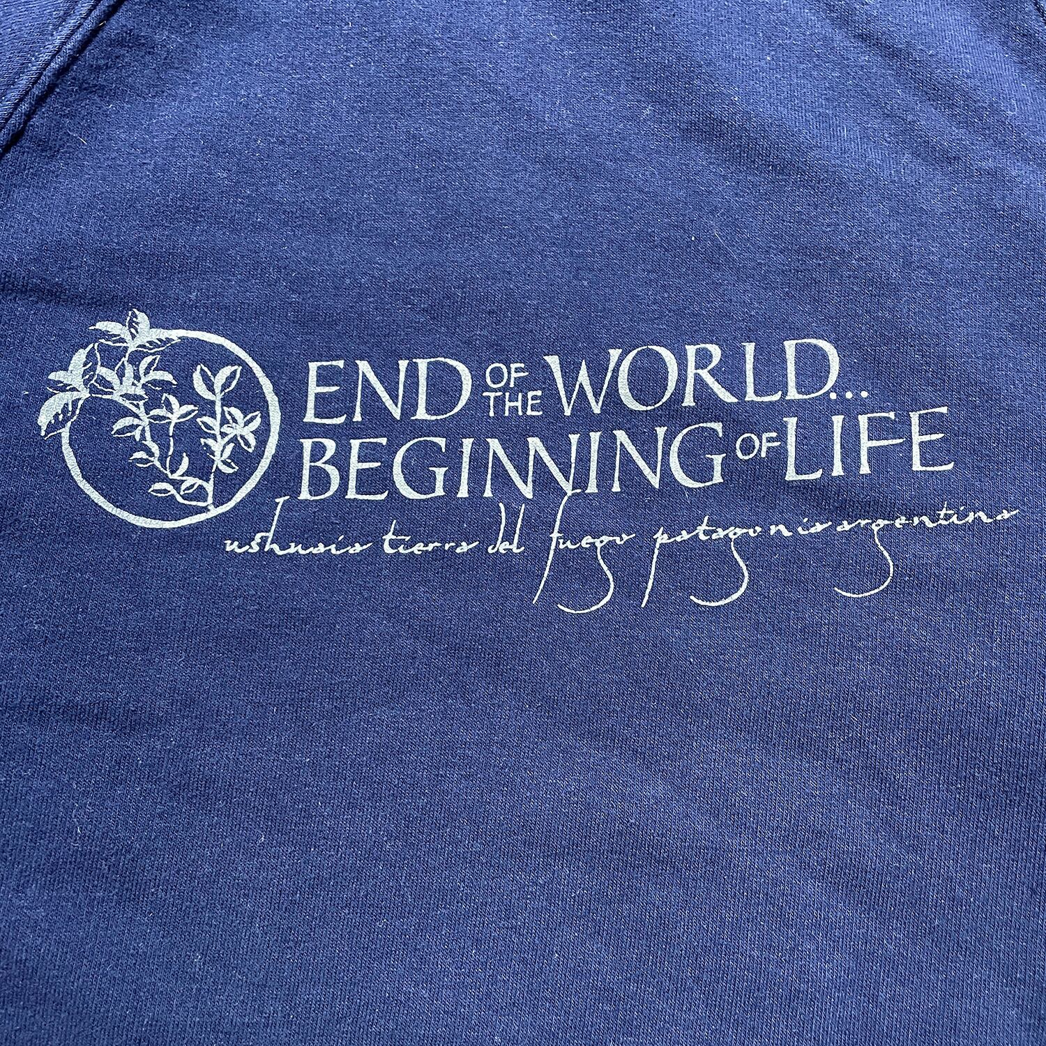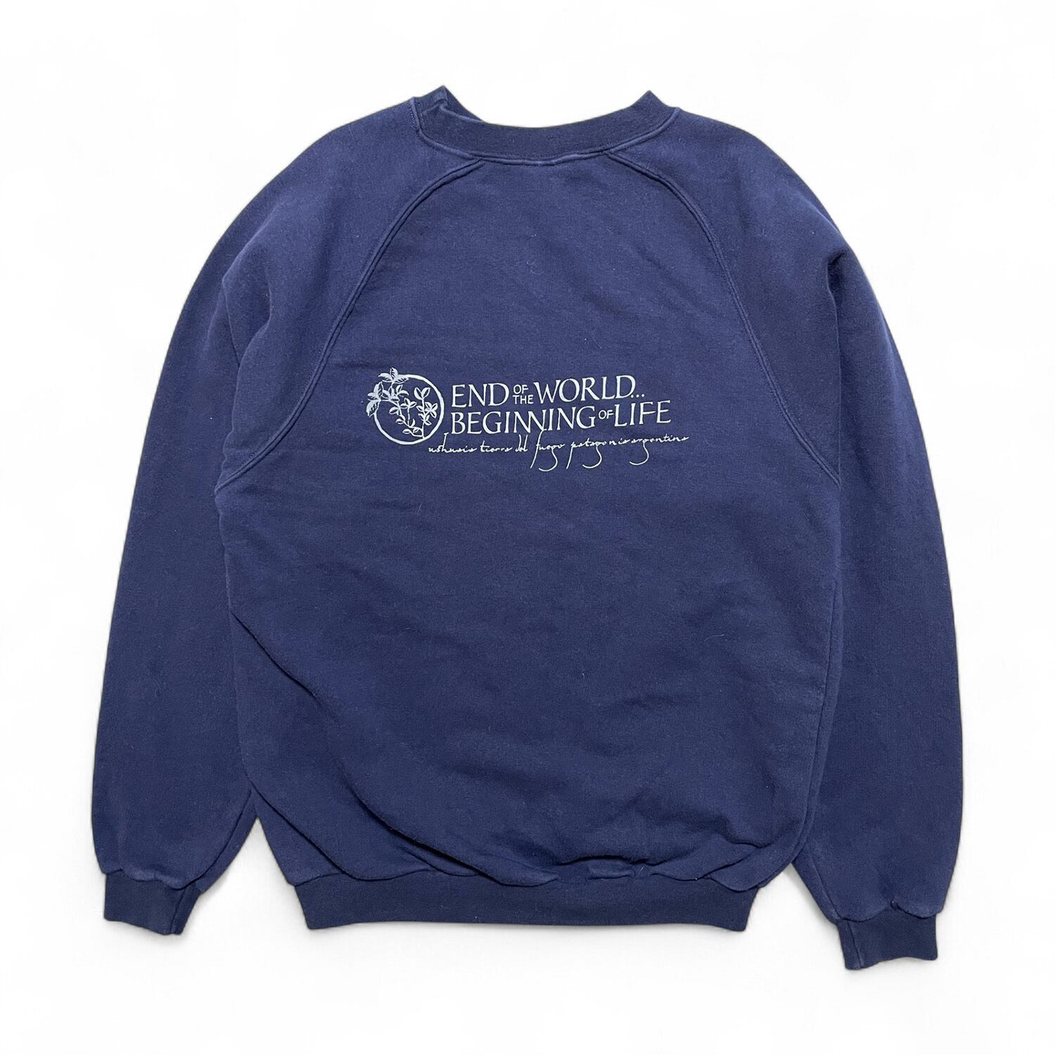 USA 古着 世界の終わり、人生の始まり クルーネック スウェット トレーナー プリント ネイビー メンズS BD2928
