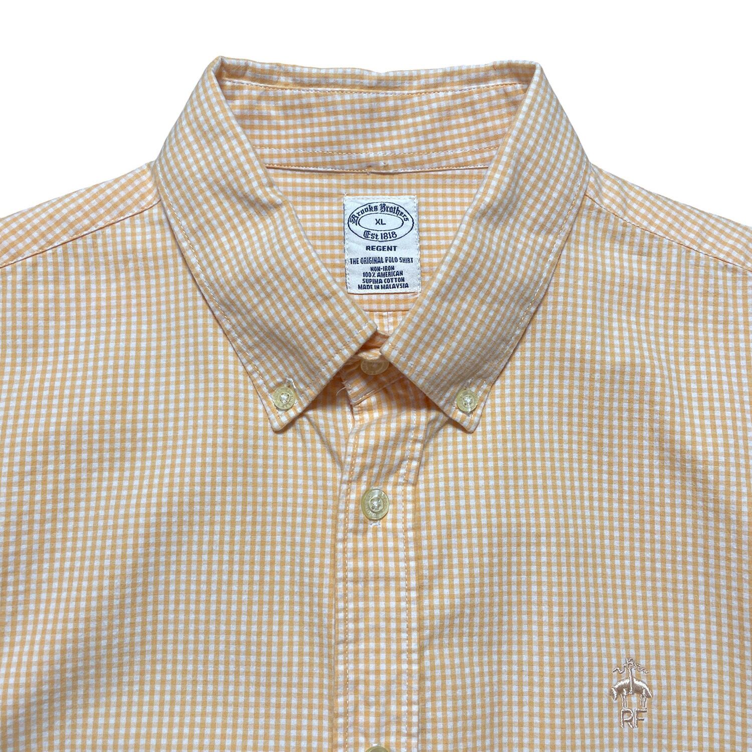 古着 USA Brooks Brothers ブルックスブラザーズ コットン ギンガムチェック柄 長袖シャツ メンズXL オレンジ色 カジュアルシャツ BG1118