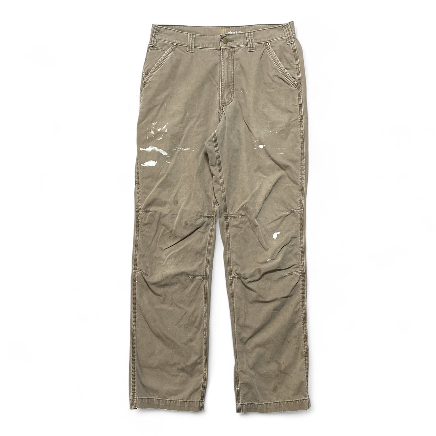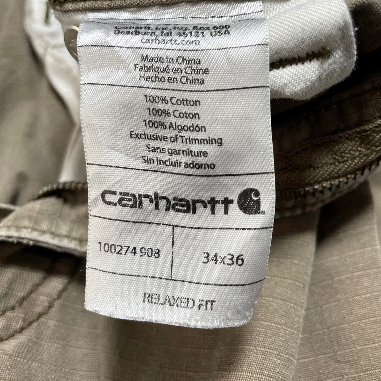 USA 古着 carhartt カーハート リップストップ コットン ワークパンツ W34 L36 ペンキ汚れ ブラウンベージュ系 CG0145