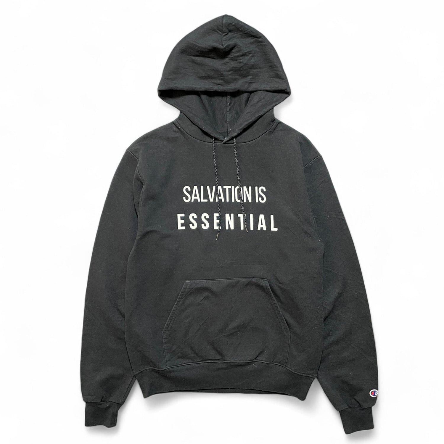 USA 古着 Champion チャンピオン 救いは不可欠 宗教系 スウェット パーカー プリント ブラック メンズS BE0894