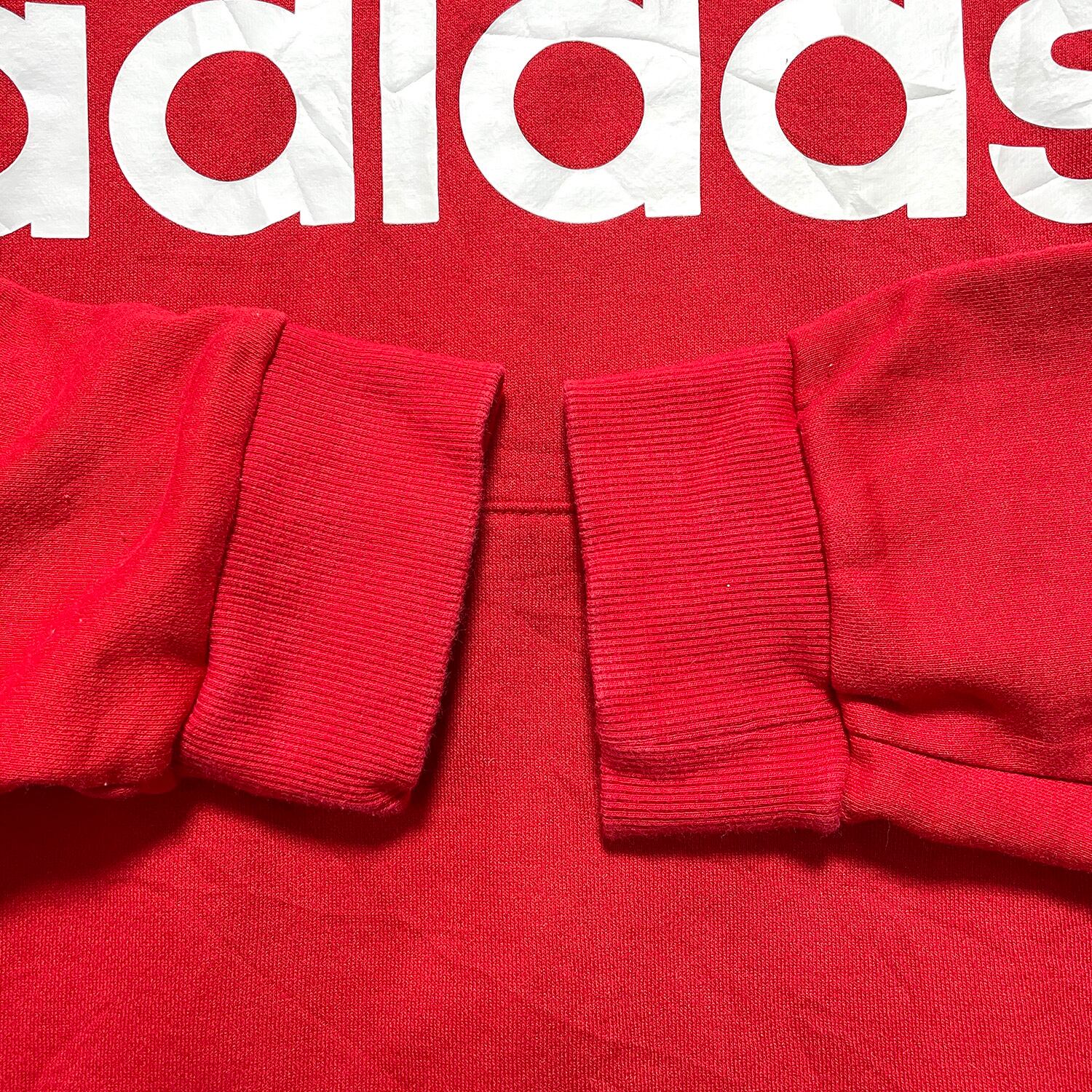 USA 古着 adidas アディダス スウェット パーカー ロゴ プリント ストライプ レッド メンズXL プルオーバー BE0883
