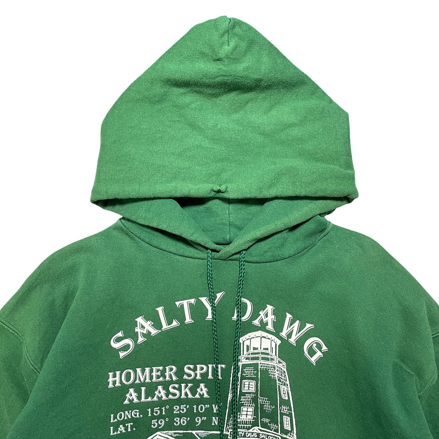 USA 古着 ソルティドッグサルーン Bar スウェット パーカー プリント グリーン メンズM プルオーバー BE0882