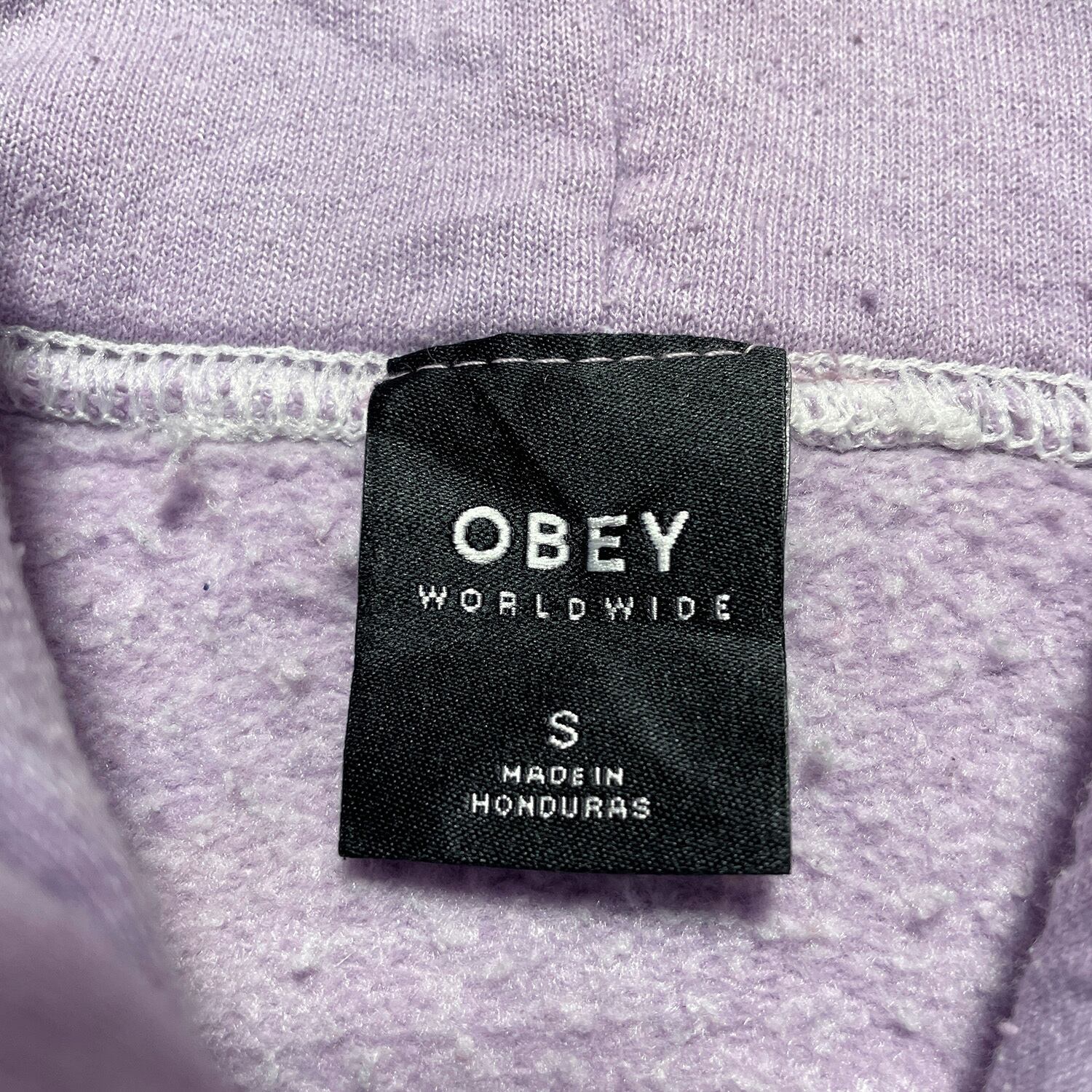 USA 古着 OBEY オベイ 薄手 スウェット パーカー ロゴ プリント パープル メンズS プルオーバー BE0908