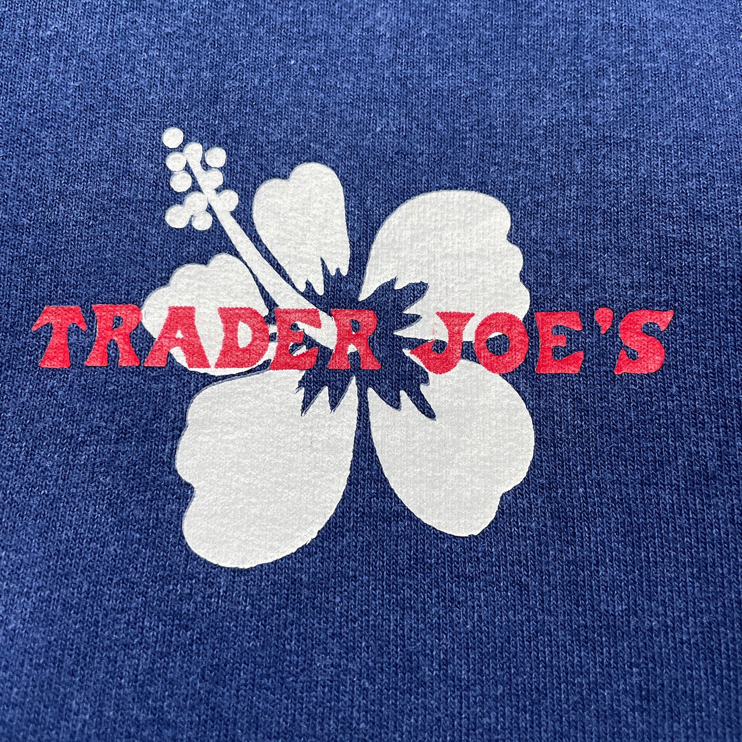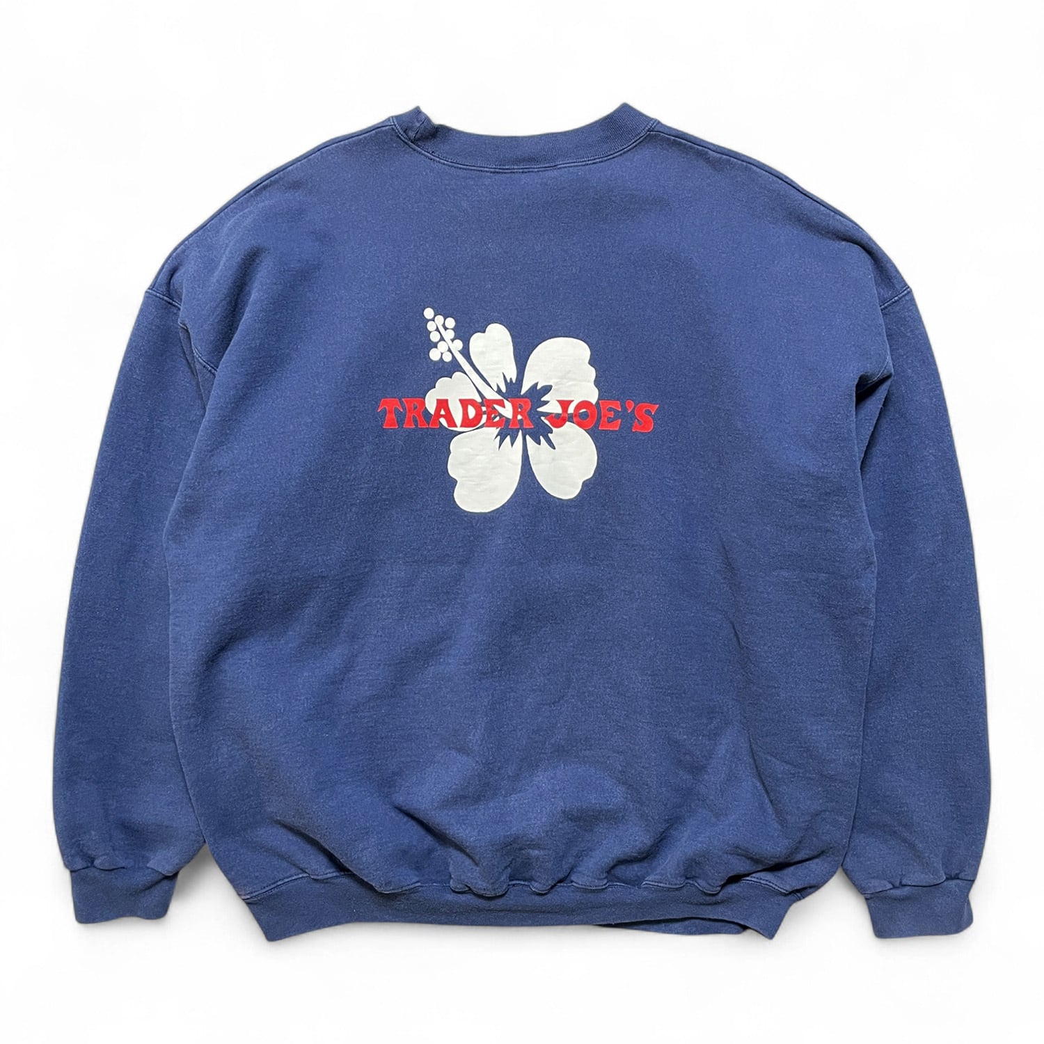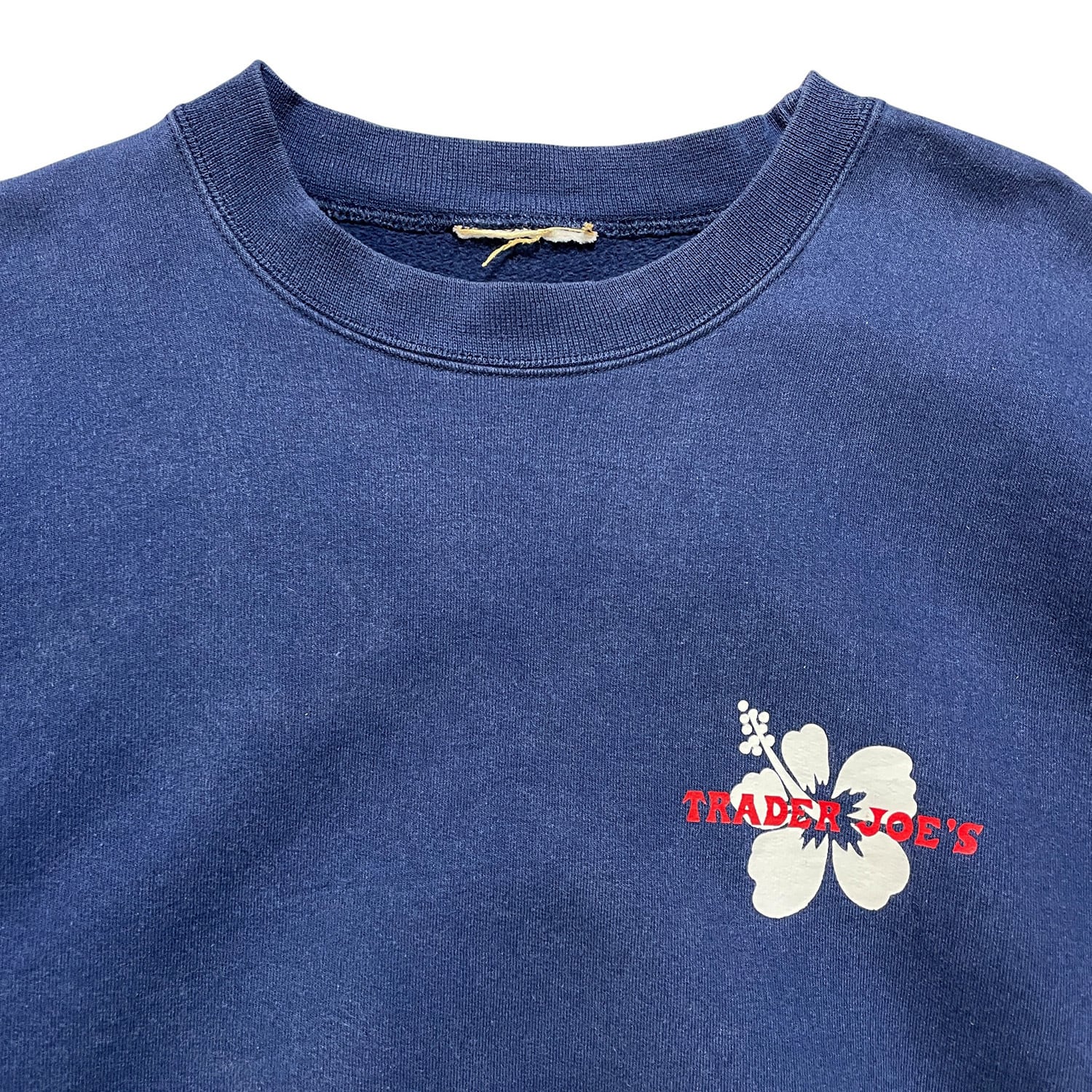 USA 古着 90S ヴィンテージ トレーダージョーズ 企業系 クルーネック スウェット トレーナー ロゴ プリント ネイビー 大きいサイズ BD2952