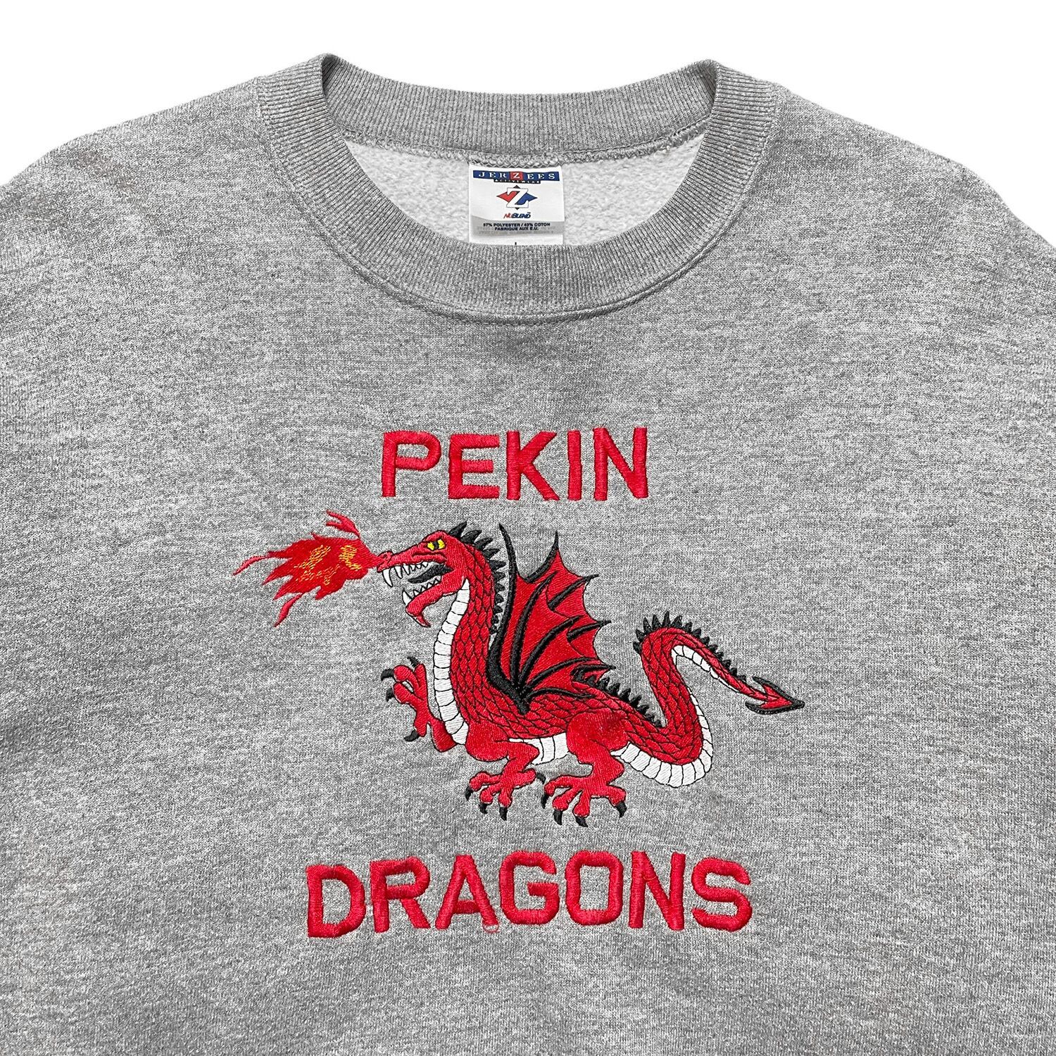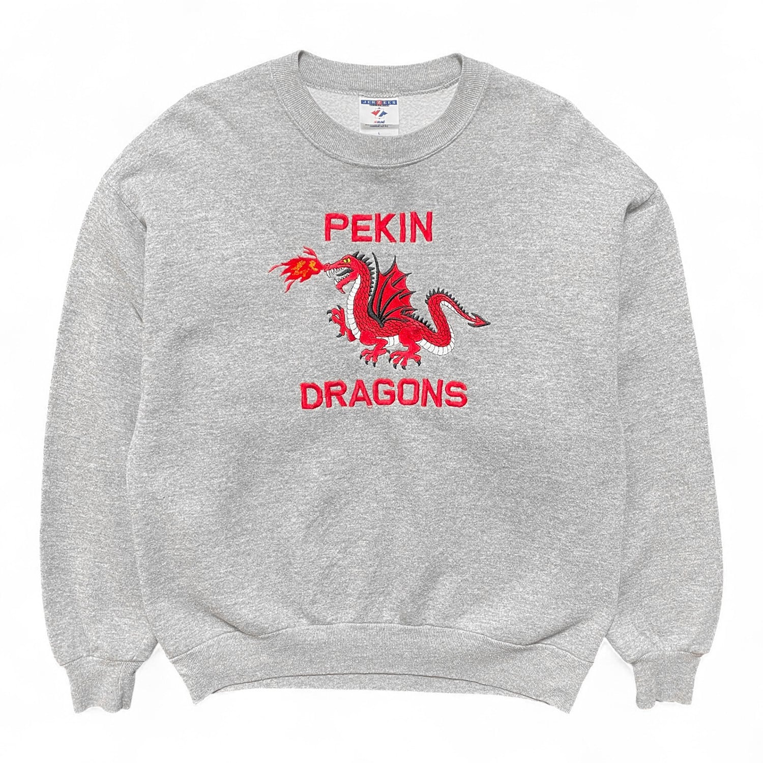 古着 USA製 90S 北京ドラゴンズ ヴィンテージ クルーネック スウェット トレーナー 刺繍 グレー メンズL BD2947