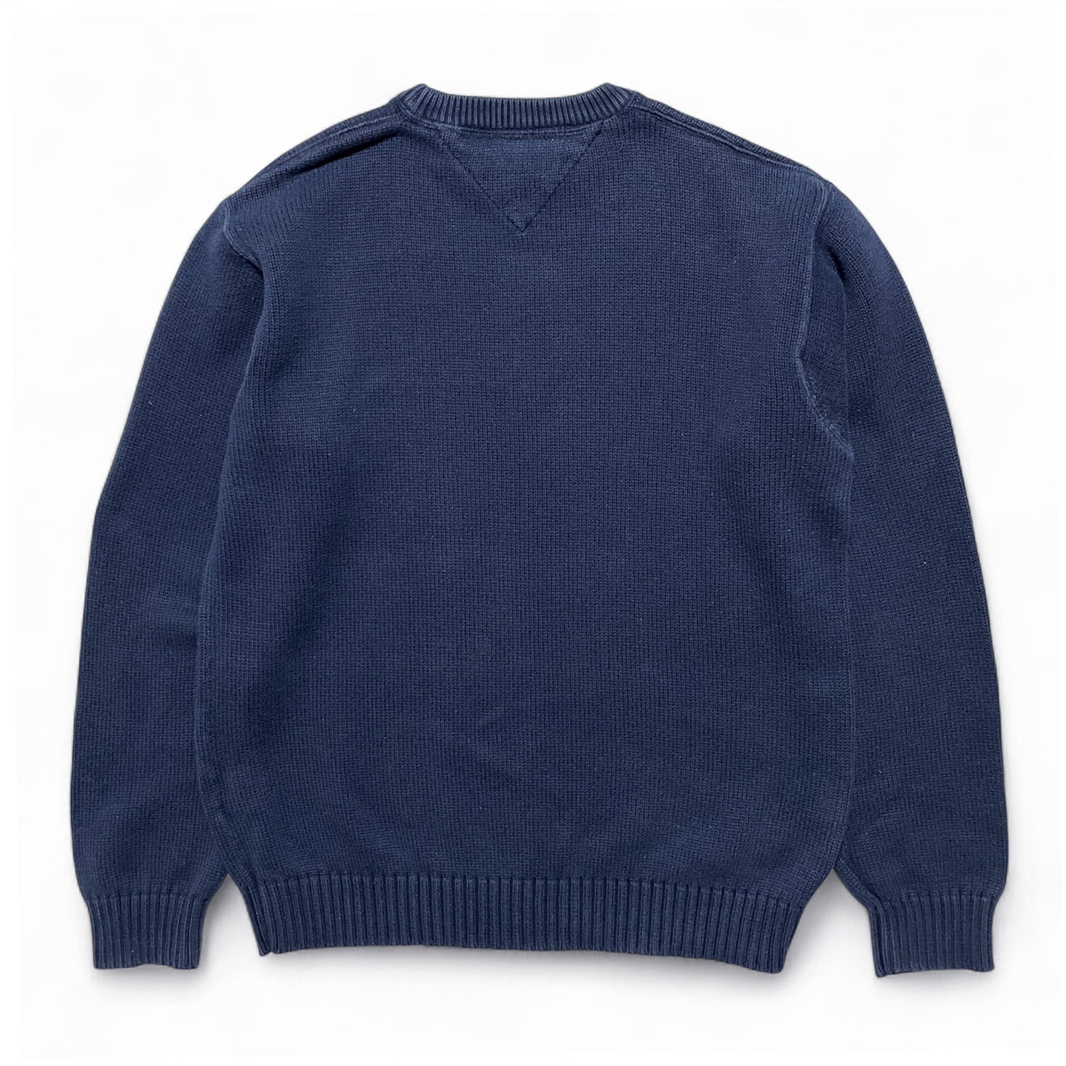 USA 古着 TOMMY HILFIGER トミーヒルフィガー コットン クルーネック セーター ネイビー メンズL 紺色 BJ1000