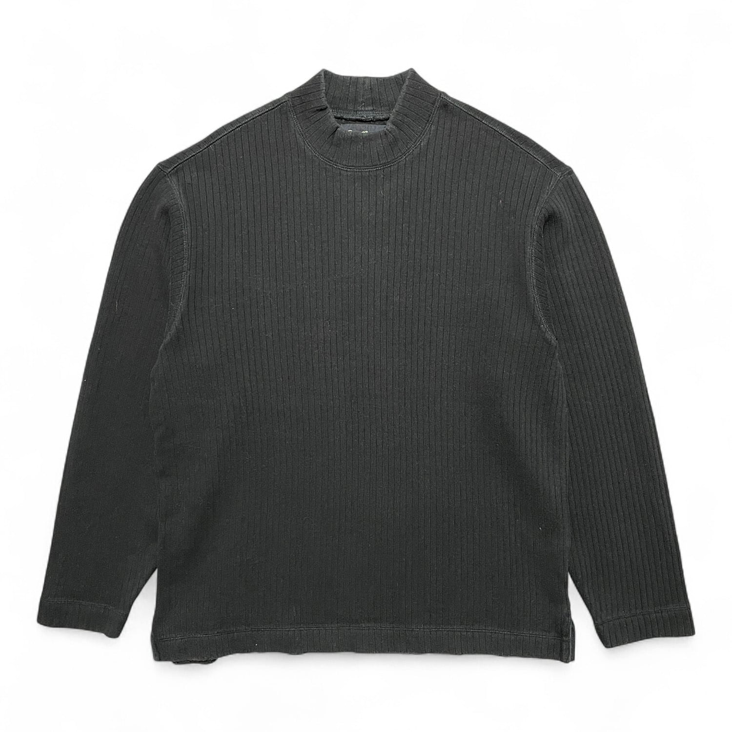 USA 古着 Eddie Bauer エディーバウアー アウトドア コットン モックネック セーター ブラック メンズM 黒色 カットソー BJ1005