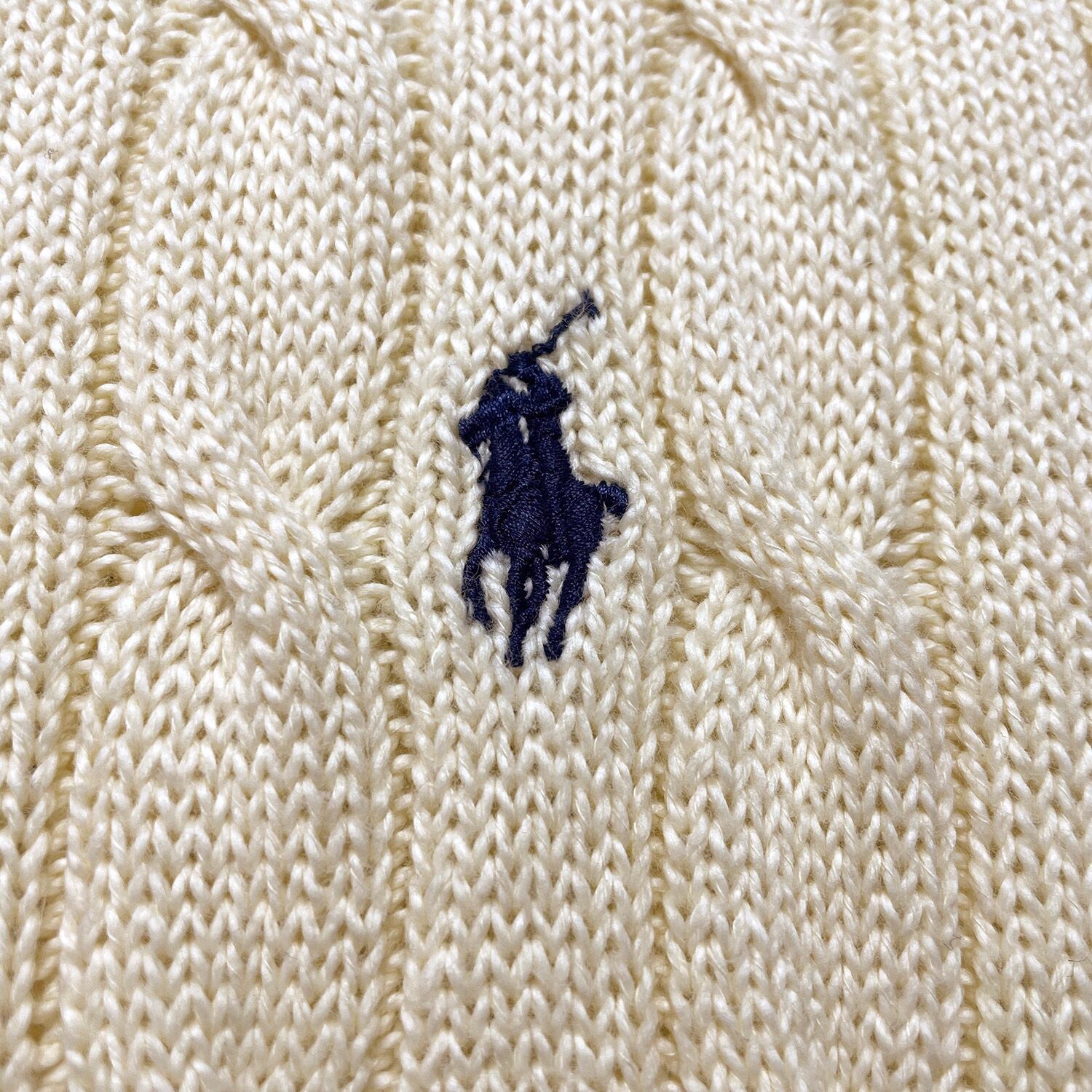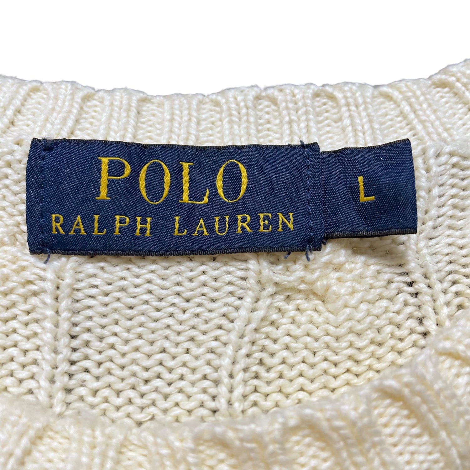 USA 古着 POLO RALPH LAUREN ポロ ラルフローレン コットンニット クルーネック ケーブル セーター メンズL アイボリー系 BJ1016