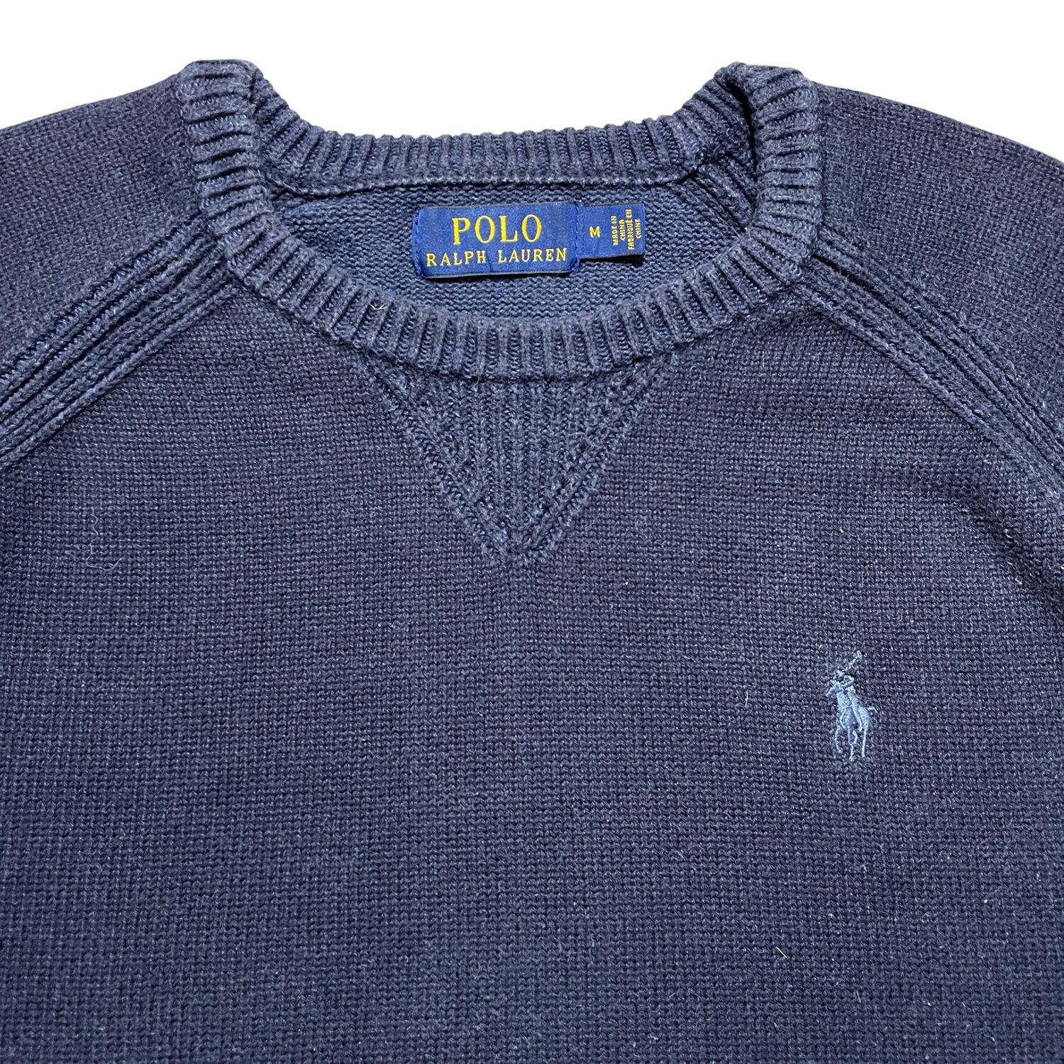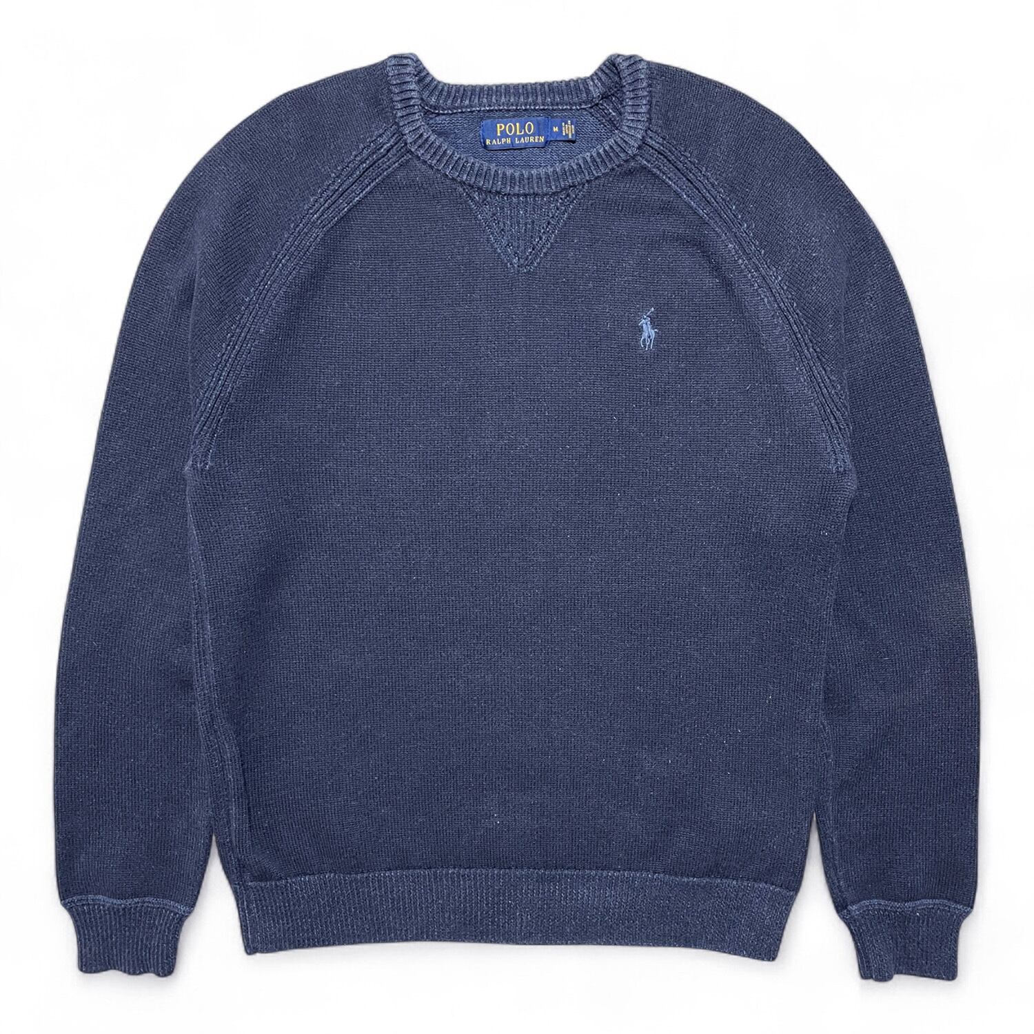 USA 古着 POLO RALPH LAUREN ポロ ラルフローレン コットンニット クルーネック スウェット ネイビー トレーナー メンズM 紺色 BD2960