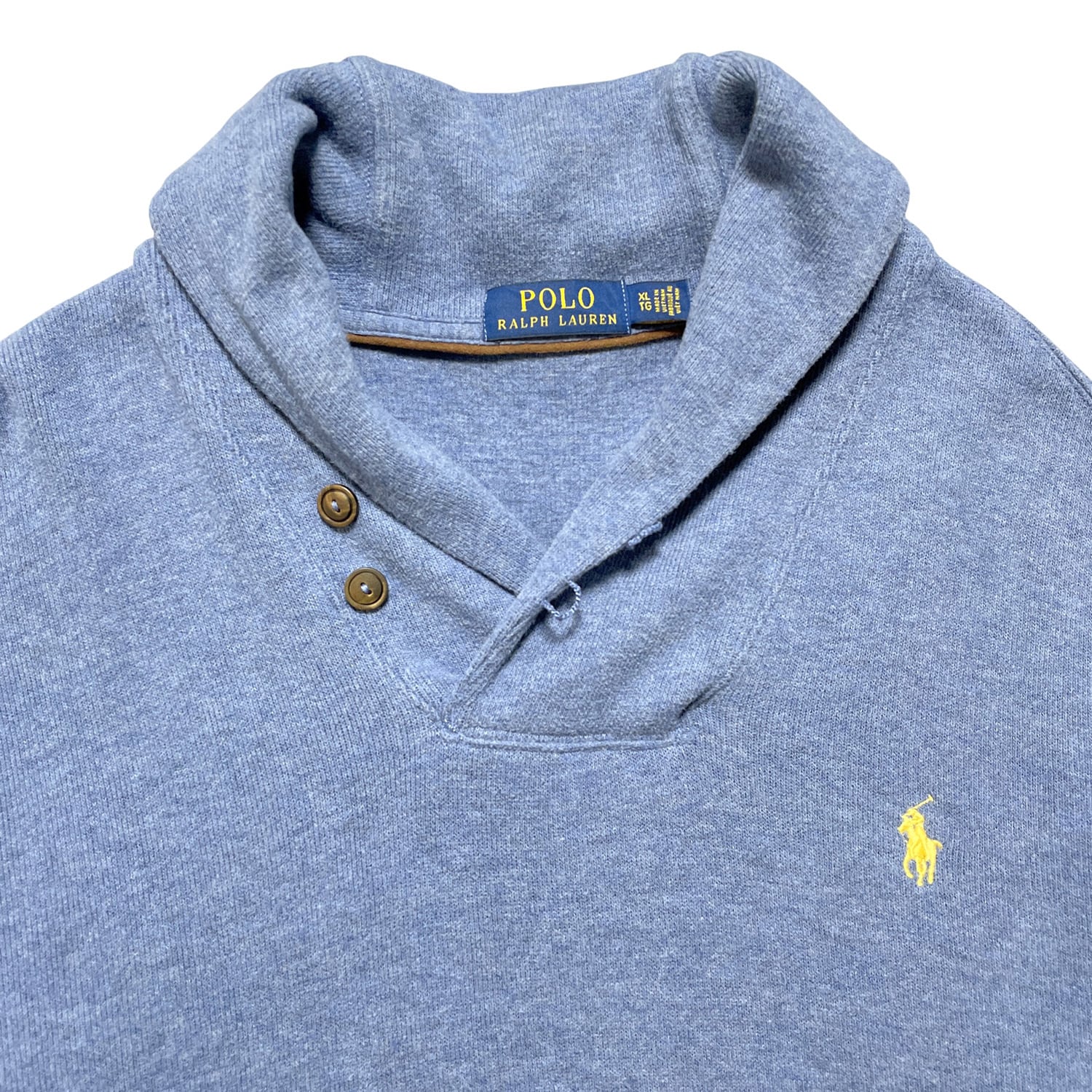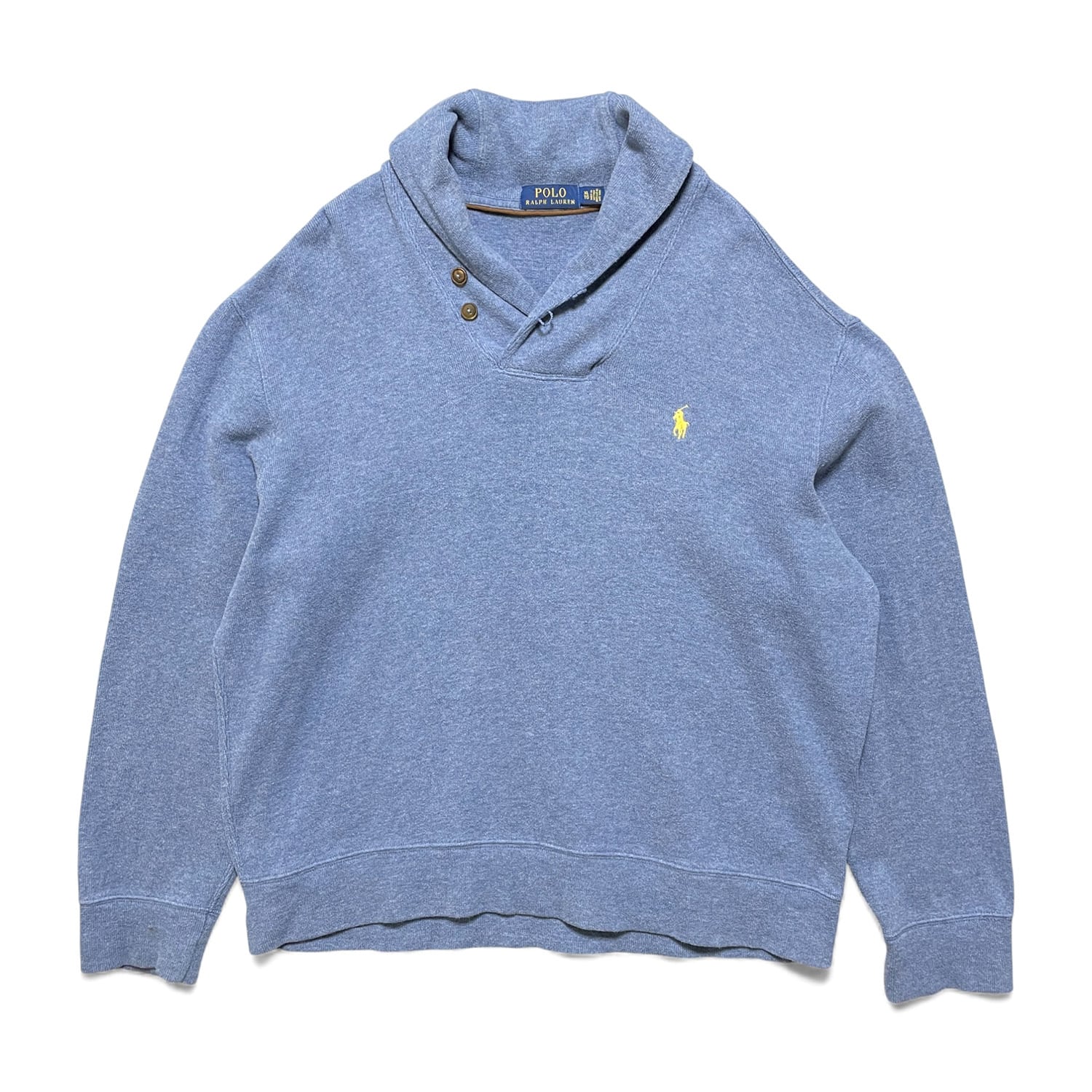 USA 古着 POLO RALPH LAUREN ポロ ラルフローレン コットン ショールカラー スウェット ブルー系 メンズXL トレーナー BD2962