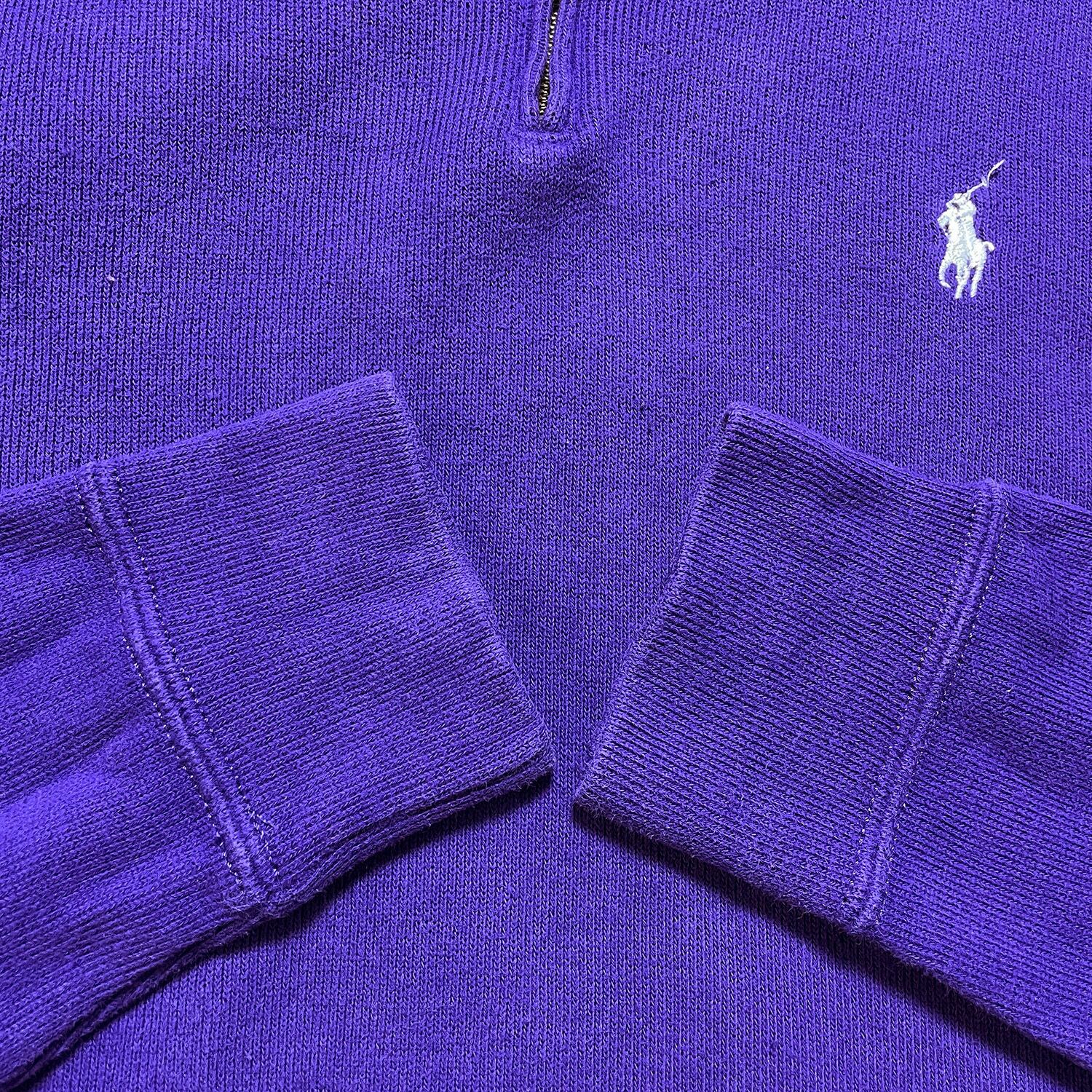 USA 古着 Polo by Ralph Lauren ポロ バイ ラルフローレン ハイポイント大学 コットン ハーフジップ スウェット パープル メンズS BD2966