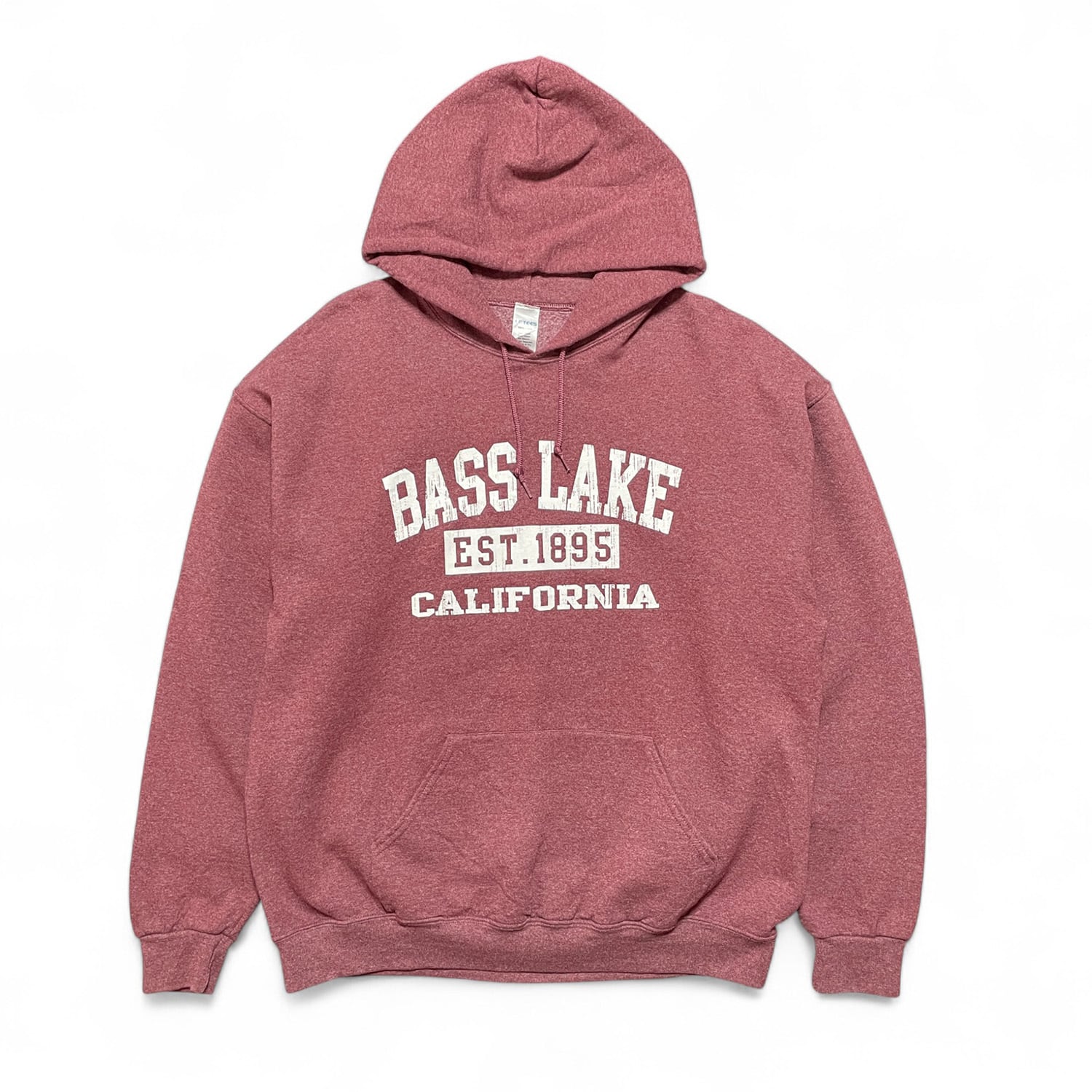 USA 古着 ヴィンテージ カリフォルニア州 バスレイク ロゴ フーディー スウェットパーカー トレーナー メンズL マルーン系 BE0922