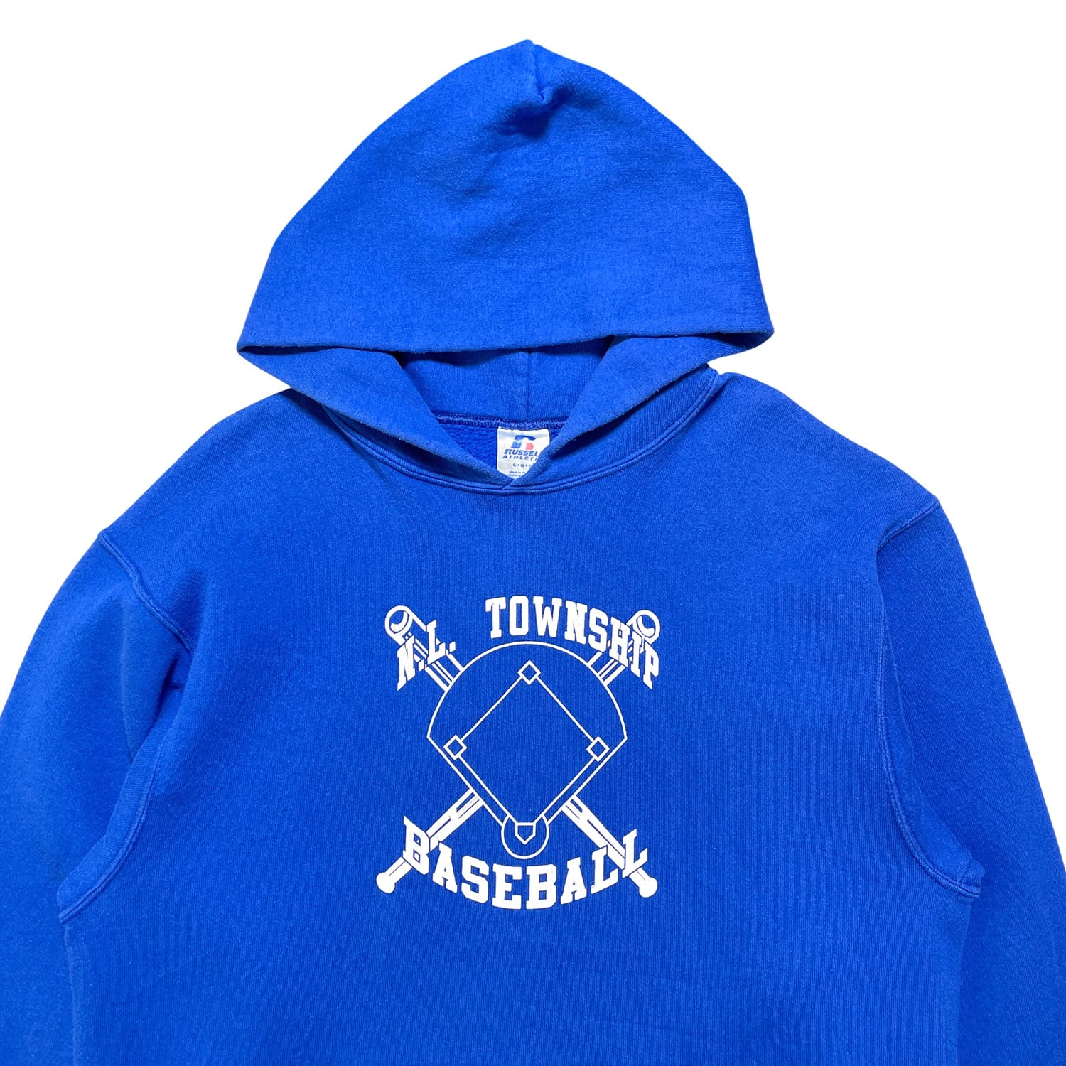 USA 古着 RUSSELL ラッセル アスレチック ベースボール ロゴ フーディー スウェットパーカー メンズL ブルー トレーナー BE0919