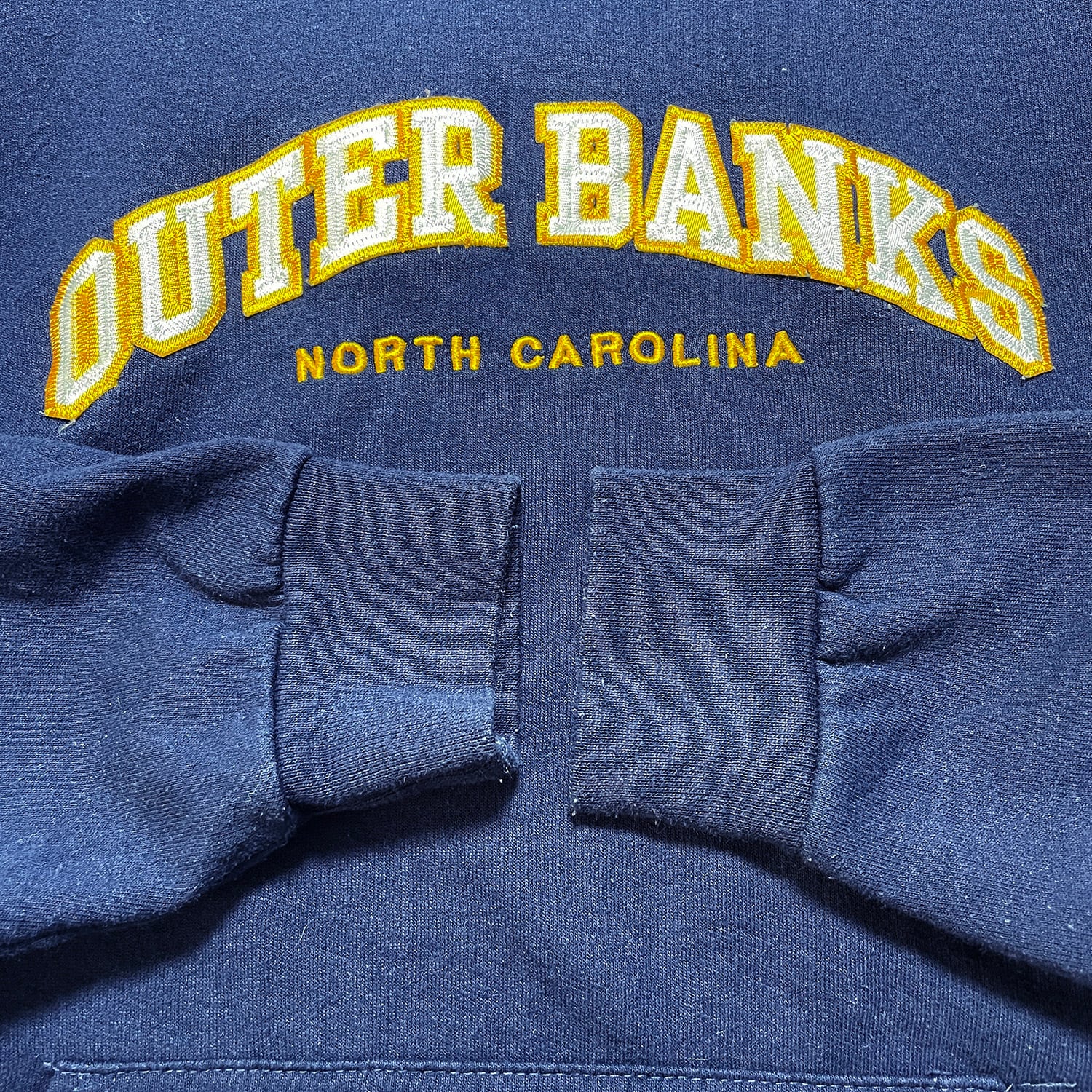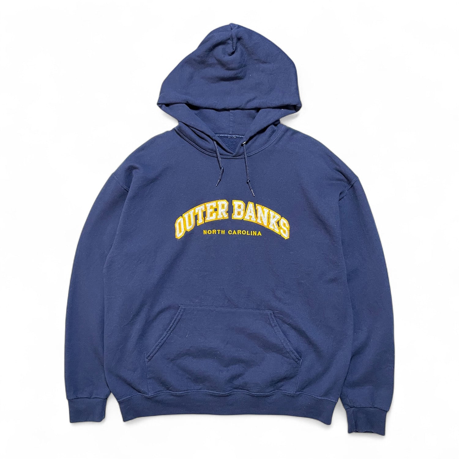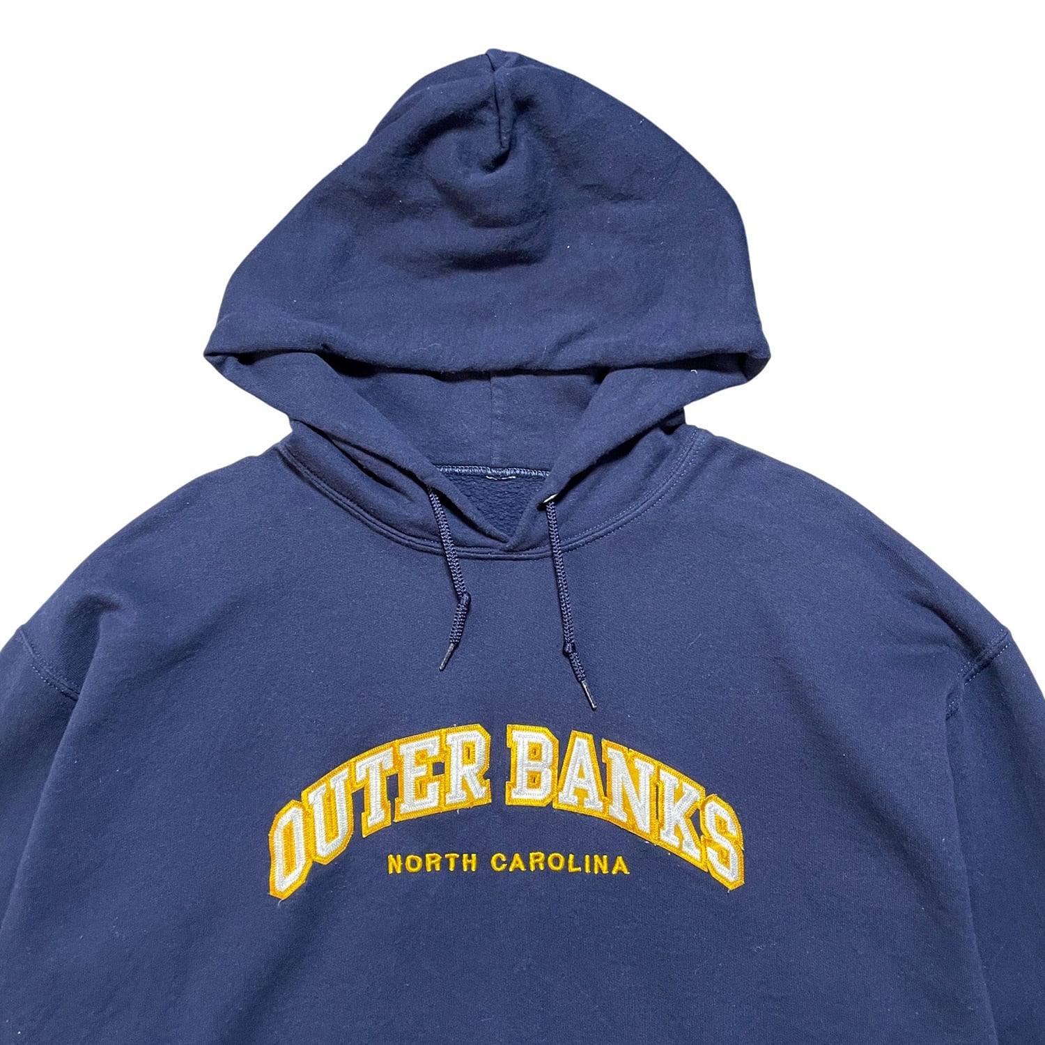 USA 古着 ヴィンテージ ノースカロライナ州 アウターバンクス ロゴ フーディー スウェットパーカー ネイビー メンズL相当 BE0918