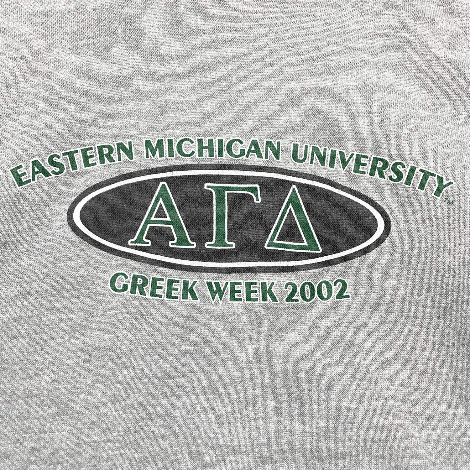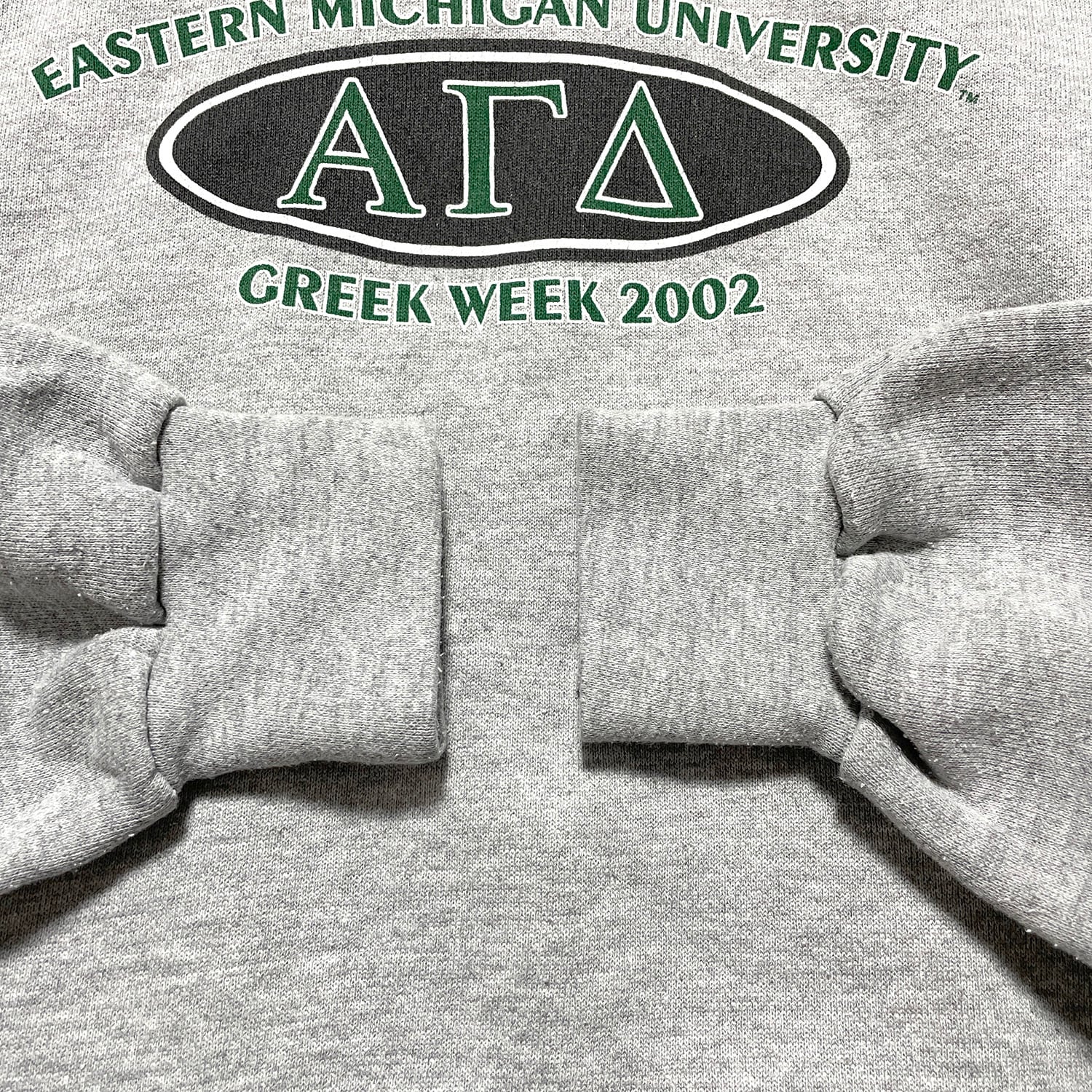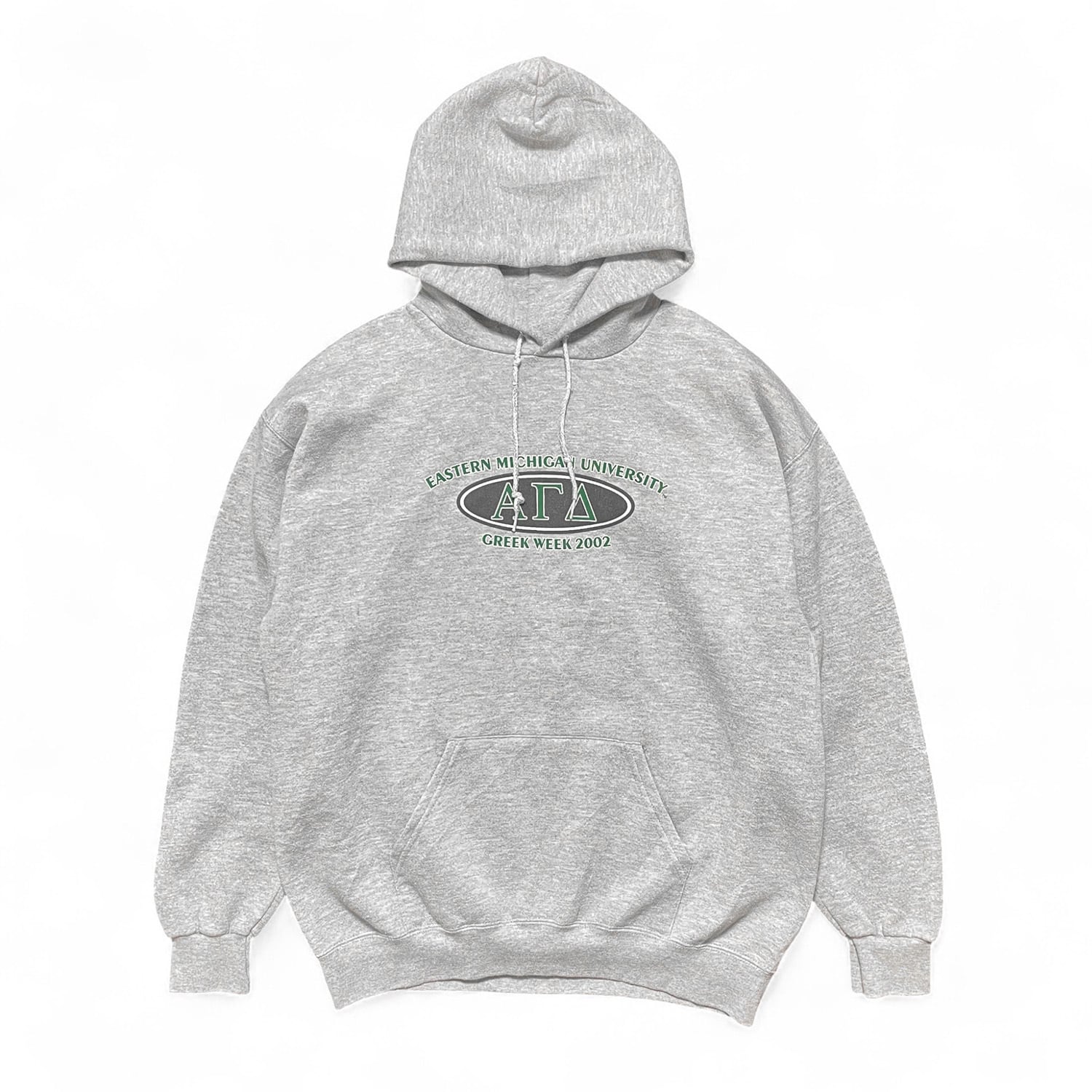 USA 古着 Lee ヴィンテージ イースタンミシガン大学 ロゴ フーディー スウェットパーカー メンズL グレー BE0912